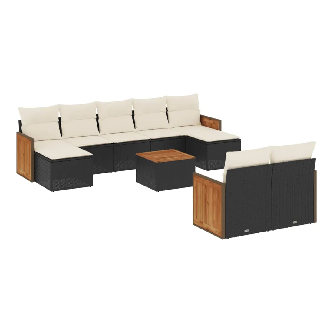 Cet ensemble de canapés de jardin est le complément parfait de votre arrière-cour, terrasse ou patio, offrant un espace confortable et accueillant pour discuter avec la famille et les amis ou simplement se détendre et profiter de l'extérieur. Matériau durable : la résine tressée, également connue sous le nom de poly rotin, est un matériau synthétique solide et nécessitant peu d'entretien qui ressemble au rotin naturel. Il est léger, facile à nettoyer et couramment utilisé pour les meubles d'extérieur en raison de sa durabilité et de ses propriétés de résistance aux intempéries.Fonction de rangement avec sac résistant à l'eau : le mobilier de jardin dispose d'un espace de rangement sous l'assise, complété par un sac résistant à l'eau pour ranger coussins, jouets et autres objets. Le sac intérieur peut être solidement fixé au mobilier d'extérieur grâce à des attaches auto-agrippantes pour plus de stabilité.Dessus stable et facile à nettoyer : cette table de jardin a un dessus en bois d'acacia robuste, durable et facile à nettoyer avec un chiffon humide.Housse amovible et lavable : ces coussins de siège sont dotés de housses amovibles pour un lavage et un entretien faciles.Conception modulaire : cet ensemble de meubles d'extérieur a une conception modulaire, ce qui le rend complètement flexible et facile à déplacer, afin que vous puissiez créer un agencement de meubles d'extérieur personnalisé. Bon à savoir :Pour que vos meubles d'extérieur restent beaux, nous vous recommandons de les protéger avec une housse imperméable.