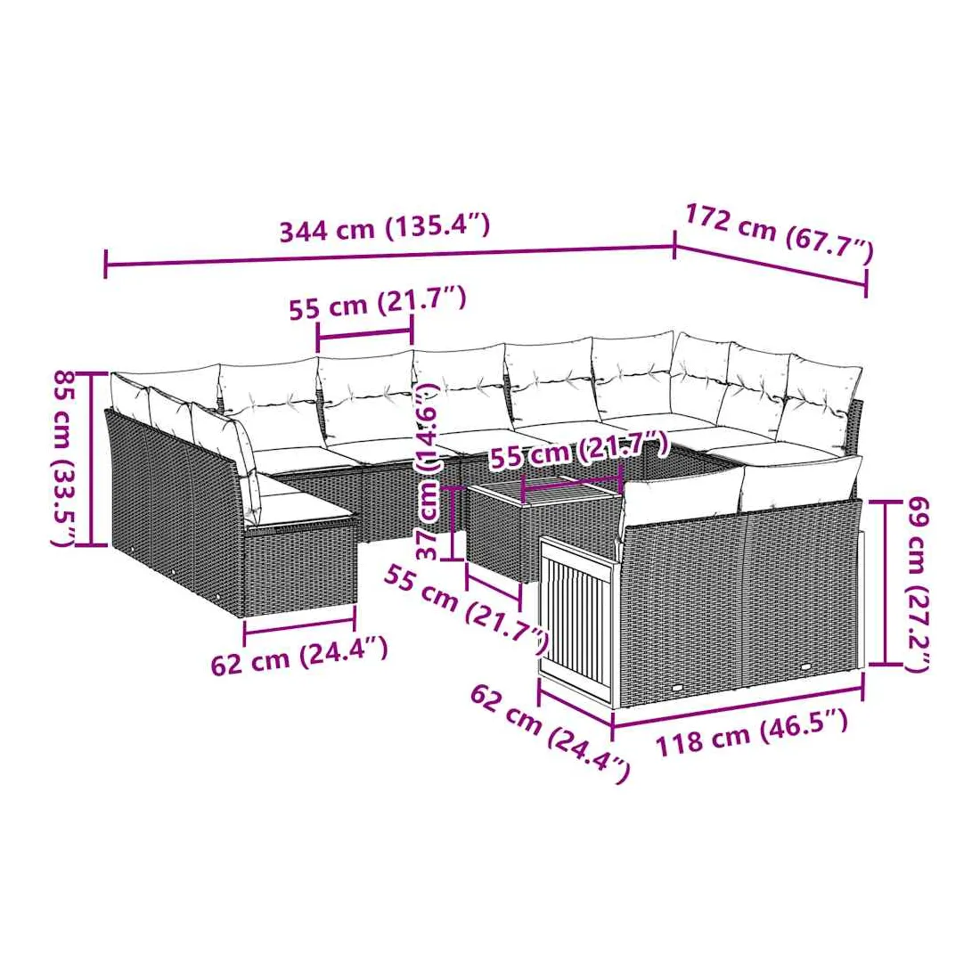 - Dimensions du coussin de dossier : 55 x 45 x 13 cm (L x l x é)