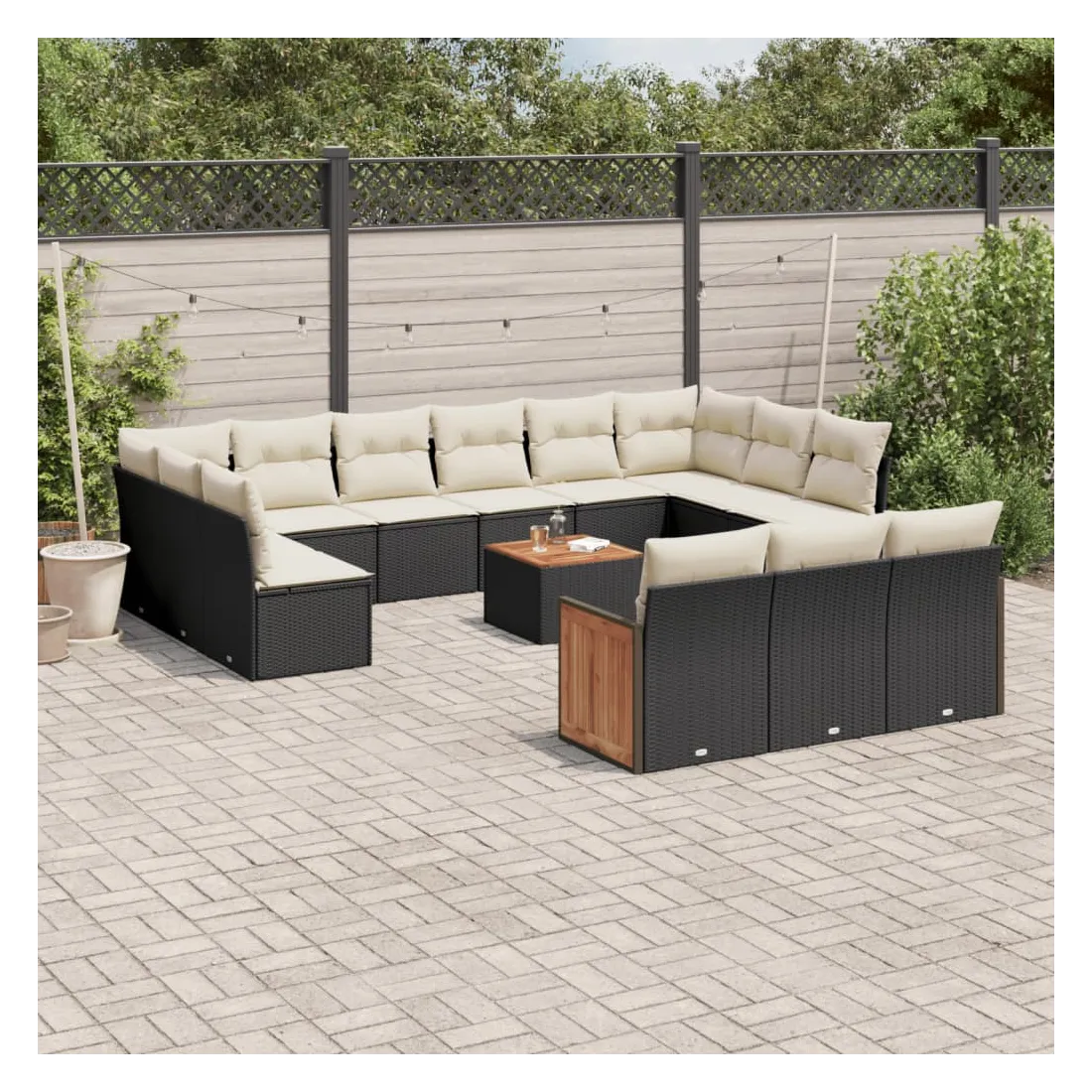 Cet ensemble de canapés de jardin est le complément parfait de votre arrière-cour, terrasse ou patio, offrant un espace confortable et accueillant pour discuter avec la famille et les amis ou simplement se détendre et profiter de l'extérieur. Matériau durable : la résine tressée, également connue sous le nom de poly rotin, est un matériau synthétique solide et nécessitant peu d'entretien qui ressemble au rotin naturel. Il est léger, facile à nettoyer et couramment utilisé pour les meubles d'extérieur en raison de sa durabilité et de ses propriétés de résistance aux intempéries.Fonction de rangement avec sac résistant à l'eau : le mobilier de jardin dispose d'un espace de rangement sous l'assise, complété par un sac résistant à l'eau pour ranger coussins, jouets et autres objets. Le sac intérieur peut être solidement fixé au mobilier d'extérieur grâce à des attaches auto-agrippantes pour plus de stabilité.Dessus stable et facile à nettoyer : cette table de jardin a un dessus en bois d'acacia robuste, durable et facile à nettoyer avec un chiffon humide.Housse amovible et lavable : ces coussins de siège sont dotés de housses amovibles pour un lavage et un entretien faciles.Conception modulaire : cet ensemble de meubles d'extérieur a une conception modulaire, ce qui le rend complètement flexible et facile à déplacer, afin que vous puissiez créer un agencement de meubles d'extérieur personnalisé. Bon à savoir :Pour que vos meubles d'extérieur restent beaux, nous vous recommandons de les protéger avec une housse imperméable.