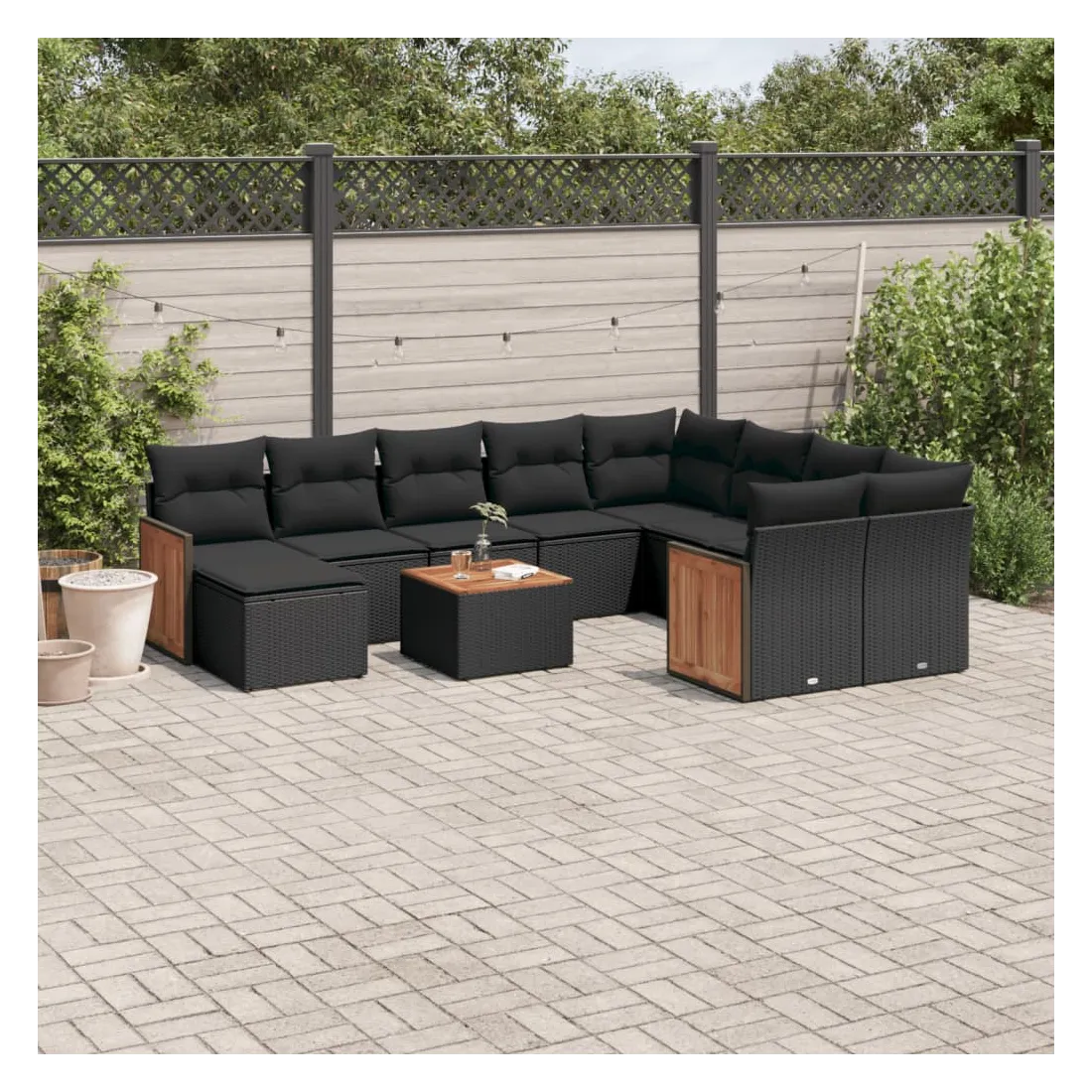 Cet ensemble de canapés de jardin est le complément parfait de votre arrière-cour, terrasse ou patio, offrant un espace confortable et accueillant pour discuter avec la famille et les amis ou simplement se détendre et profiter de l'extérieur. Matériau durable : la résine tressée, également connue sous le nom de poly rotin, est un matériau synthétique solide et nécessitant peu d'entretien qui ressemble au rotin naturel. Il est léger, facile à nettoyer et couramment utilisé pour les meubles d'extérieur en raison de sa durabilité et de ses propriétés de résistance aux intempéries.Fonction de rangement avec sac résistant à l'eau : le mobilier de jardin dispose d'un espace de rangement sous l'assise, complété par un sac résistant à l'eau pour ranger coussins, jouets et autres objets. Le sac intérieur peut être solidement fixé au mobilier d'extérieur grâce à des attaches auto-agrippantes pour plus de stabilité.Dessus stable et facile à nettoyer : cette table de jardin a un dessus en bois d'acacia robuste, durable et facile à nettoyer avec un chiffon humide.Housse amovible et lavable : ces coussins de siège sont dotés de housses amovibles pour un lavage et un entretien faciles.Conception modulaire : cet ensemble de meubles d'extérieur a une conception modulaire, ce qui le rend complètement flexible et facile à déplacer, afin que vous puissiez créer un agencement de meubles d'extérieur personnalisé. Bon à savoir :Pour que vos meubles d'extérieur restent beaux, nous vous recommandons de les protéger avec une housse imperméable.