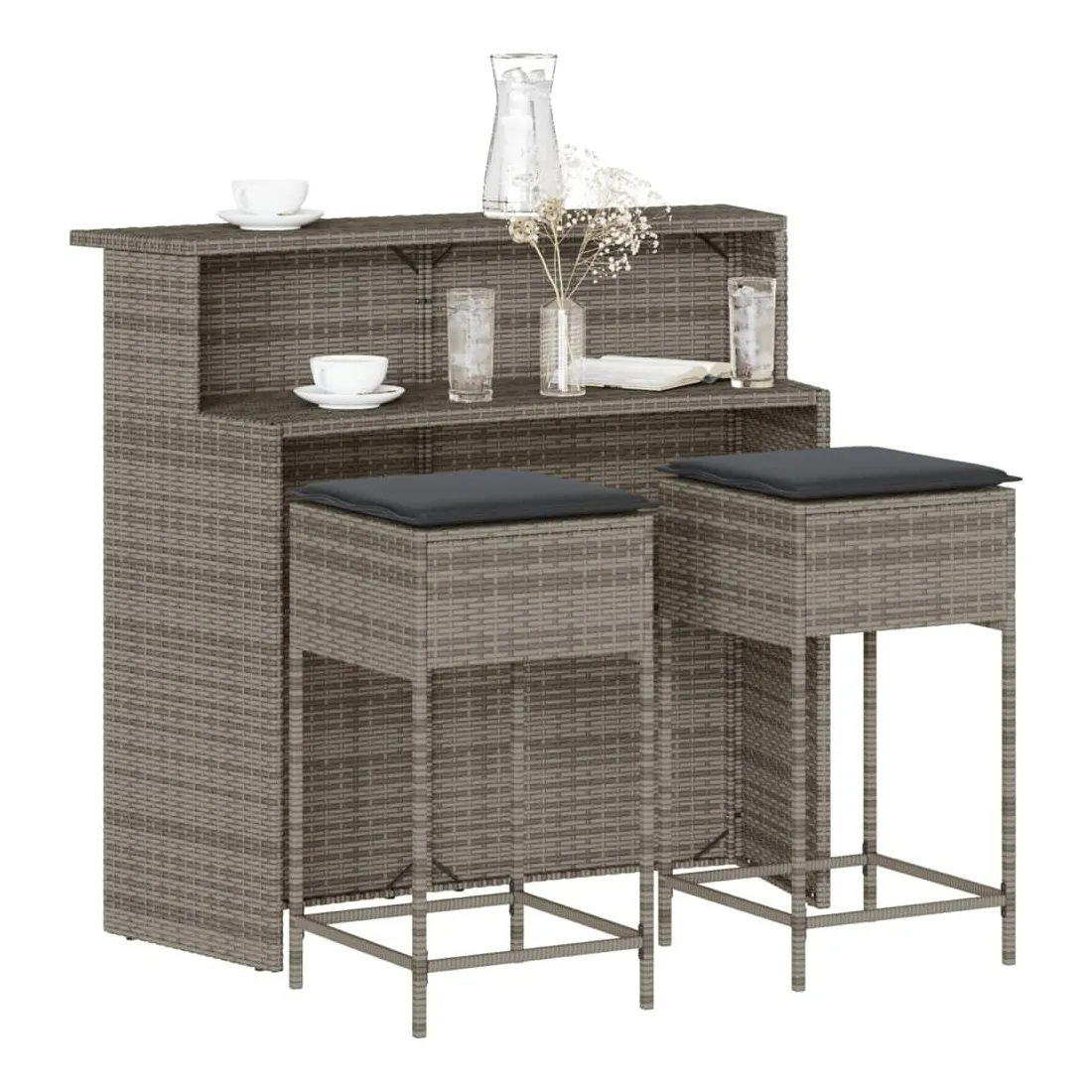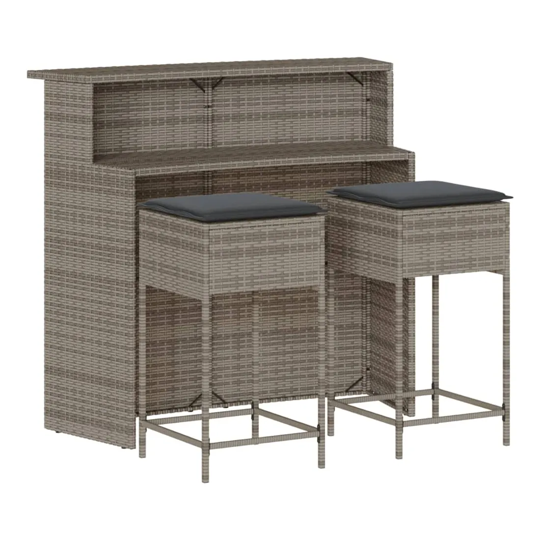 Ensemble de bar de jardin 3 pcs et coussins gris résine tressée