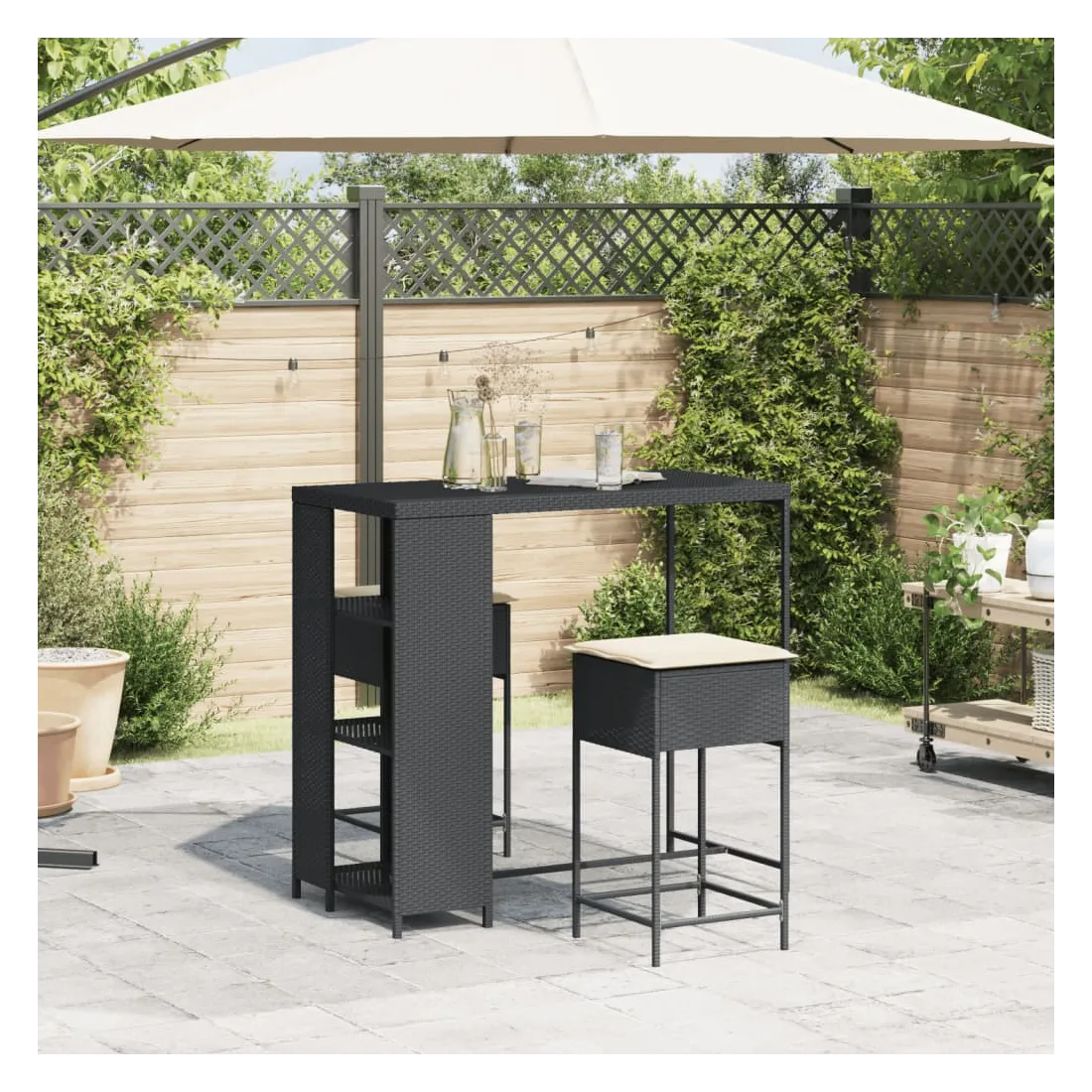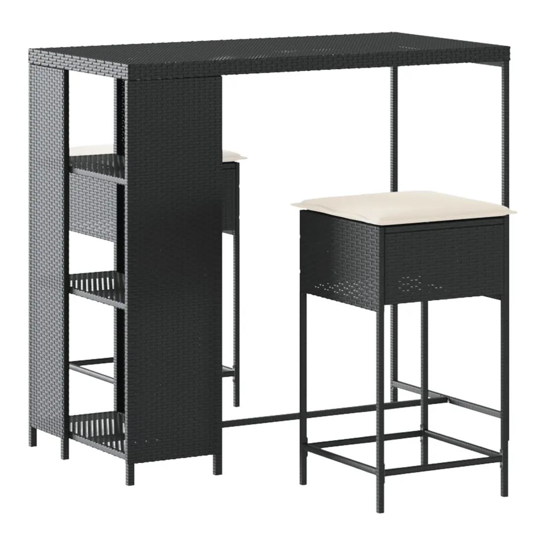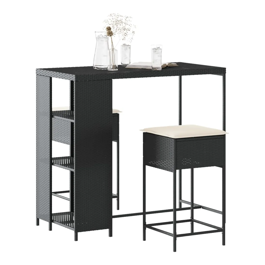Ensemble de bar de jardin 3 pcs avec coussins noir poly rotin