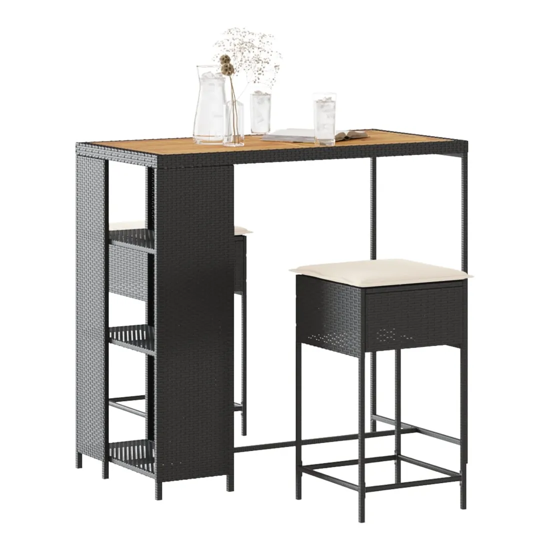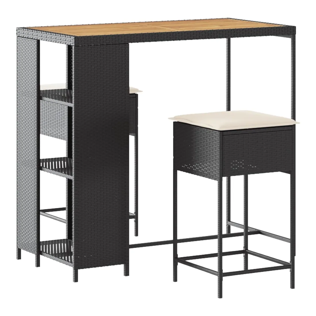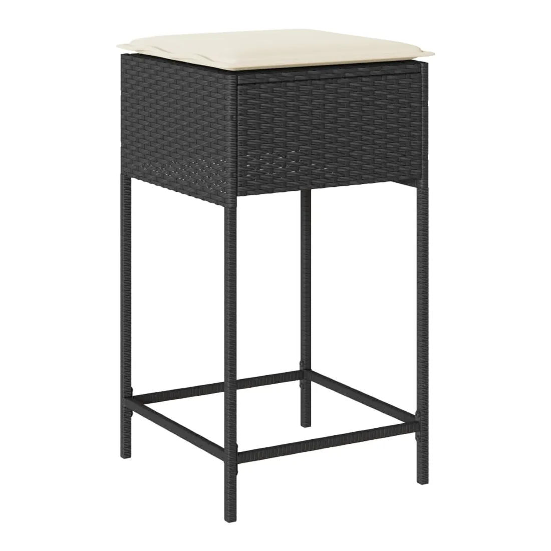 Ensemble de bar de jardin 3 pcs avec coussins noir poly rotin