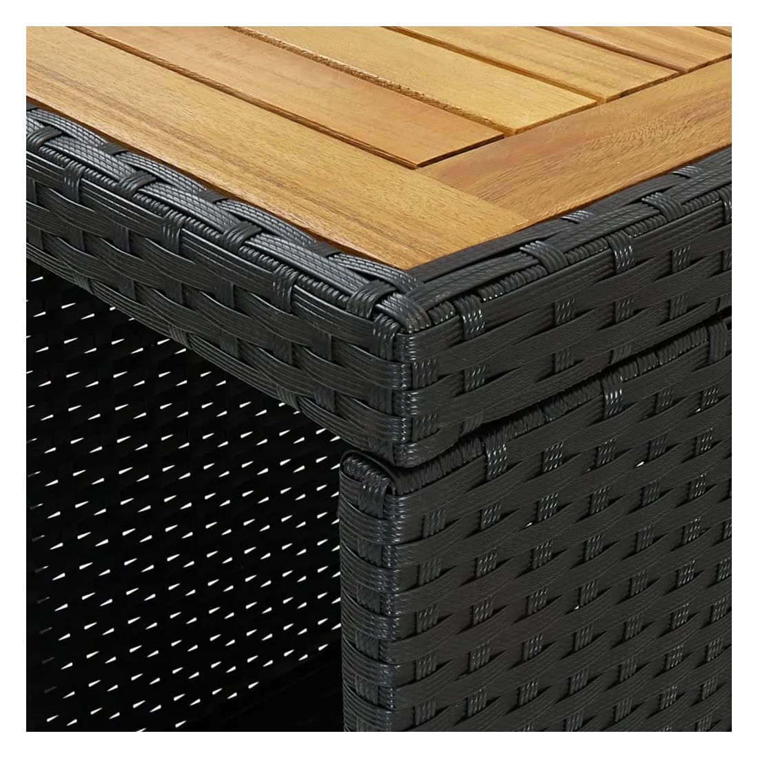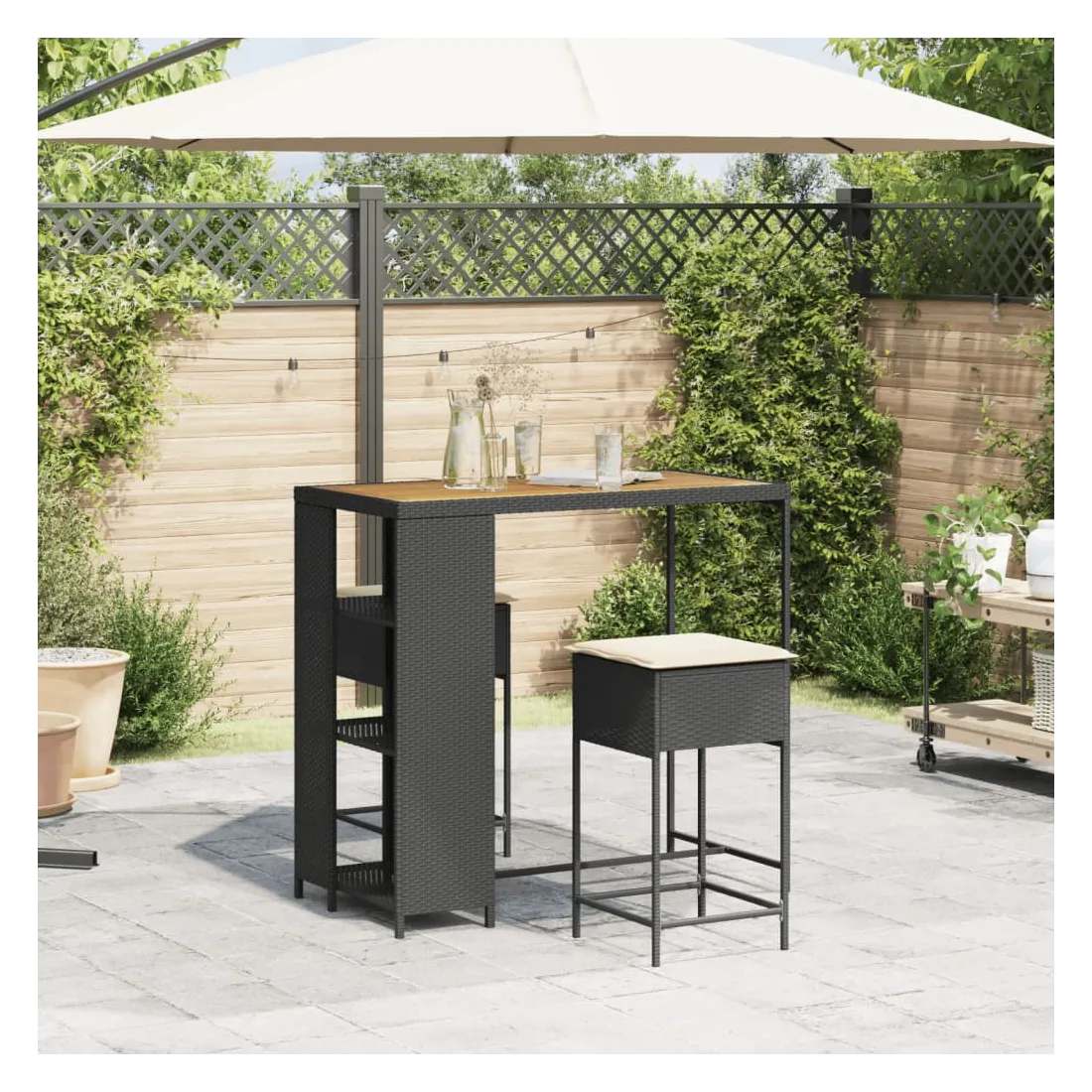 vidaXLCet ensemble de bar de jardin tendance, combinant à la fois style et fonctionnalité, est sûrement destiné à être la pièce maîtresse de votre jardin, terrasse et de tout autre espace de vie. Matériau durable : la résine tressée, également connue sous le nom de poly rotin, est un matériau synthétique solide et nécessitant peu d'entretien qui ressemble au rotin naturel. Elle est légère, facile à nettoyer et couramment utilisée pour les meubles d'extérieur en raison de sa durabilité et de ses propriétés de résistance aux intempéries.Expérience d'assise confortable : ce mobilier d'extérieur, doté de coussins épais, offre une expérience d'assise confortable.Housse amovible et lavable : ces coussins de siège sont dotés de housses amovibles pour un lavage et un entretien faciles.Dessus stable et facile à nettoyer : cette table de jardin a un dessus en bois d'acacia robuste, durable et facile à nettoyer avec un chiffon humide.Cadre robuste et stable : le cadre en acier enduit de poudre assure la solidité et la stabilité du meuble de jardin pour une utilisation quotidienne à l'extérieur. Bon à savoir :Pour que vos meubles d'extérieur restent beaux, nous vous recommandons de les protéger avec une housse imperméable.