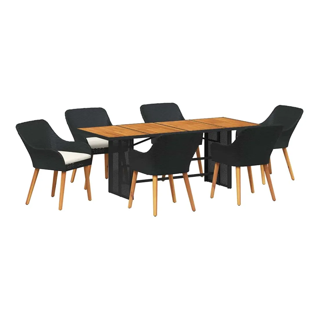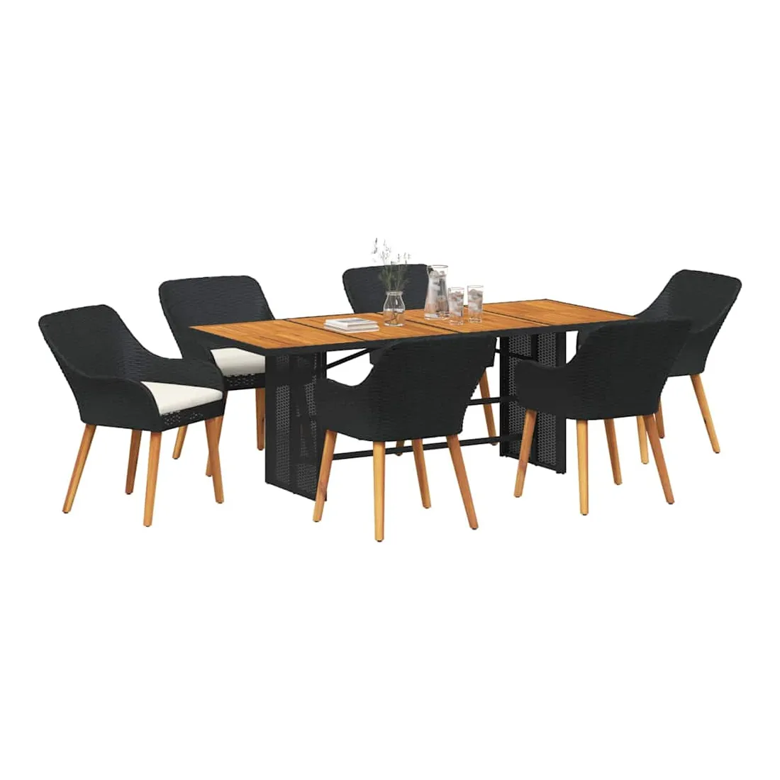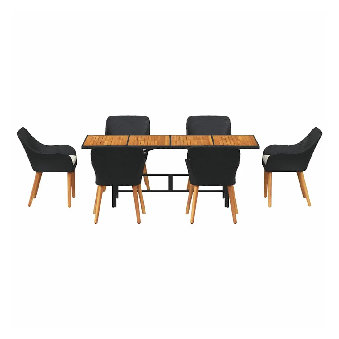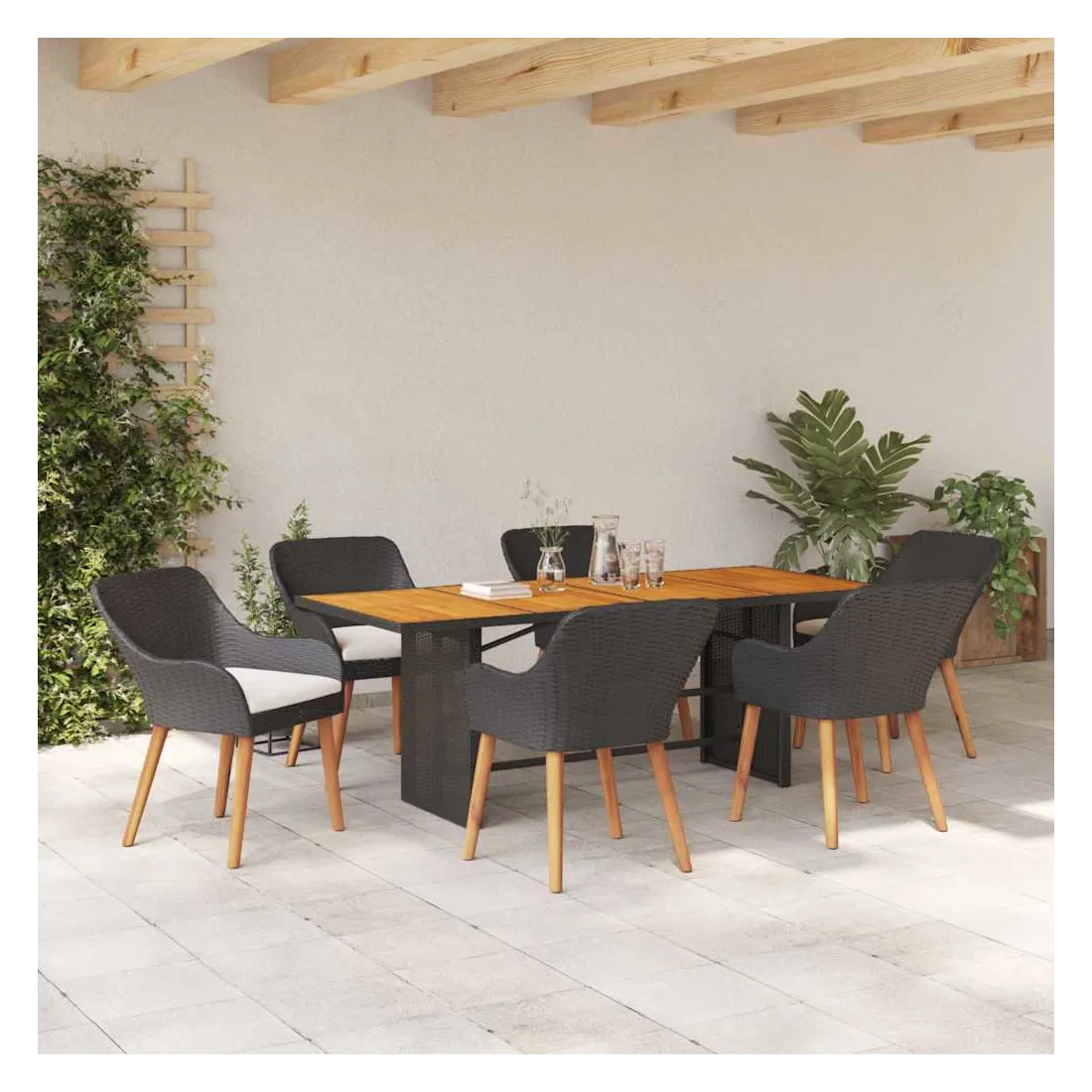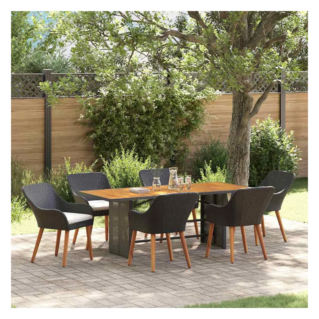Cet ensemble de salle à manger de jardin stylé est parfait pour améliorer vos moments dehors tout en ajoutant une touche de confort. Super pour les jardins et terrasses, il combine un design moderne avec des aspects pratiques pour créer un coin repas sympa pour vos soirées en plein air. Avec ses lignes simples et son style minimaliste, cet ensemble s’adapte à plein de thèmes décoratifs tout en offrant confort et performance. Son design séduisant et sa nature accueillante en font un choix populaire pour les propriétaires qui cherchent une solution agréable mais classe pour manger à l'extérieur. Matériaux de qualité supérieure L'ensemble de salle à manger est entièrement construit en Poly Rattan, connu pour sa solidité et son allure esthétique. La résistance aux UV du matériau permet une durabilité, gardant sa couleur éclatante même au soleil. L'acier est recouvert de poudre pour plus de solidité, créant un cadre qui résiste facilement aux intempéries. Ensemble complet Chaque siège a un dossier confortable et des accoudoirs en Poly Rattan, offrant un confort ergonomique pour vos repas. Tous les éléments, des sièges au cadre de la table, créent une ambiance agréable pour discuter et se détendre. Fonctionnalité moderne Les lignes modernes et épurées de l'ensemble de salle à manger combinent simplicité et raffinement. Sa conception adaptable le rend parfait pour les espaces extérieurs contemporains tout en restant fonctionnel sans être compliqué. Il représente l'essence du design de meubles tendance. Usages polyvalents Parfait pour des déjeuners en plein air, des rencontres décontractées ou même un café tranquille en solo. Il passe facilement de dîners intimes à un coin reposant, s'adaptant à toutes les occasions et états d'esprit. La polyvalence de cet ensemble souligne sa grande valeur. Entretien simple Garder ce mobilier en bon état est facile : un coup de chiffon humide suffit. Un entretien régulier prolongera la durée de vie et maintiendra son look impeccable, offrant une grande praticité à l'utilisateur.