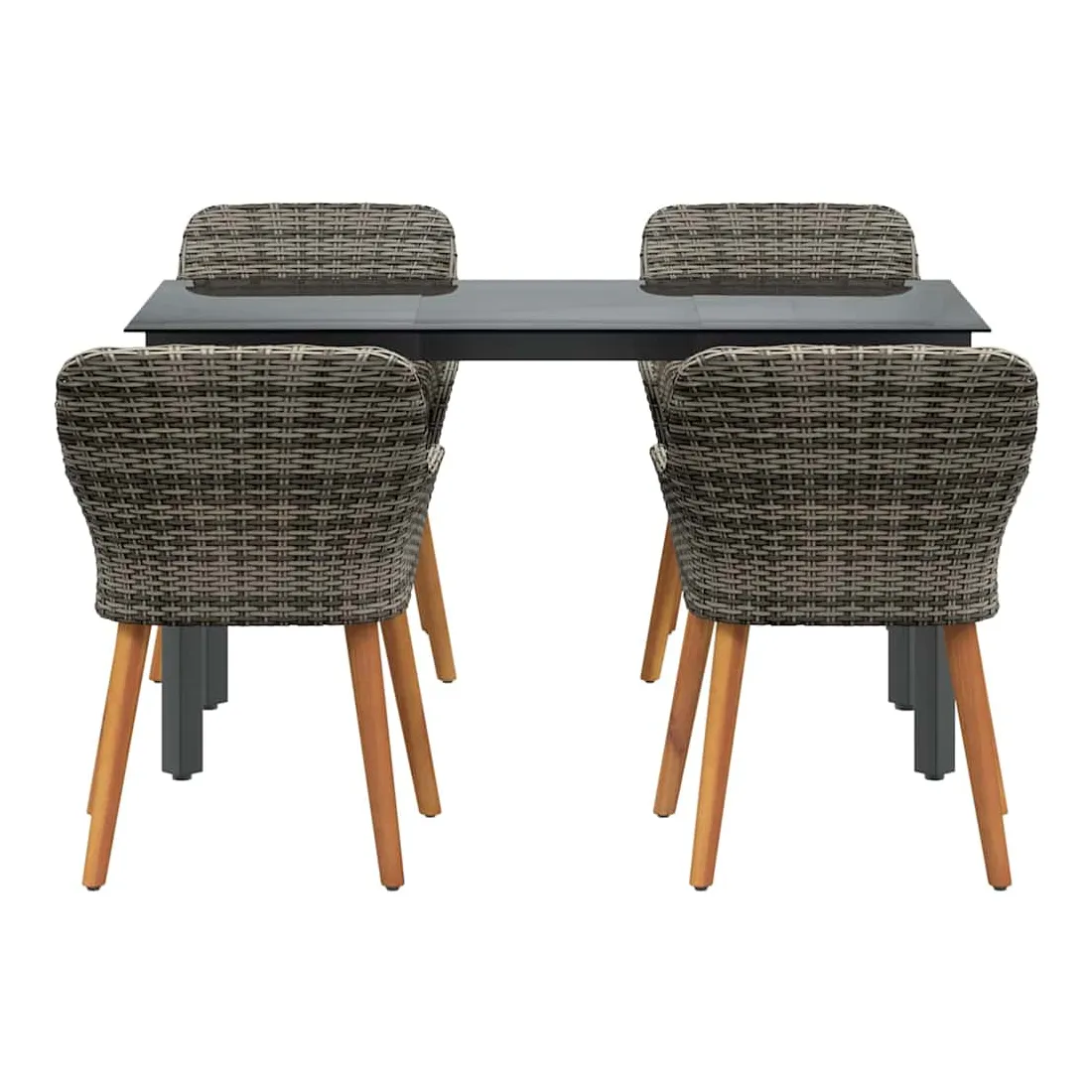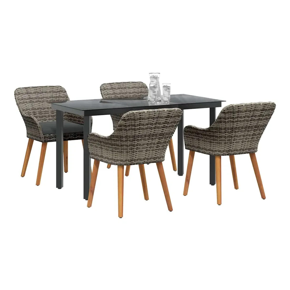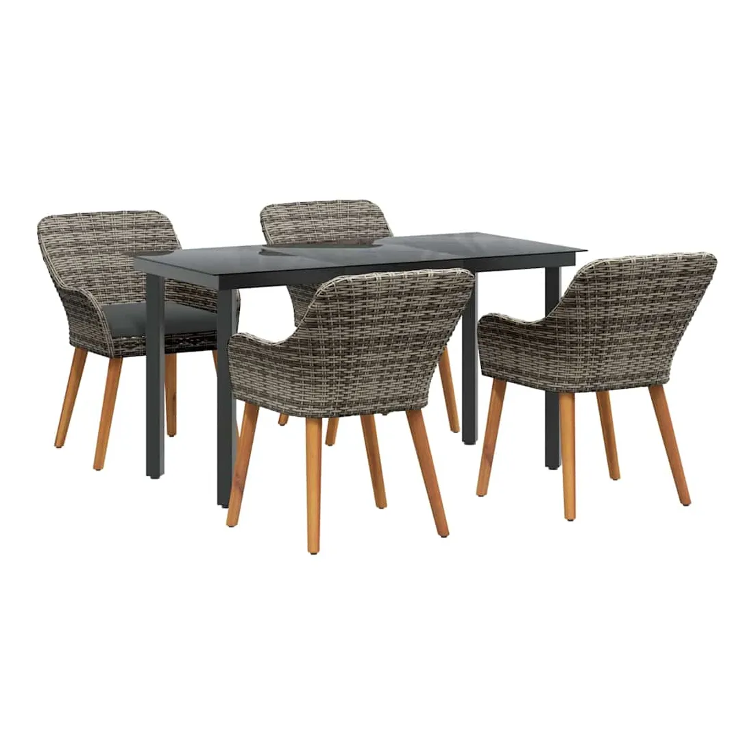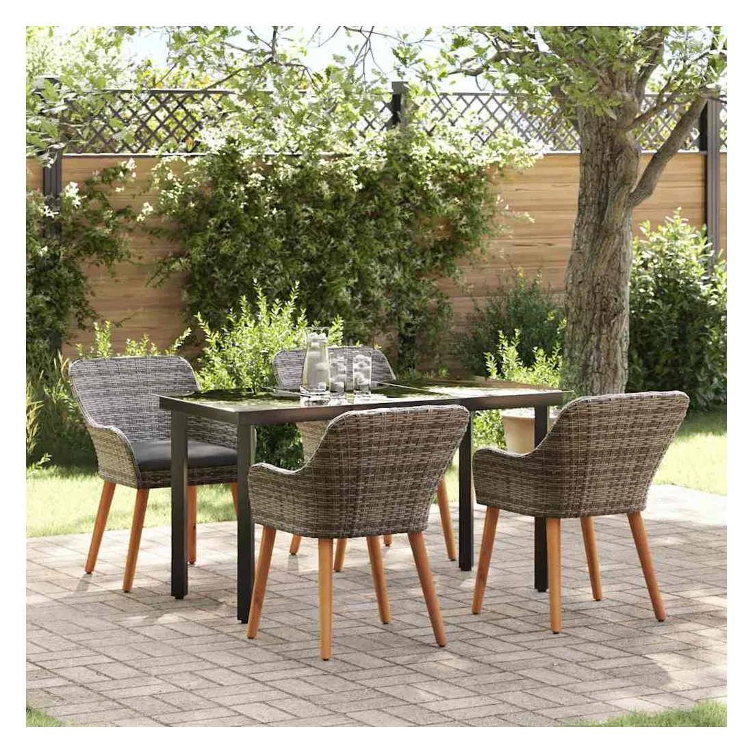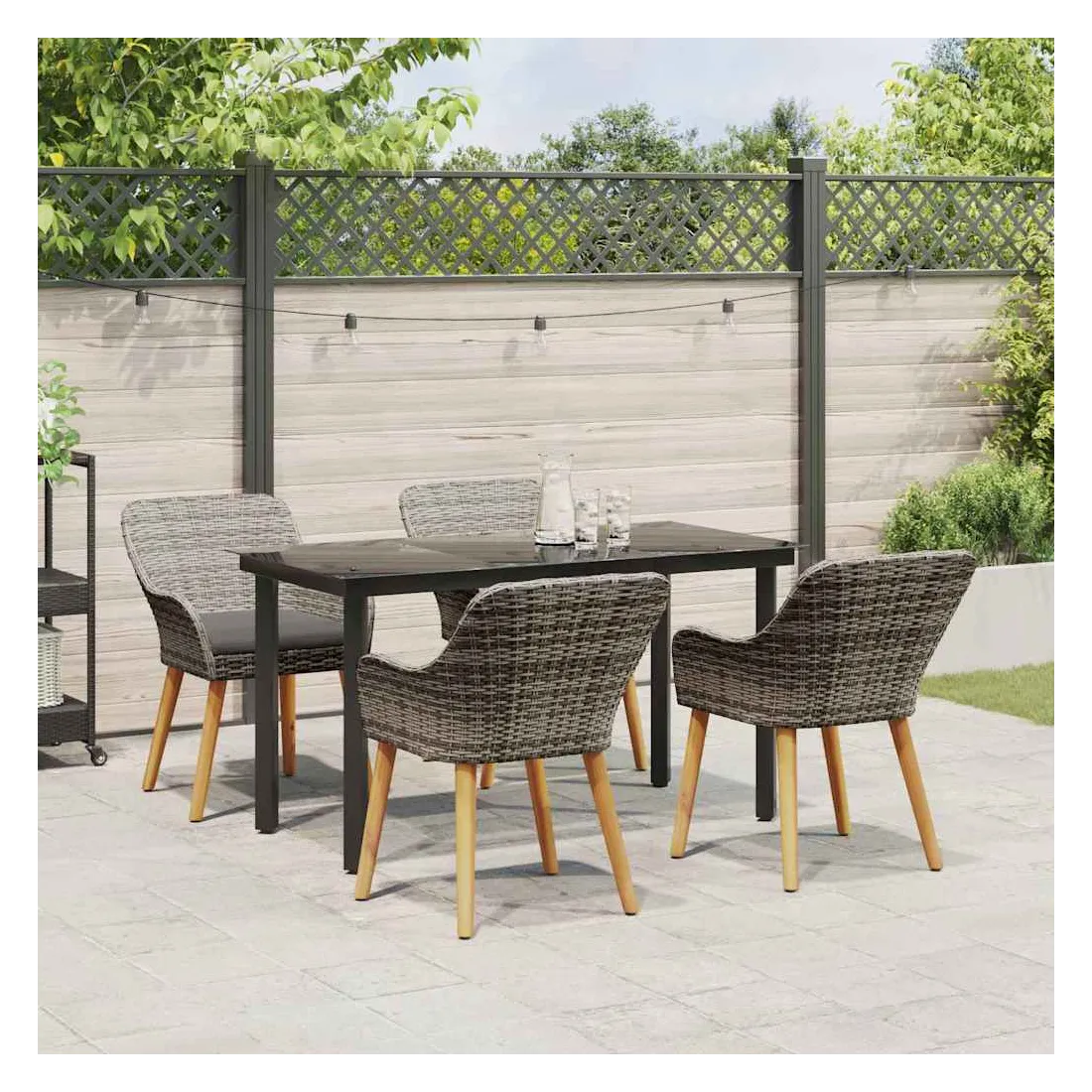 Ce superbe set de salle à manger de jardin change n'importe quel espace extérieur en un coin moderne. Fait pour ceux qui aiment les lignes claires et le style contemporain, il combine sophistication et utilité. Son cadre élégant attire le regard, que ce soit pour un brunch en toute intimité ou un dîner animé. La simplicité du set, combinée à un mix de matériaux trendy, lui permet de s'intégrer facilement dans des jardins modernes ou des terrasses stylées. Profitez de moments fun tout en vous relaxant dans le confort et la beauté. Poly Rattan Haute Densité : Ce set est fait en poly rattan connu pour sa durabilité et sa résistance aux UV. Ce matériau endure les intempéries tout en offrant un confort d'assise et en gardant un look élégant pour n'importe quel jardin ou terrasse. Arrangement Complet de Sièges : Notre set inclut des chaises stylées et une table de patio avec un plateau en verre trempé. Chaque chaise est équipée de coussins résistants aux intempéries pour plus de confort et de style, et la table en verre trempé apporte une touche d'élégance et se nettoie facilement. Construction Supérieure : Les pieds en acier recouvert de poudre garantissent la stabilité et supportent jusqu'à 110 kg par chaise. Une structure solide pour que votre mobilier de jardin reste en bon état dans le temps. Style Moderne : Avec un design minimaliste, le style moderne de ce set s'adapte facilement à des ambiances contemporaines. Chic, sophistiqué et bien conçu, il est parfait pour ceux qui cherchent à marier forme et fonction dans leur espace extérieur. Entretien Simple : Pas de tracas pour l'entretien de ce set ; un coup de chiffon humide par ci par là et c'est bon. L'assemblage nécessite deux personnes et un tournevis, pour une installation simple.