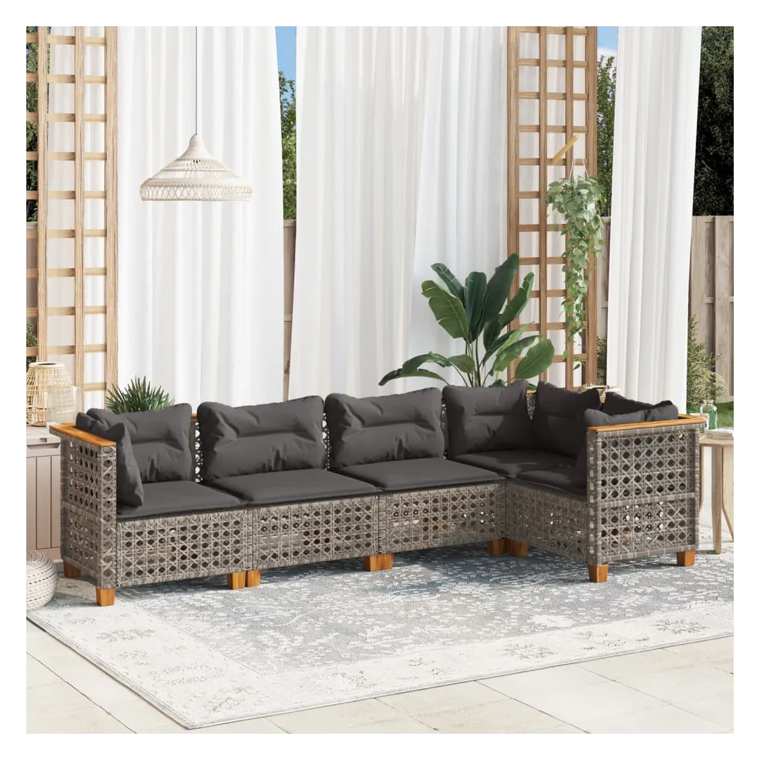 Cet ensemble de canapés de jardin est le complément parfait de votre arrière-cour, terrasse ou patio, offrant un espace confortable et accueillant pour discuter avec la famille et les amis ou simplement se détendre et profiter de l'extérieur. Matériau durable : la résine tressée, également connue sous le nom de poly rotin, est un matériau synthétique solide et nécessitant peu d'entretien qui ressemble au rotin naturel. Il est léger, facile à nettoyer et couramment utilisé pour les meubles d'extérieur en raison de sa durabilité et de ses propriétés de résistance aux intempéries.Expérience d'assise confortable : ce mobilier d'extérieur, doté de coussins épais, offre une expérience d'assise confortable.Housse amovible et lavable : ces coussins de siège sont dotés de housses amovibles pour un lavage et un entretien faciles.Conception modulaire : cet ensemble de meubles d'extérieur a une conception modulaire, ce qui le rend complètement flexible et facile à déplacer, afin que vous puissiez créer un agencement de meubles d'extérieur personnalisé. Bon à savoir :Pour que vos meubles d'extérieur restent beaux, nous vous recommandons de les protéger avec une housse imperméable.