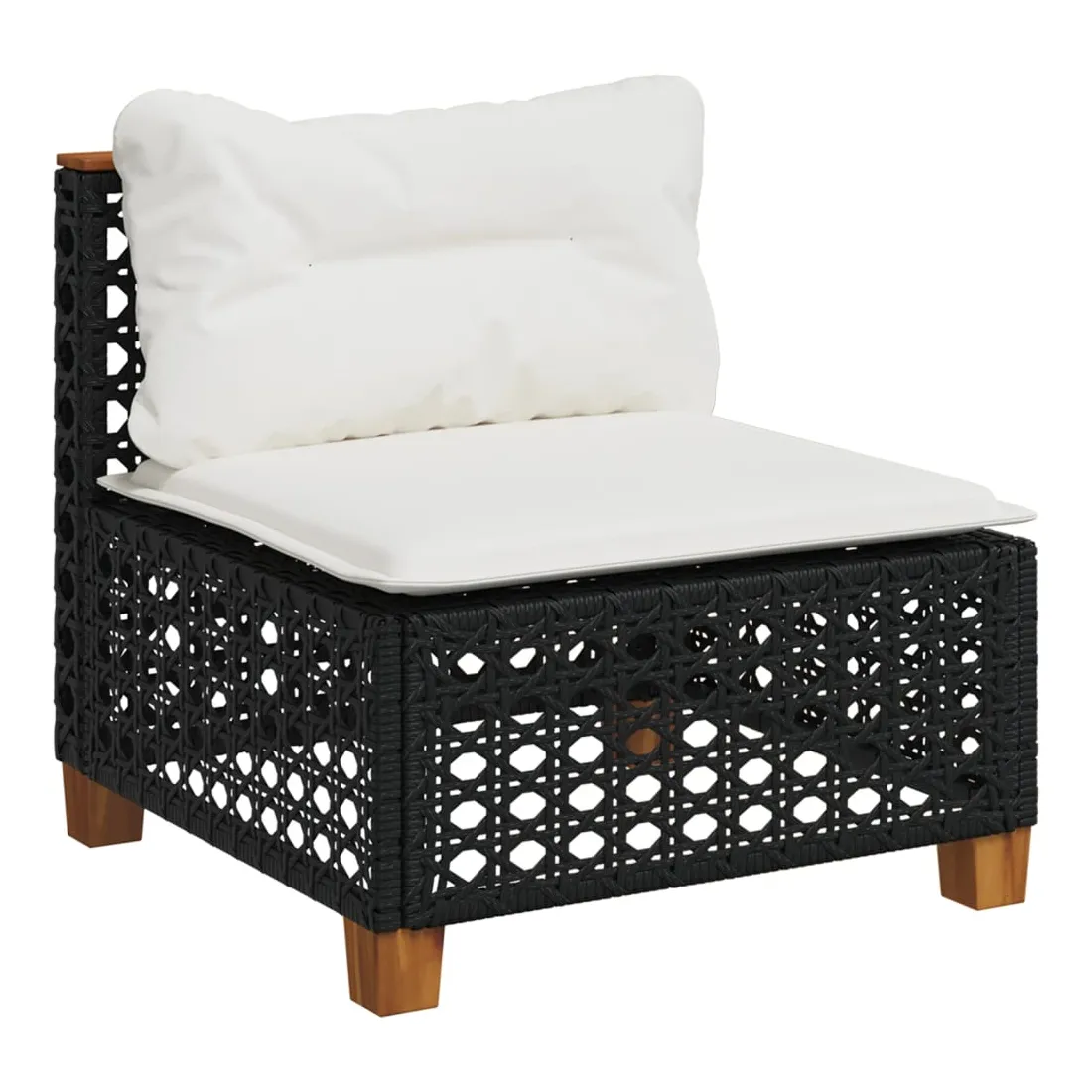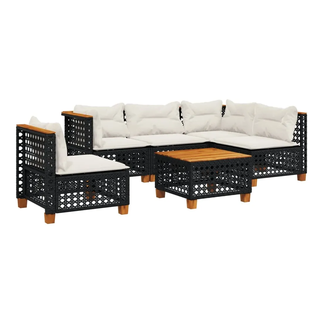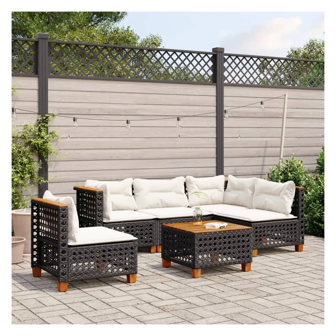 Salon de jardin 6 pcs avec coussins noir résine tressée