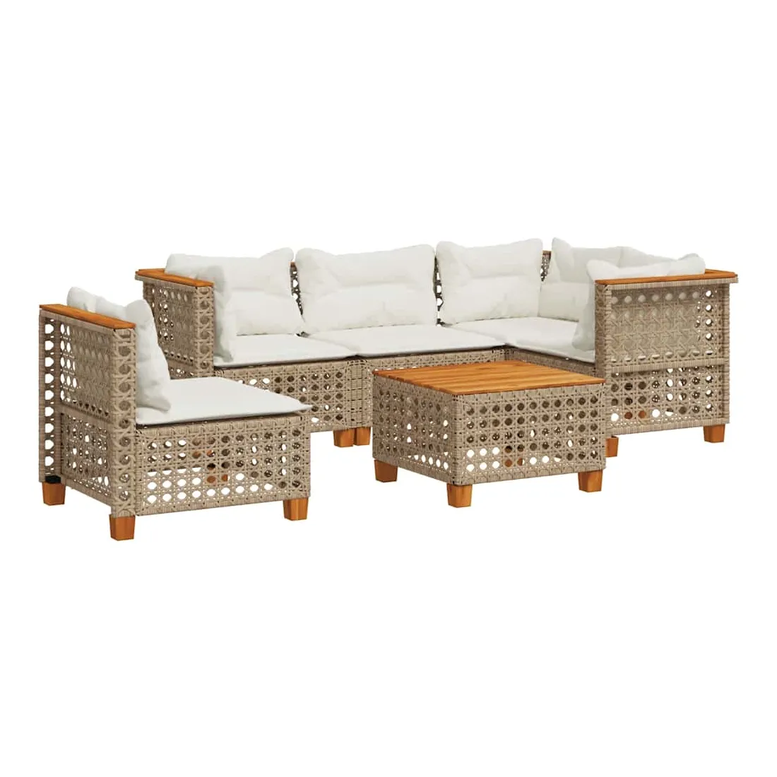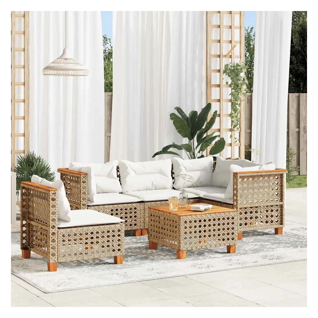Cet ensemble de canapés de jardin est le complément parfait de votre arrière-cour, terrasse ou patio, offrant un espace confortable et accueillant pour discuter avec la famille et les amis ou simplement se détendre et profiter de l'extérieur. Matériau durable : la résine tressée, également connue sous le nom de poly rotin, est un matériau synthétique solide et nécessitant peu d'entretien qui ressemble au rotin naturel. Elle est légère, facile à nettoyer et couramment utilisée pour les meubles d'extérieur en raison de sa durabilité et de ses propriétés de résistance aux intempéries.Expérience d'assise confortable : ce mobilier d'extérieur, doté de coussins épais, offre une expérience d'assise confortable.Housse amovible et lavable : ces coussins de siège sont dotés de housses amovibles pour un lavage et un entretien faciles.Dessus stable et facile à nettoyer : cette table de jardin a un dessus en bois d'acacia robuste, durable et facile à nettoyer avec un chiffon humide.Conception modulaire : cet ensemble de meubles d'extérieur a une conception modulaire, ce qui le rend complètement flexible et facile à déplacer, afin que vous puissiez créer un agencement de meubles d'extérieur personnalisé. Bon à savoir :Pour que vos meubles d'extérieur restent beaux, nous vous recommandons de les protéger avec une housse imperméable.
