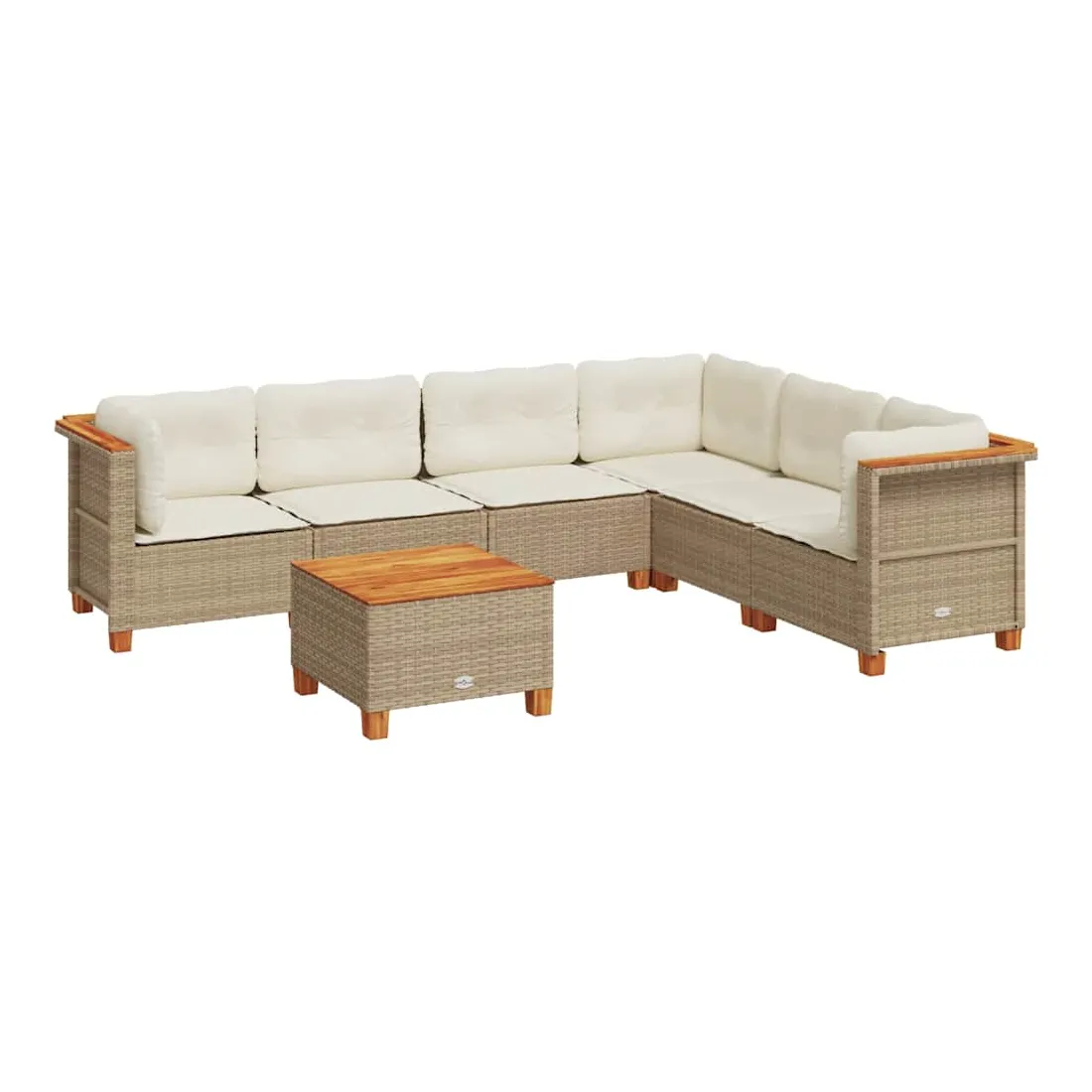 Salon de jardin avec coussins 7 pcs beige résine tressée