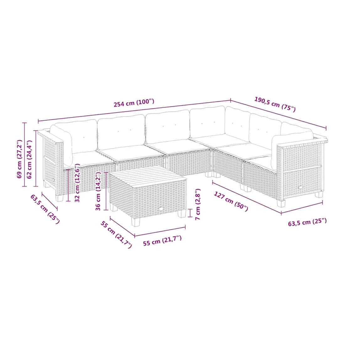 Cet ensemble de canapés de jardin est le complément parfait de votre arrière-cour, terrasse ou patio, offrant un espace confortable et accueillant pour discuter avec la famille et les amis ou simplement se détendre et profiter de l'extérieur. Matériau durable : la résine tressée, également connue sous le nom de poly rotin, est un matériau synthétique solide et nécessitant peu d'entretien qui ressemble au rotin naturel. Elle est légère, facile à nettoyer et couramment utilisée pour les meubles d'extérieur en raison de sa durabilité et de ses propriétés de résistance aux intempéries.Expérience d'assise confortable : ce mobilier d'extérieur, doté de coussins épais, offre une expérience d'assise confortable.Housse amovible et lavable : ces coussins de siège sont dotés de housses amovibles pour un lavage et un entretien faciles.Dessus stable et facile à nettoyer : cette table de jardin a un dessus en bois d'acacia robuste, durable et facile à nettoyer avec un chiffon humide.Conception modulaire : cet ensemble de meubles d'extérieur a une conception modulaire, ce qui le rend complètement flexible et facile à déplacer, afin que vous puissiez créer un agencement de meubles d'extérieur personnalisé. Bon à savoir :Pour que vos meubles d'extérieur restent beaux, nous vous recommandons de les protéger avec une housse imperméable.