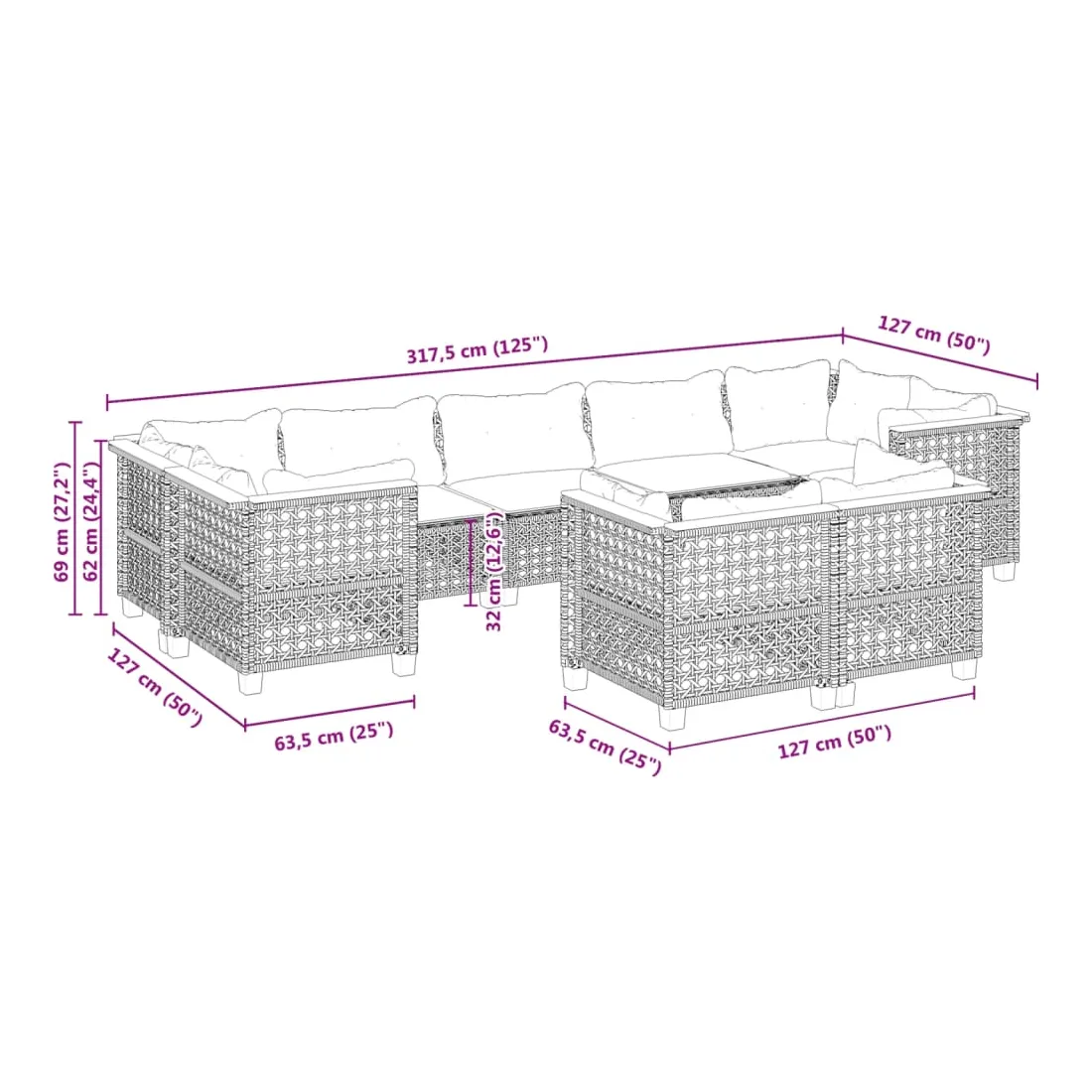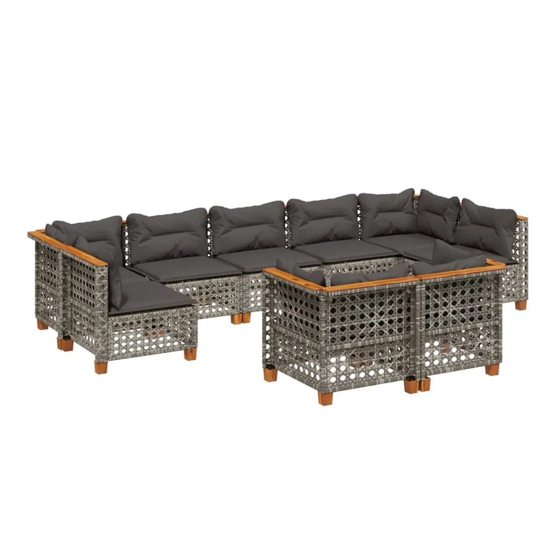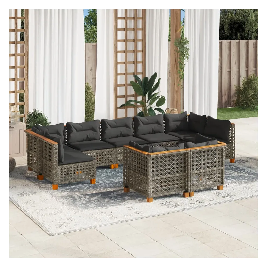 Salon de jardin 9 pcs avec coussins gris résine tressée