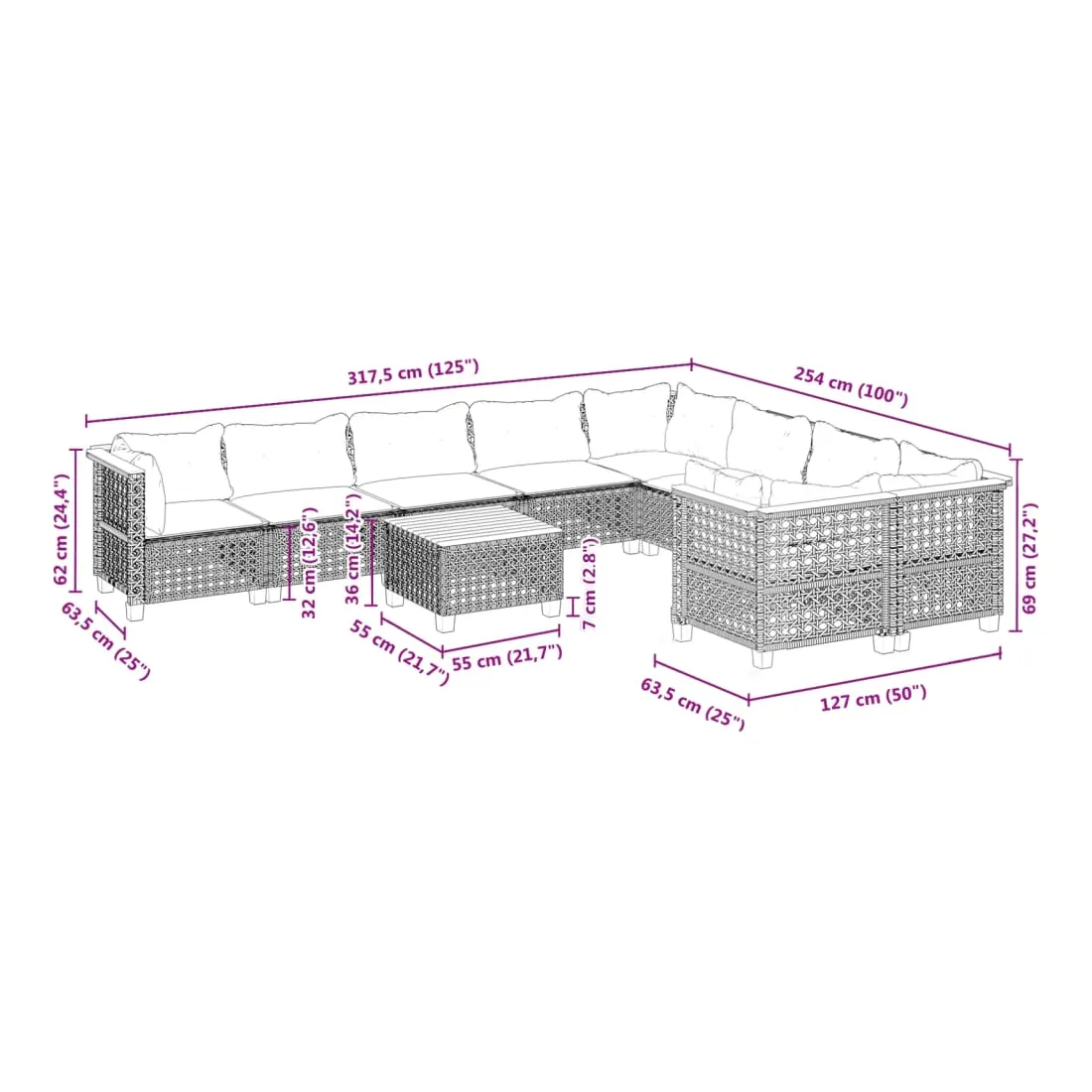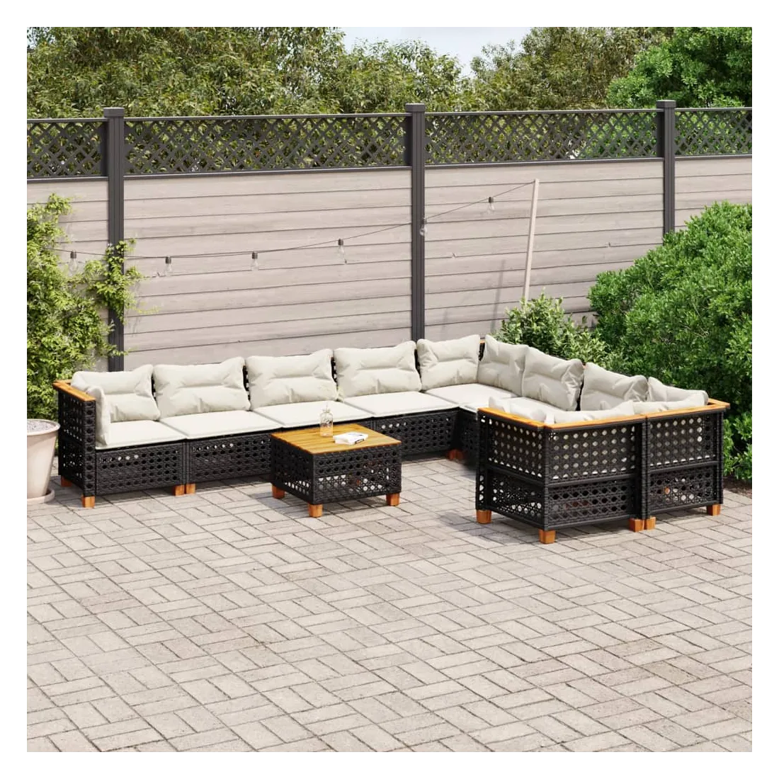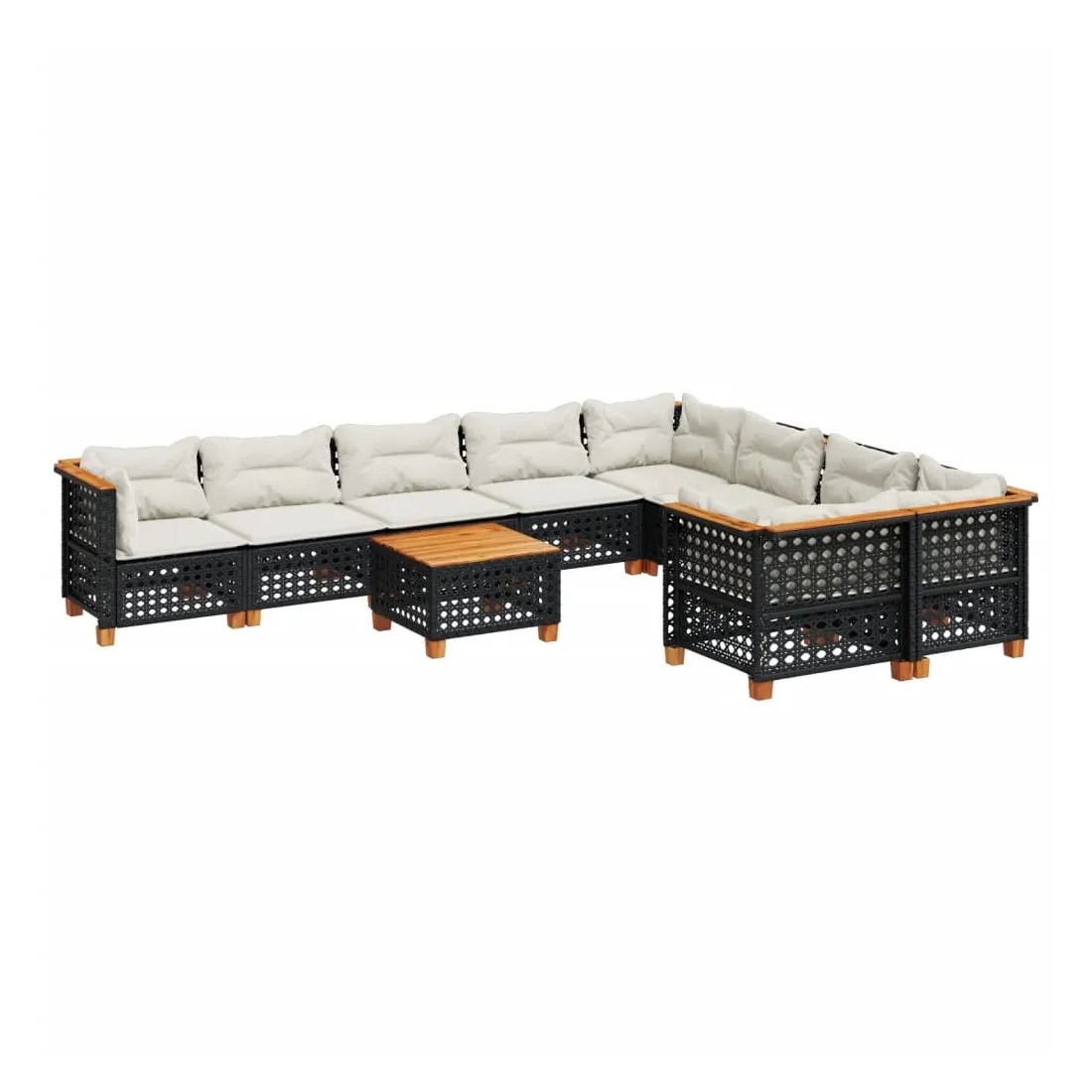 Salon de jardin 10 pcs avec coussins noir résine tressée