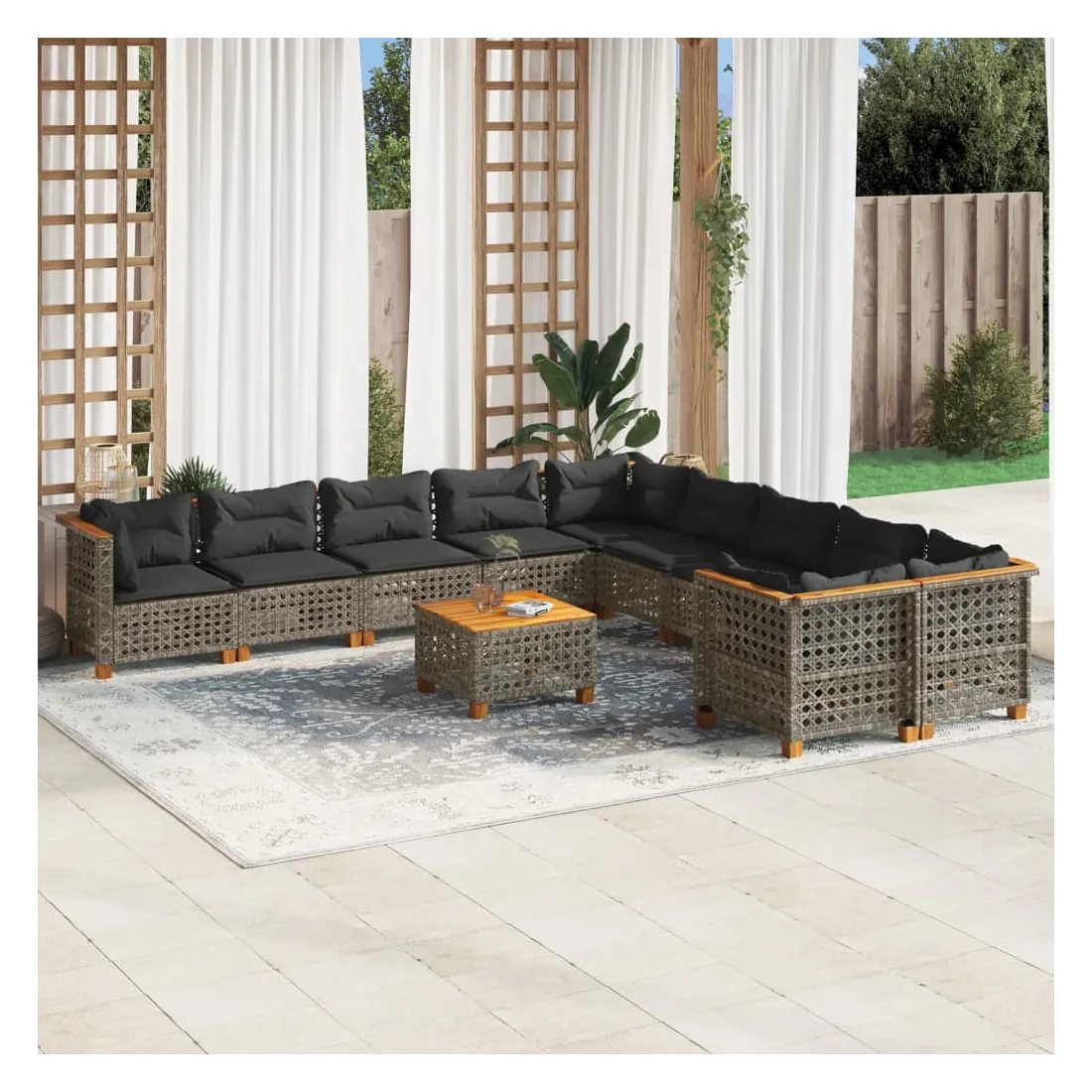 Cet ensemble de canapés de jardin est le complément parfait de votre arrière-cour, terrasse ou patio, offrant un espace confortable et accueillant pour discuter avec la famille et les amis ou simplement se détendre et profiter de l'extérieur. Matériau durable : la résine tressée, également connue sous le nom de poly rotin, est un matériau synthétique solide et nécessitant peu d'entretien qui ressemble au rotin naturel. Il est léger, facile à nettoyer et couramment utilisé pour les meubles d'extérieur en raison de sa durabilité et de ses propriétés de résistance aux intempéries.Expérience d'assise confortable : ce mobilier d'extérieur, doté de coussins épais, offre une expérience d'assise confortable.Housse amovible et lavable : ces coussins de siège sont dotés de housses amovibles pour un lavage et un entretien faciles.Dessus stable et facile à nettoyer : cette table de jardin a un dessus en bois d'acacia robuste, durable et facile à nettoyer avec un chiffon humide.Conception modulaire : cet ensemble de meubles d'extérieur a une conception modulaire, ce qui le rend complètement flexible et facile à déplacer, afin que vous puissiez créer un agencement de meubles d'extérieur personnalisé. Bon à savoir :Pour que vos meubles d'extérieur restent beaux, nous vous recommandons de les protéger avec une housse imperméable.