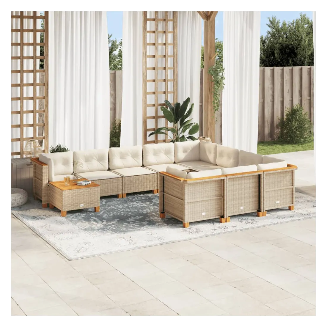 Salon de jardin 11 pcs avec coussins beige résine tressée