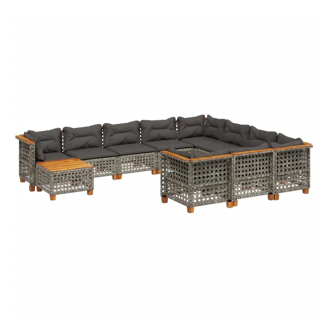 Salon de jardin 11 pcs avec coussins gris résine tressée