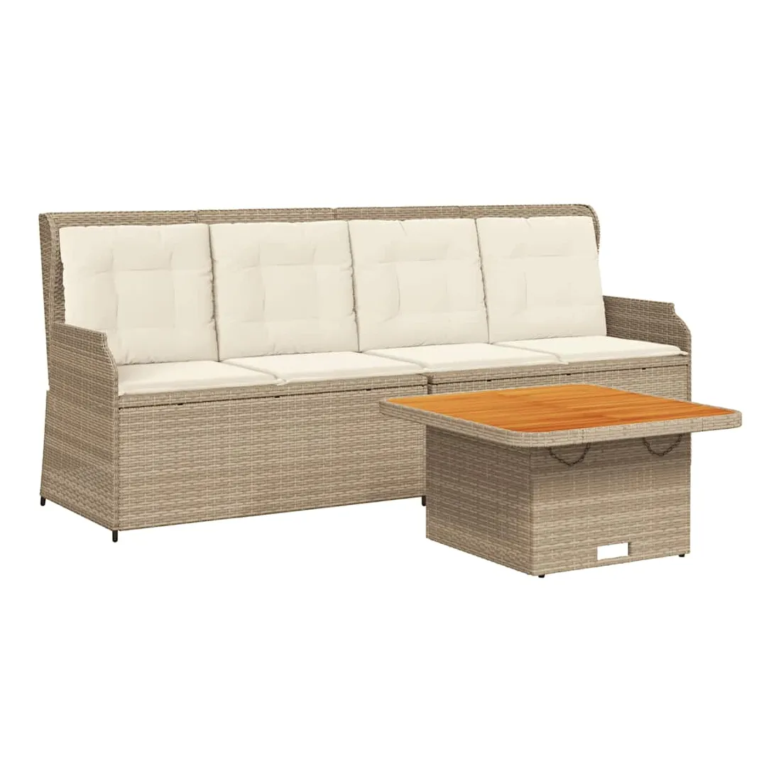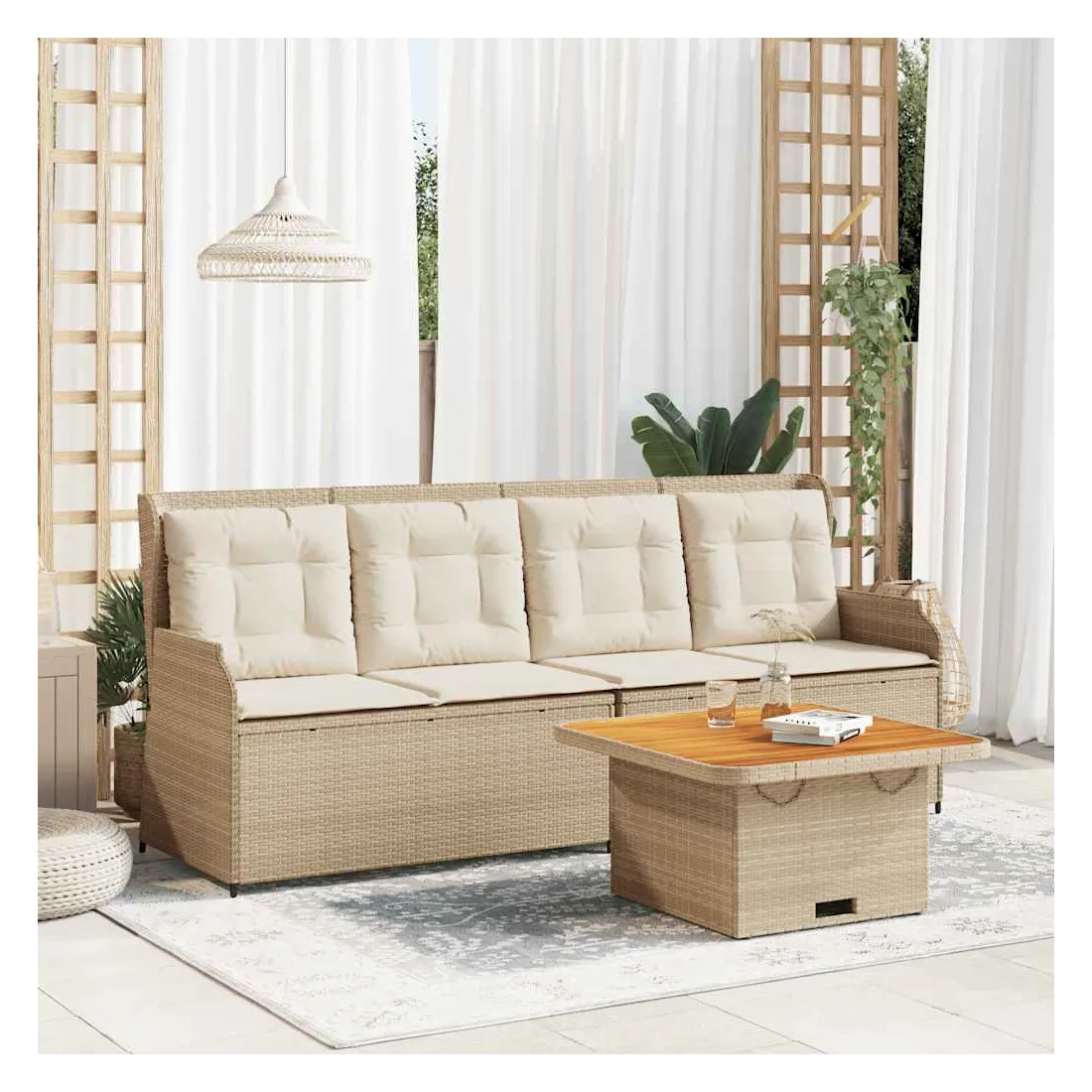 Cet ensemble de salon de jardin est le complément parfait de votre arrière-cour, terrasse ou patio, offrant un espace confortable et accueillant pour discuter avec la famille et les amis ou simplement se détendre et profiter de l'extérieur. Matériau durable : la résine tressée, également connue sous le nom de poly rotin, est un matériau synthétique solide et nécessitant peu d'entretien qui ressemble au rotin naturel. Elle est légère, facile à nettoyer et couramment utilisée pour les meubles d'extérieur en raison de sa durabilité et de ses propriétés de résistance aux intempéries.Dossier réglable : vous pouvez régler le dossier dans n'importe quelle position en tirant sur la poignée et le remettre rapidement dans sa position initiale.Housse amovible et lavable : ces coussins de siège sont dotés de housses amovibles pour un lavage et un entretien faciles.Expérience d'assise confortable : ce mobilier d'extérieur, doté de coussins épais, offre une expérience d'assise confortable.Dessus stable et facile à nettoyer : cette table de jardin a un dessus en bois d'acacia robuste, durable et facile à nettoyer avec un chiffon humide.Cadre robuste et stable : le cadre en acier enduit de poudre est solide, stable, durable et résistant à la corrosion et aux intempéries, ce qui garantit des performances durables. Bon à savoir :Pour que vos meubles d'extérieur restent beaux, nous vous recommandons de les protéger avec une housse imperméable.