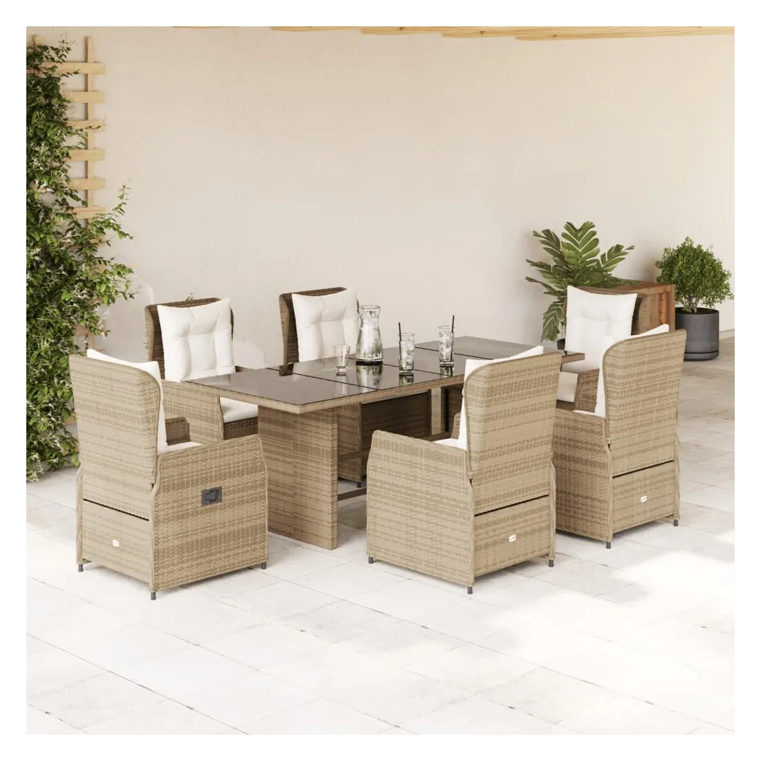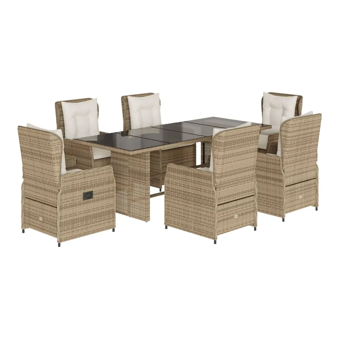 Ensemble à manger de jardin et coussins 7 pcs beige poly rotin