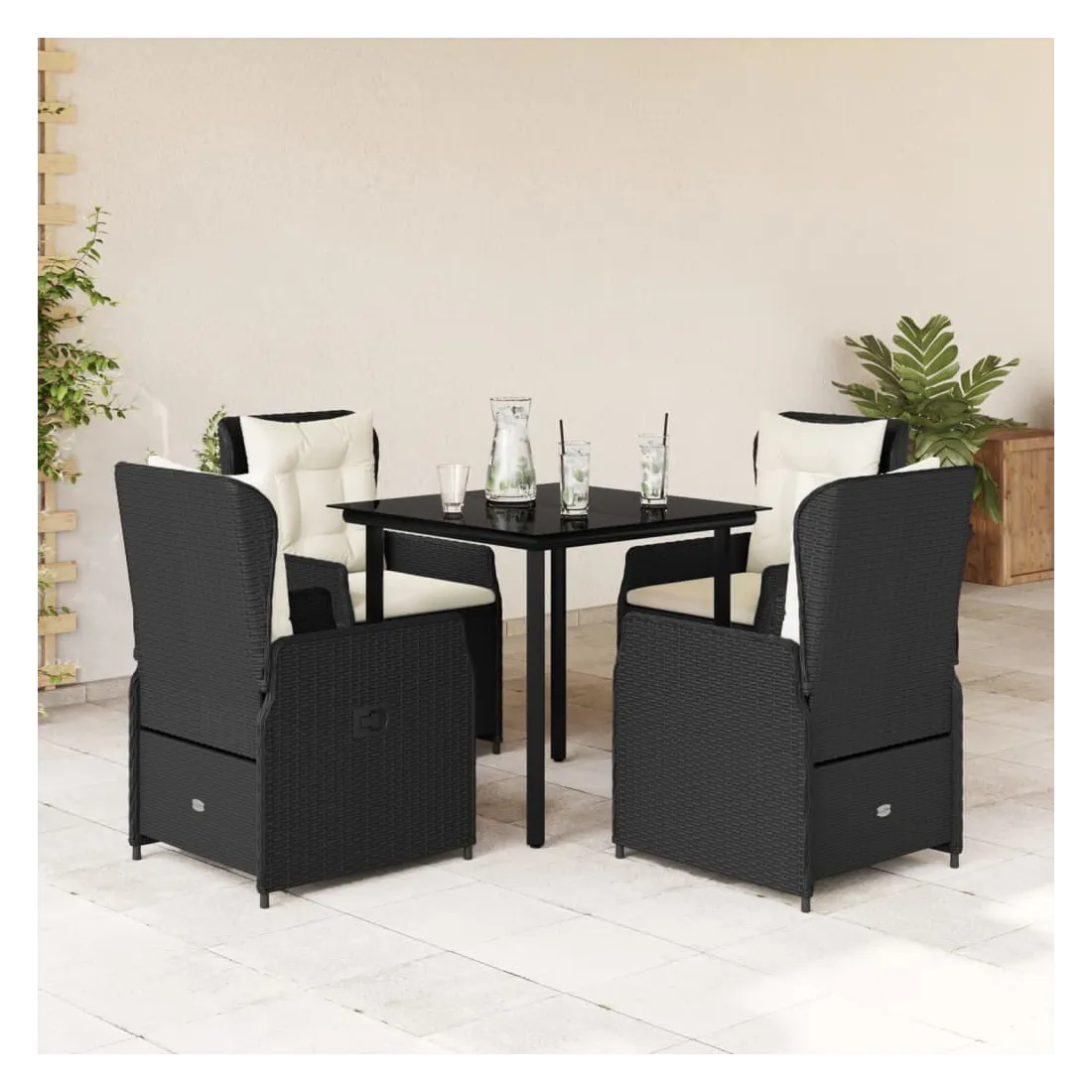 Cet ensemble de salle à manger de jardin est un excellent choix pour les repas en plein air ou pour vous détendre dans le jardin, dans l'arrière-cour ou sur la terrasse. Matériau durable : la résine tressée, également connue sous le nom de poly rotin, est un matériau synthétique solide et nécessitant peu d'entretien qui ressemble au rotin naturel. Il est léger, facile à nettoyer et couramment utilisé pour les meubles d'extérieur en raison de sa durabilité et de ses propriétés de résistance aux intempéries.Dossier réglable : ce siège de jardin est doté d'une poignée. Vous pouvez régler le dossier dans n'importe quelle position en tirant sur la poignée et le remettre rapidement dans sa position initiale.Expérience d'assise confortable : ce mobilier d'extérieur, doté de coussins épais, offre une expérience d'assise confortable.Housse amovible et lavable : le coussin de siège est doté d'une housse amovible pour un lavage et un entretien faciles.Dessus en verre : le dessus de la table d'extérieur est fabriqué en verre trempé solide et durable, ce qui le rend facile à nettoyer avec un chiffon humide et ajoute une touche d'élégance à votre espace extérieur. Bon à savoir :Pour que vos meubles d'extérieur restent beaux, nous vous recommandons de les protéger avec une housse imperméable.