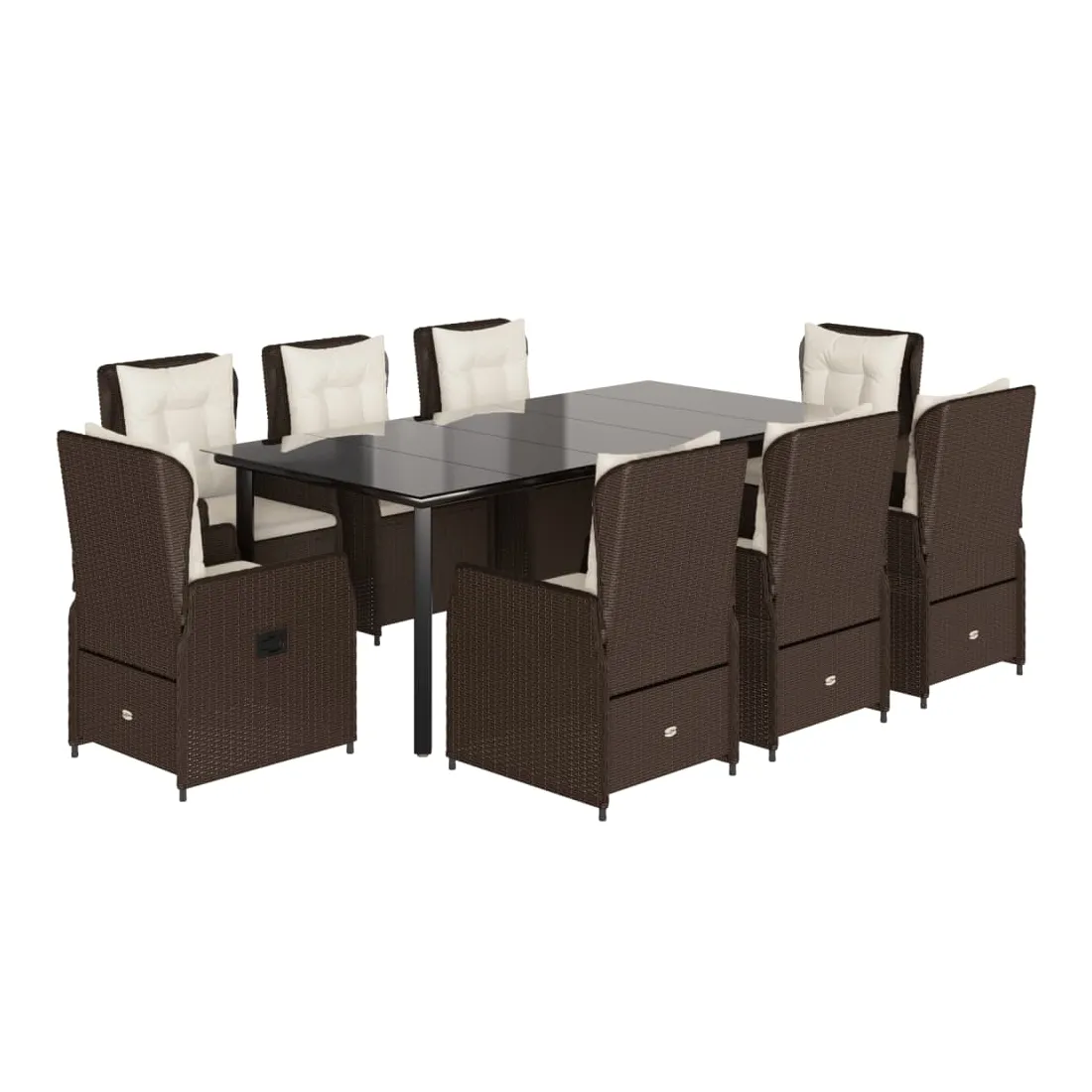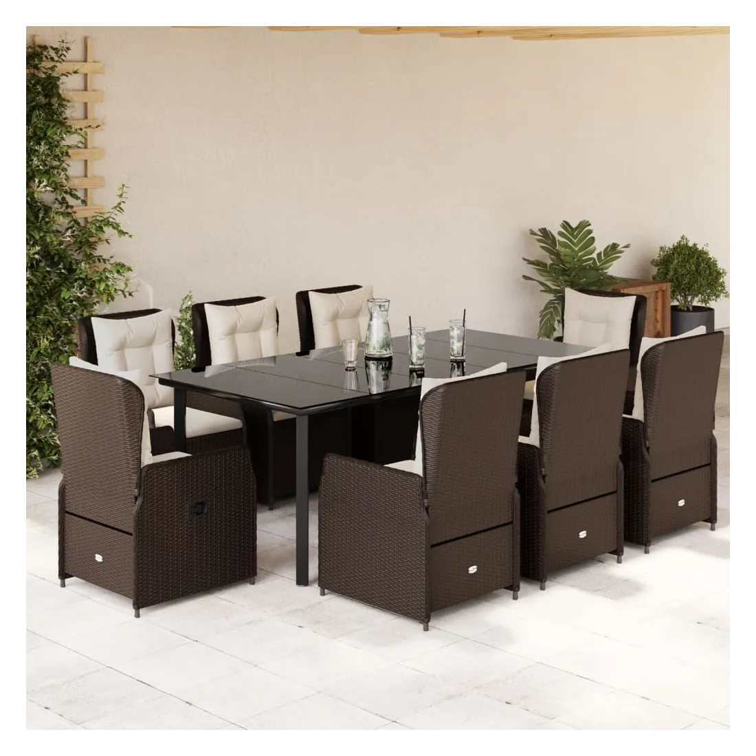 Cet ensemble de salle à manger de jardin est un excellent choix pour les repas en plein air ou pour vous détendre dans le jardin, dans l'arrière-cour ou sur la terrasse. Matériau durable : la résine tressée, également connue sous le nom de poly rotin, est un matériau synthétique solide et nécessitant peu d'entretien qui ressemble au rotin naturel. Il est léger, facile à nettoyer et couramment utilisé pour les meubles d'extérieur en raison de sa durabilité et de ses propriétés de résistance aux intempéries.Dossier réglable : ce siège de jardin est doté d'une poignée. Vous pouvez régler le dossier dans n'importe quelle position en tirant sur la poignée et le remettre rapidement dans sa position initiale.Expérience d'assise confortable : ce mobilier d'extérieur, doté de coussins épais, offre une expérience d'assise confortable.Housse amovible et lavable : le coussin de siège est doté d'une housse amovible pour un lavage et un entretien faciles.Dessus en verre : le dessus de la table d'extérieur est fabriqué en verre trempé solide et durable, ce qui le rend facile à nettoyer avec un chiffon humide et ajoute une touche d'élégance à votre espace extérieur. Bon à savoir :Pour que vos meubles d'extérieur restent beaux, nous vous recommandons de les protéger avec une housse imperméable.