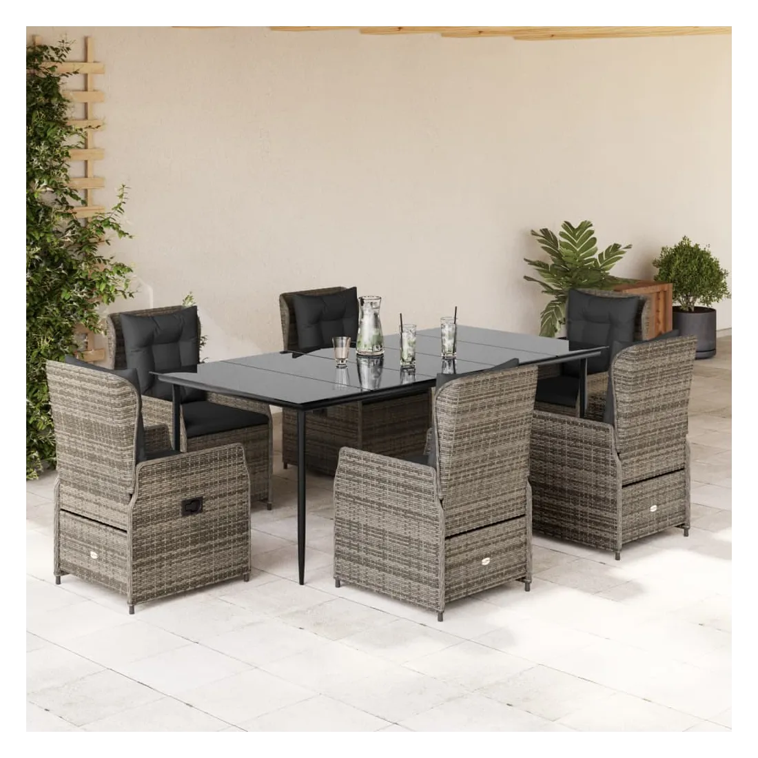 vidaXLCet ensemble de salle à manger de jardin est un excellent choix pour les repas en plein air ou pour vous détendre dans le jardin, dans l'arrière-cour ou sur la terrasse. Matériau durable : la résine tressée, également connue sous le nom de poly rotin, est un matériau synthétique solide et nécessitant peu d'entretien qui ressemble au rotin naturel. Il est léger, facile à nettoyer et couramment utilisé pour les meubles d'extérieur en raison de sa durabilité et de ses propriétés de résistance aux intempéries.Dossier réglable : ce siège de jardin est doté d'une poignée. Vous pouvez régler le dossier dans n'importe quelle position en tirant sur la poignée et le remettre rapidement dans sa position initiale.Expérience d'assise confortable : ce mobilier d'extérieur, doté de coussins épais, offre une expérience d'assise confortable.Housse amovible et lavable : le coussin de siège est doté d'une housse amovible pour un lavage et un entretien faciles.Dessus en verre : le dessus de la table d'extérieur est fabriqué en verre trempé solide et durable, ce qui le rend facile à nettoyer avec un chiffon humide et ajoute une touche d'élégance à votre espace extérieur. Bon à savoir :Pour que vos meubles d'extérieur restent beaux, nous vous recommandons de les protéger avec une housse imperméable.