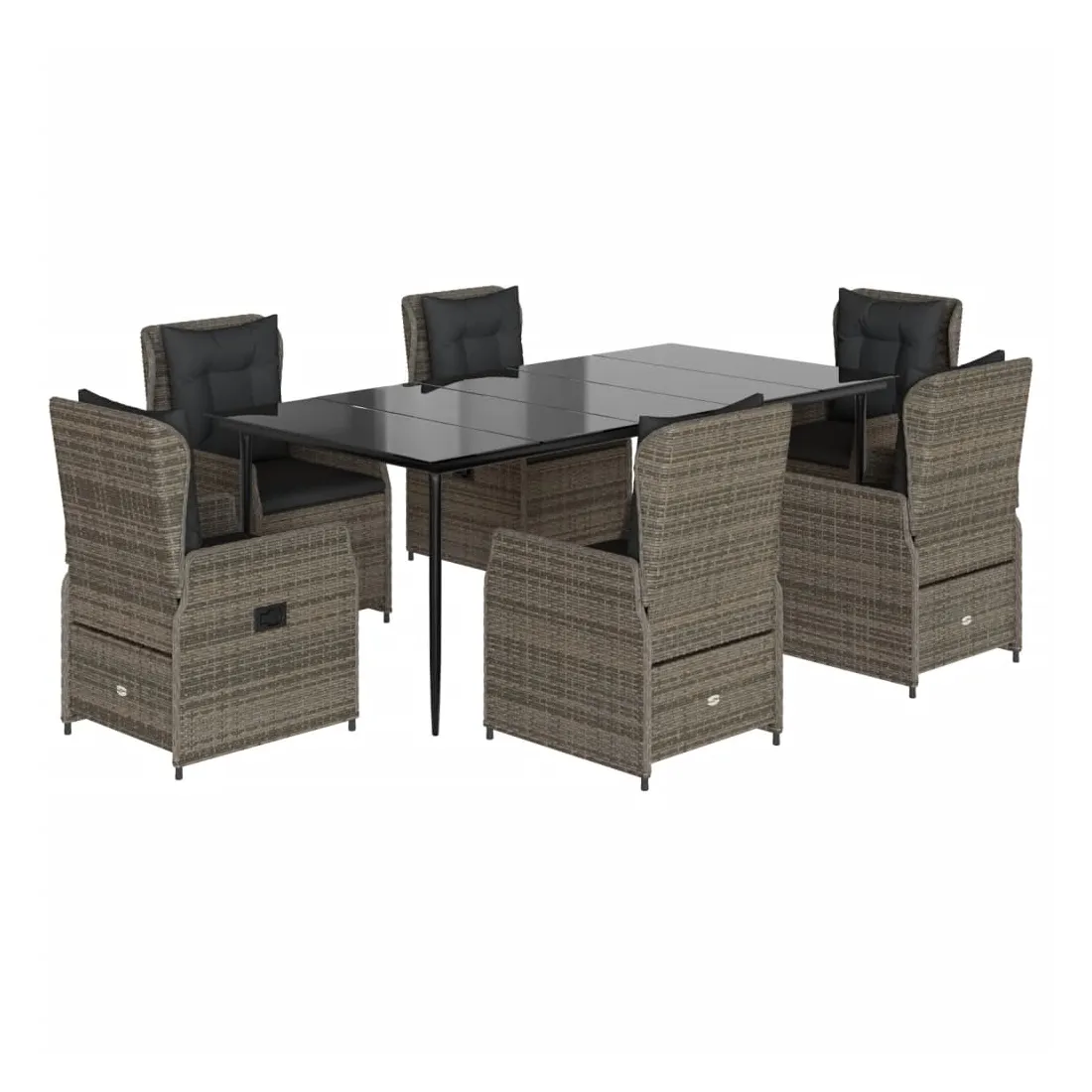 Ensemble à manger de jardin et coussins 7 pcs gris rotin
