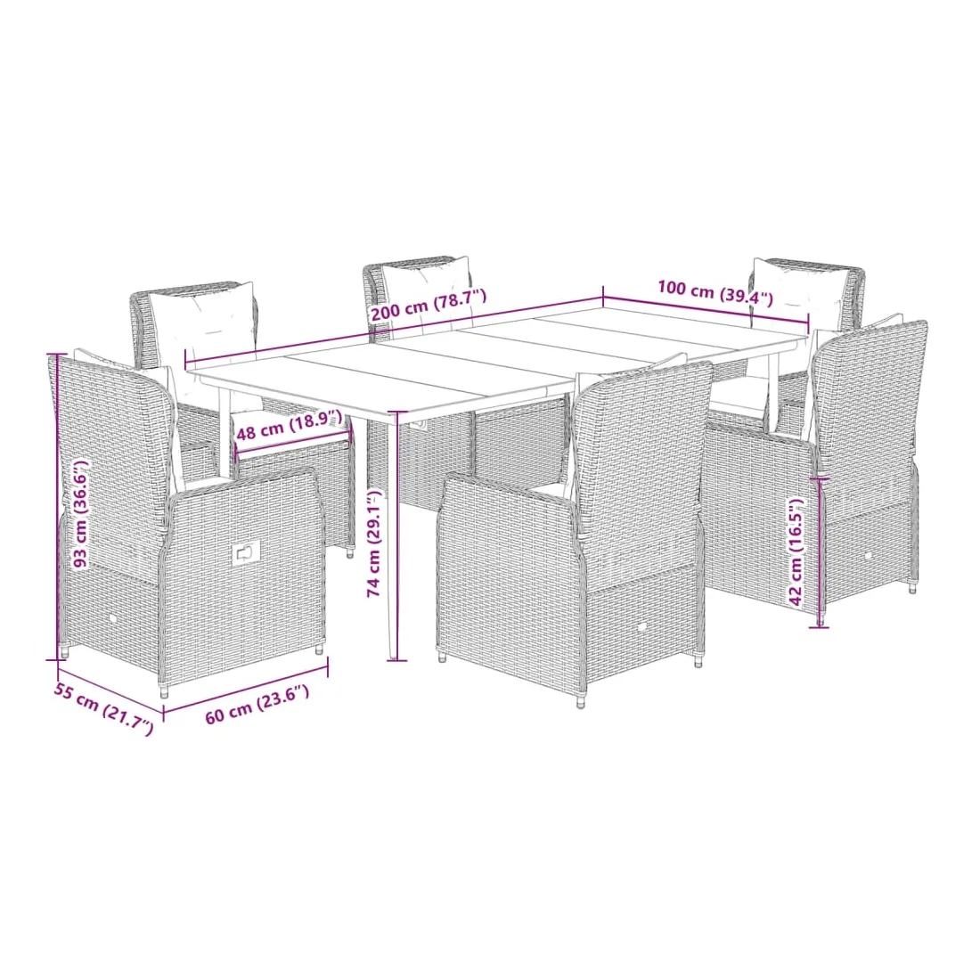 - Dimensions : 200 x 100 x 74 cm (L x l x H)