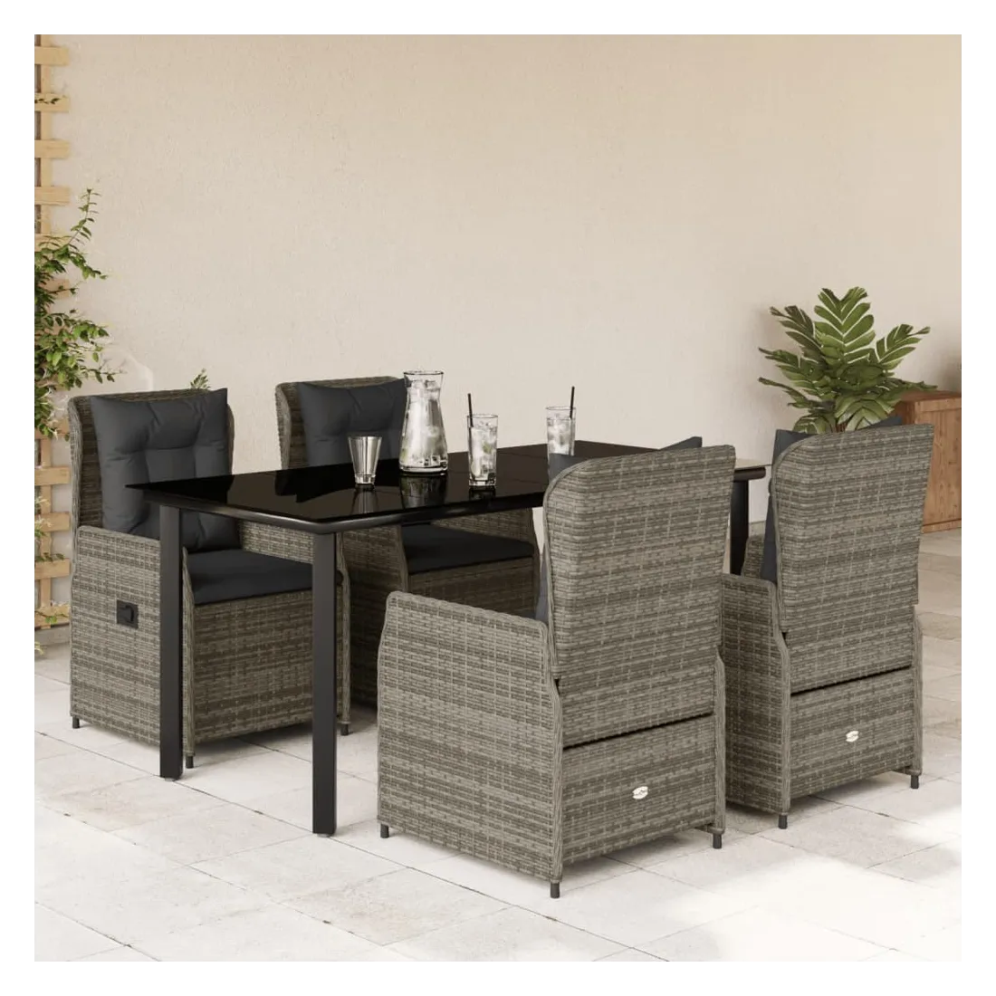vidaXLCet ensemble de salle à manger de jardin est un excellent choix pour les repas en plein air ou pour vous détendre dans le jardin, dans l'arrière-cour ou sur la terrasse. Matériau durable : la résine tressée, également connue sous le nom de poly rotin, est un matériau synthétique solide et nécessitant peu d'entretien qui ressemble au rotin naturel. Il est léger, facile à nettoyer et couramment utilisé pour les meubles d'extérieur en raison de sa durabilité et de ses propriétés de résistance aux intempéries.Dossier réglable : ce siège de jardin est doté d'une poignée. Vous pouvez régler le dossier dans n'importe quelle position en tirant sur la poignée et le remettre rapidement dans sa position initiale.Expérience d'assise confortable : ce mobilier d'extérieur, doté de coussins épais, offre une expérience d'assise confortable.Housse amovible et lavable : le coussin de siège est doté d'une housse amovible pour un lavage et un entretien faciles.Dessus en verre : le dessus de la table d'extérieur est fabriqué en verre trempé solide et durable, ce qui le rend facile à nettoyer avec un chiffon humide et ajoute une touche d'élégance à votre espace extérieur. Bon à savoir :Pour que vos meubles d'extérieur restent beaux, nous vous recommandons de les protéger avec une housse imperméable.