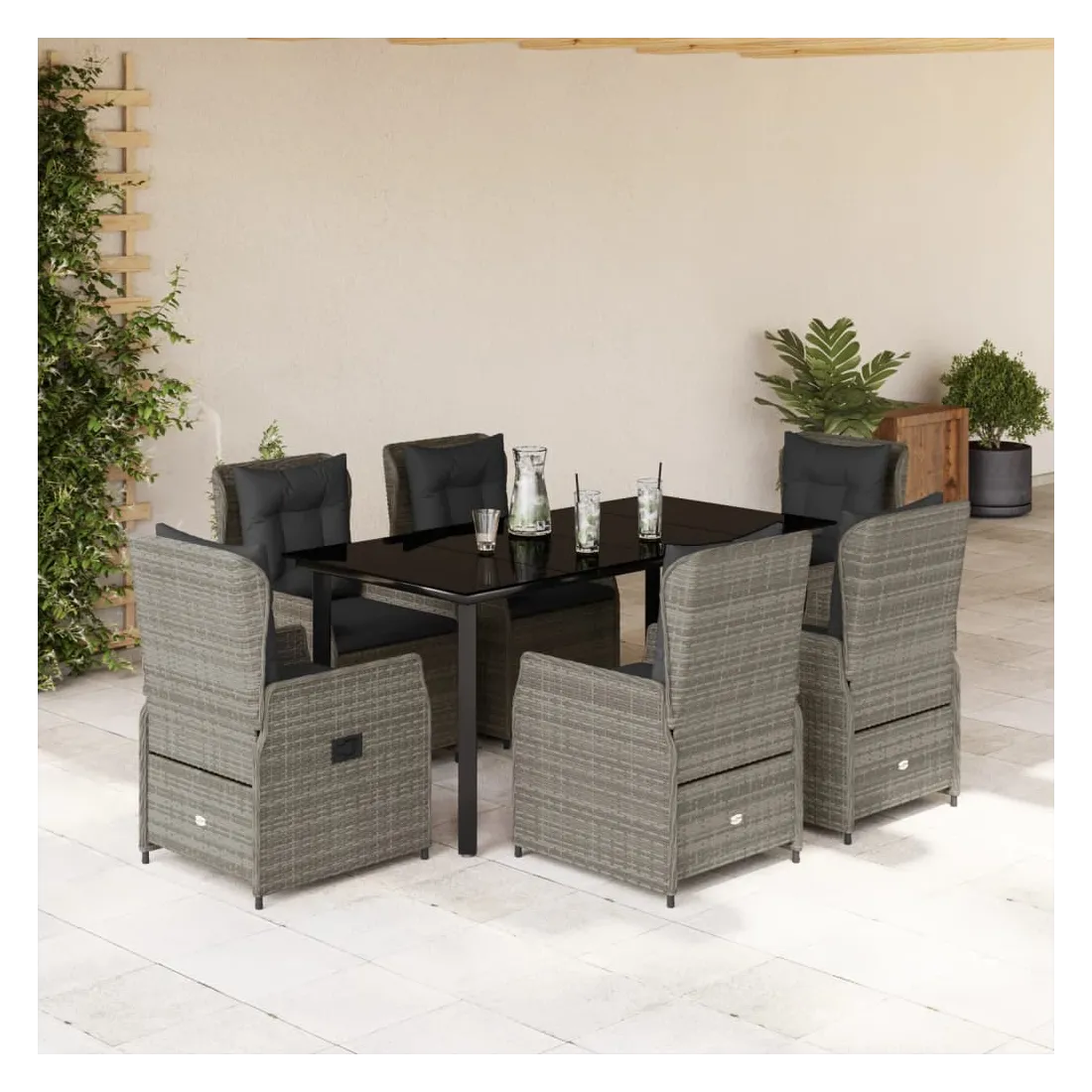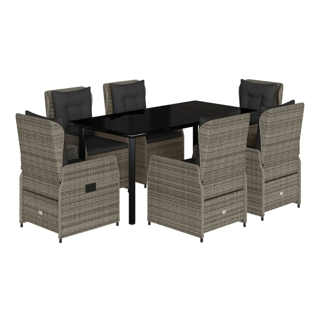 Ensemble à manger de jardin et coussins 7 pcs gris rotin