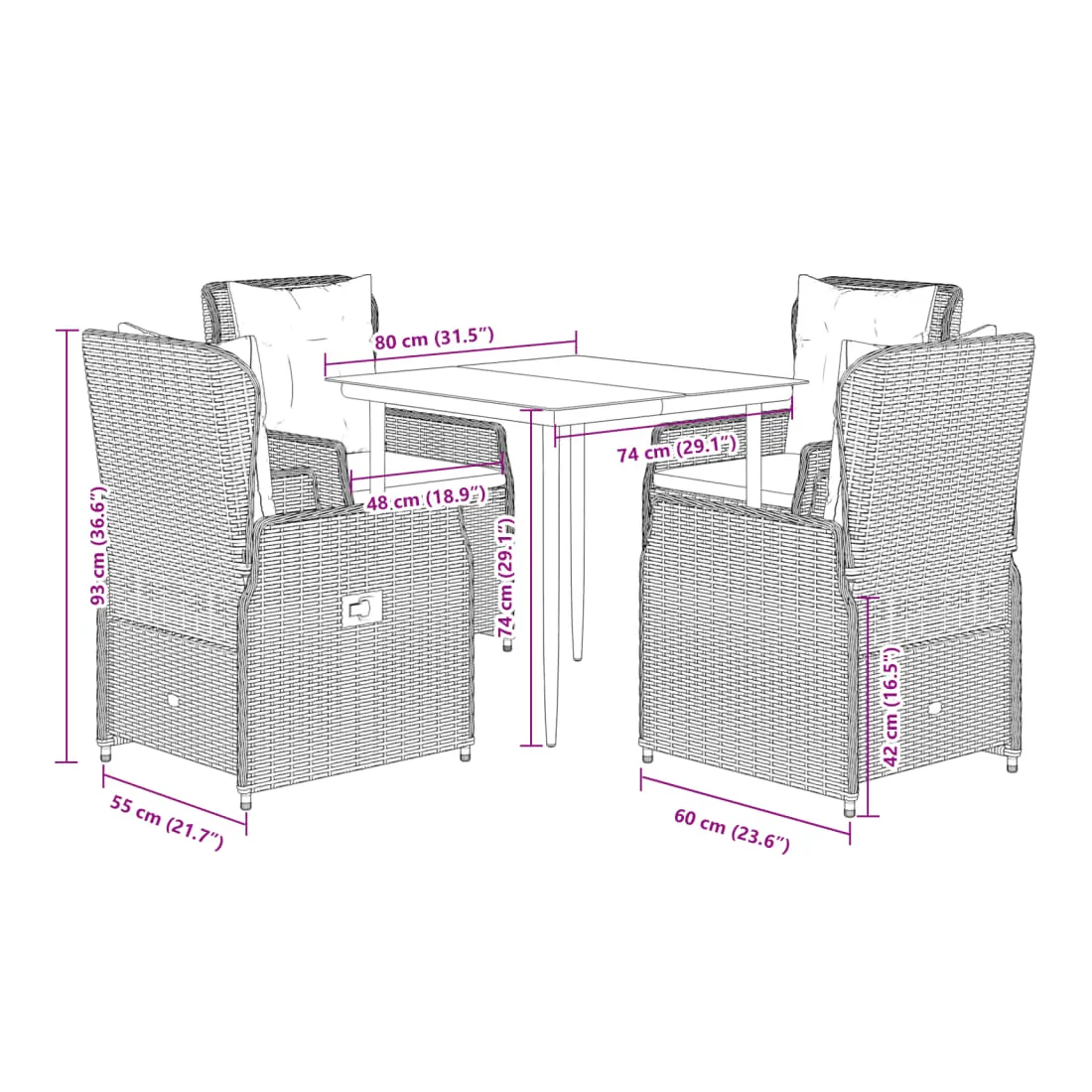 Ensemble à manger de jardin avec coussins 5pcs Beige poly rotin