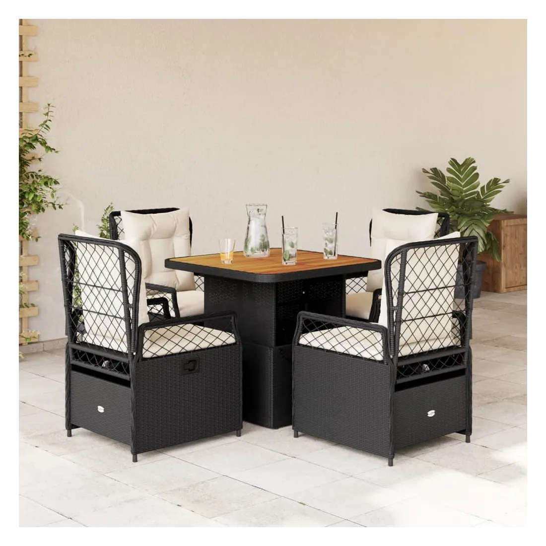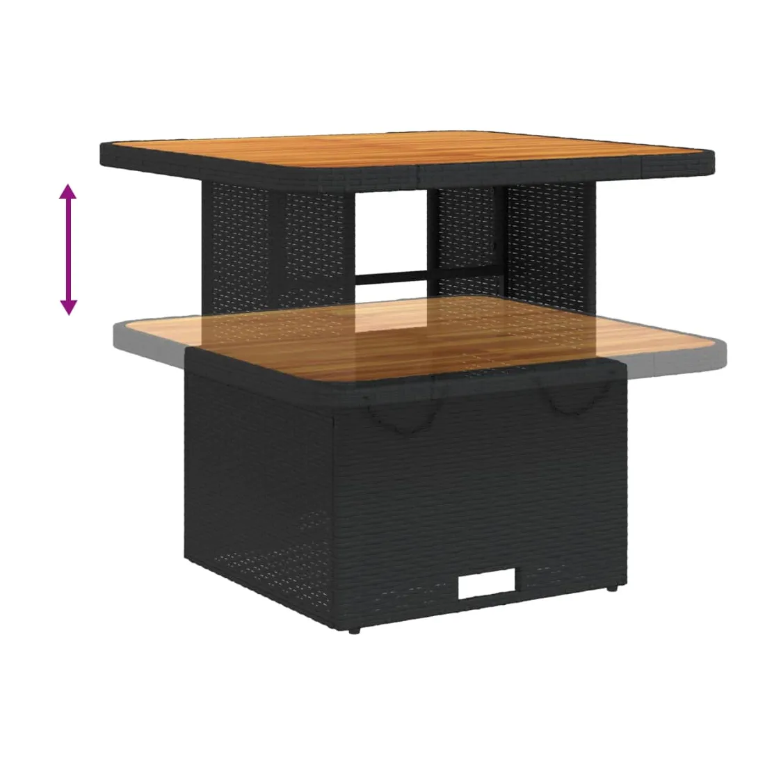 Cet ensemble de salle à manger de jardin est un excellent choix pour les repas en plein air ou pour vous détendre dans le jardin, dans l'arrière-cour ou sur la terrasse. Matériau durable : la résine tressée, également connue sous le nom de poly rotin, est un matériau synthétique solide et nécessitant peu d'entretien qui ressemble au rotin naturel. Il est léger, facile à nettoyer et couramment utilisé pour les meubles d'extérieur en raison de sa durabilité et de ses propriétés de résistance aux intempéries.Dossier réglable : ce siège de jardin est doté d'une poignée. Vous pouvez régler le dossier dans n'importe quelle position en tirant sur la poignée et le remettre rapidement dans sa position initiale.Housse amovible et lavable : le coussin de siège est doté d'une housse amovible pour un lavage et un entretien faciles.Dessus de table réglable : le dessus de table peut être soulevé pour rendre la table plus haute, ce qui transforme la table d'extérieur d'une table basse à une table de salle à manger. Elle est parfaite pour recevoir des invités ou prendre des repas à l'extérieur.Dessus stable et facile à nettoyer : cette table de jardin a un dessus en bois d'acacia robuste, durable et facile à nettoyer avec un chiffon humide. Bon à savoir :Pour que vos meubles d'extérieur restent beaux, nous vous recommandons de les protéger avec une housse imperméable.