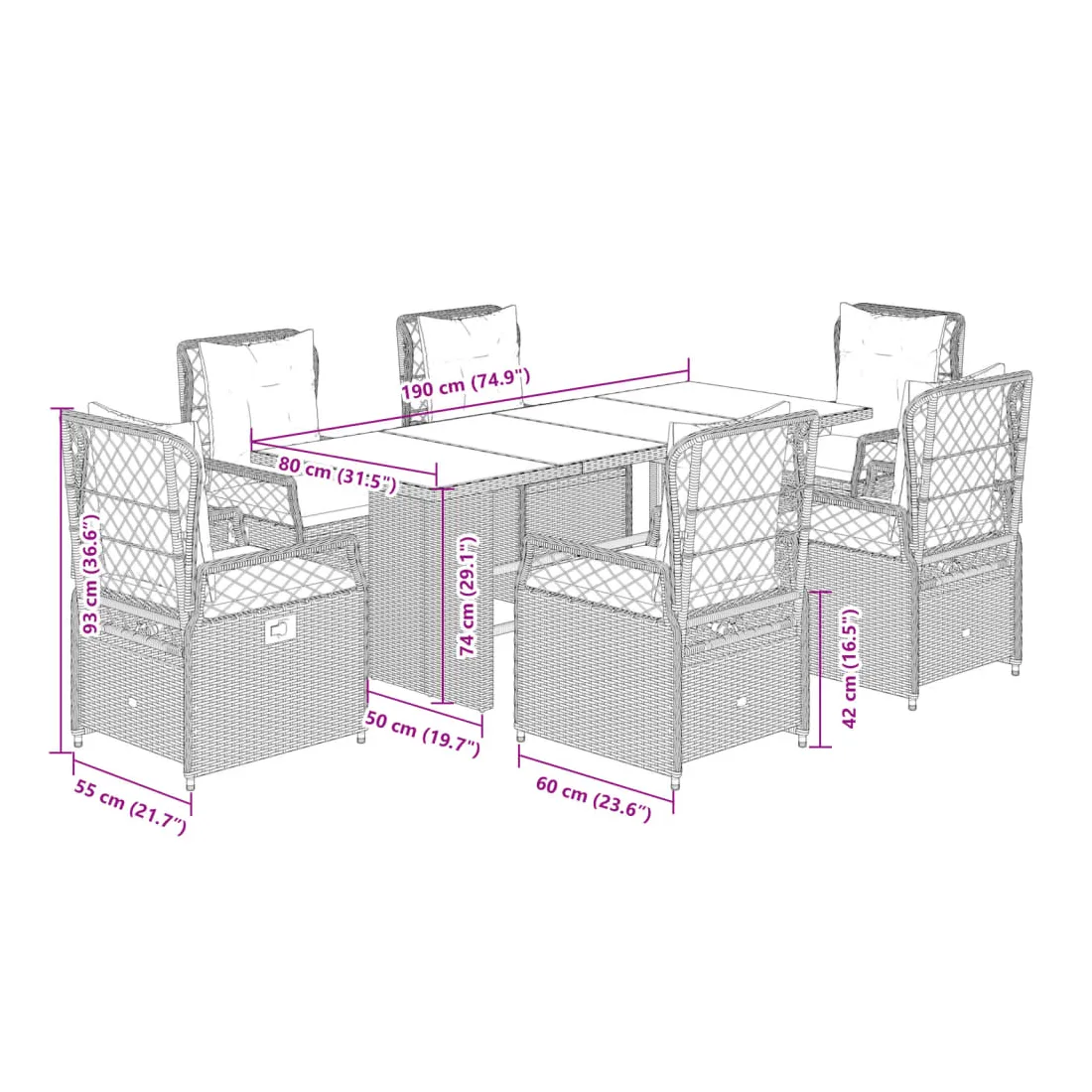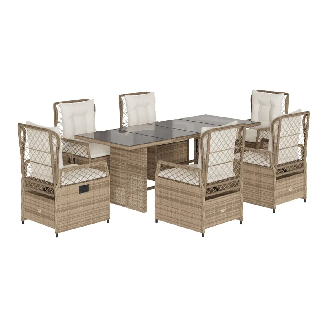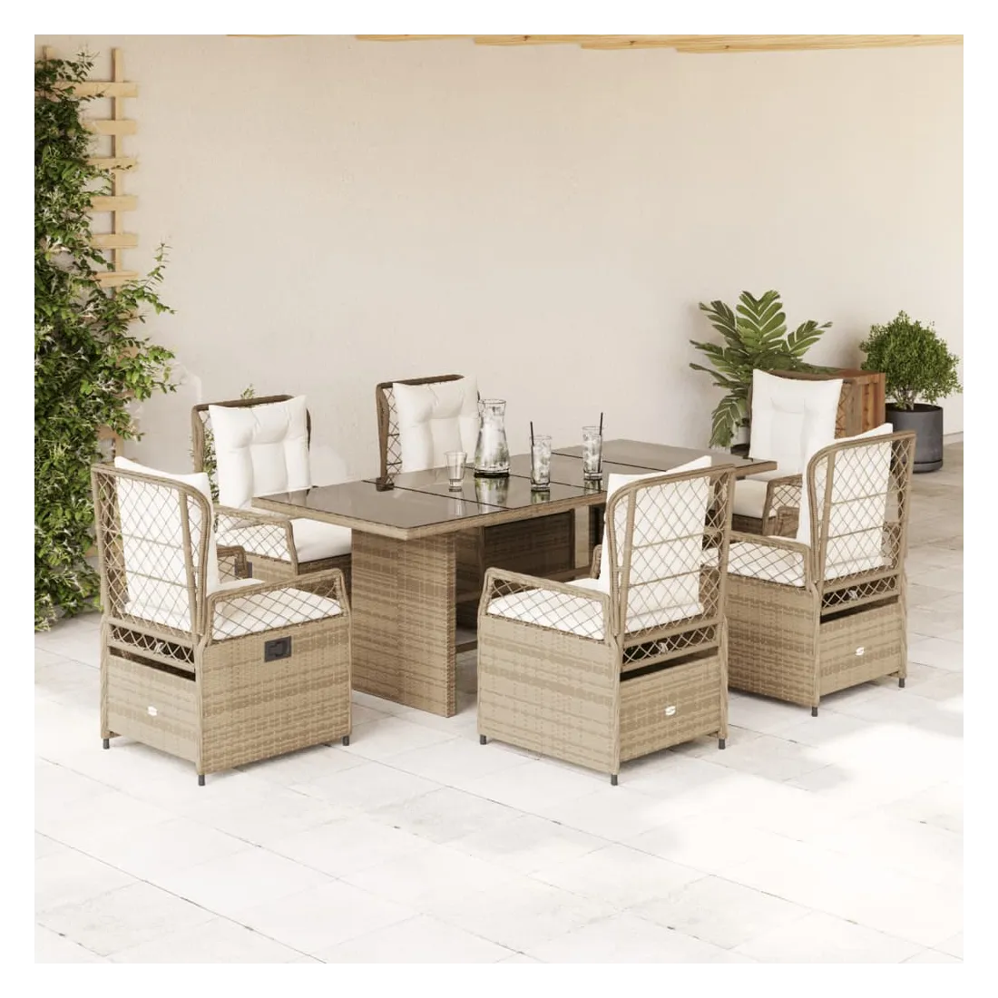 Cet ensemble de salle à manger de jardin est un excellent choix pour les repas en plein air ou pour vous détendre dans le jardin, dans l'arrière-cour ou sur la terrasse. Matériau durable : la résine tressée, également connue sous le nom de poly rotin, est un matériau synthétique solide et nécessitant peu d'entretien qui ressemble au rotin naturel. Il est léger, facile à nettoyer et couramment utilisé pour les meubles d'extérieur en raison de sa durabilité et de ses propriétés de résistance aux intempéries.Dossier réglable : ce siège de jardin est doté d'une poignée. Vous pouvez régler le dossier dans n'importe quelle position en tirant sur la poignée et le remettre rapidement dans sa position initiale.Expérience d'assise confortable : ce mobilier d'extérieur, doté de coussins épais, offre une expérience d'assise confortable.Housse amovible et lavable : le coussin de siège est doté d'une housse amovible pour un lavage et un entretien faciles.Dessus en verre : le dessus de la table d'extérieur est fabriqué en verre trempé solide et durable, ce qui le rend facile à nettoyer avec un chiffon humide et ajoute une touche d'élégance à votre espace extérieur. Bon à savoir :Pour que vos meubles d'extérieur restent beaux, nous vous recommandons de les protéger avec une housse imperméable.
