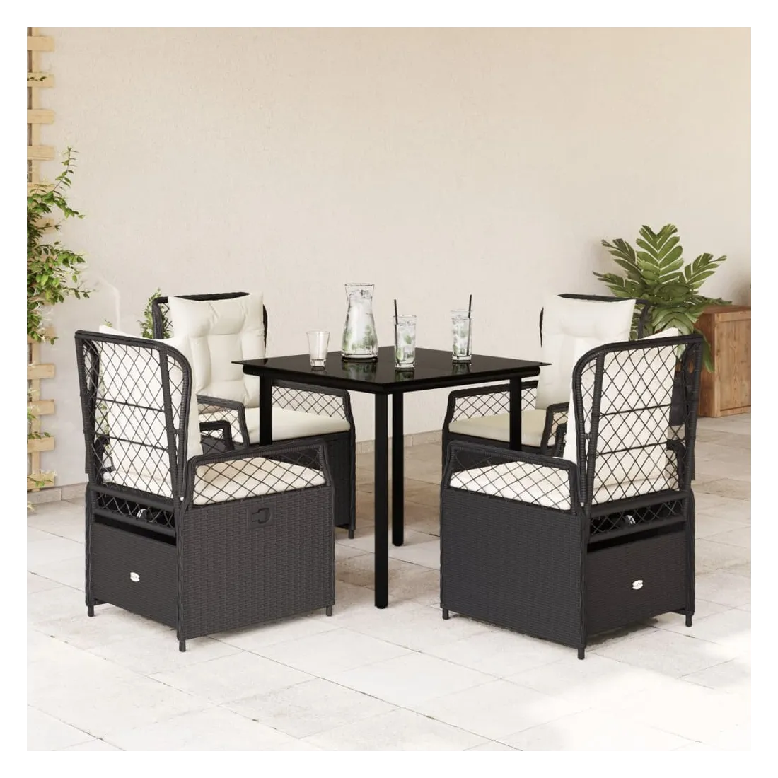 Cet ensemble de salle à manger de jardin est un excellent choix pour les repas en plein air ou pour vous détendre dans le jardin, dans l'arrière-cour ou sur la terrasse. Matériau durable : la résine tressée, également connue sous le nom de poly rotin, est un matériau synthétique solide et nécessitant peu d'entretien qui ressemble au rotin naturel. Il est léger, facile à nettoyer et couramment utilisé pour les meubles d'extérieur en raison de sa durabilité et de ses propriétés de résistance aux intempéries.Dossier réglable : ce siège de jardin est doté d'une poignée. Vous pouvez régler le dossier dans n'importe quelle position en tirant sur la poignée et le remettre rapidement dans sa position initiale.Expérience d'assise confortable : ce mobilier d'extérieur, doté de coussins épais, offre une expérience d'assise confortable.Housse amovible et lavable : le coussin de siège est doté d'une housse amovible pour un lavage et un entretien faciles.Dessus en verre : le dessus de la table d'extérieur est fabriqué en verre trempé solide et durable, ce qui le rend facile à nettoyer avec un chiffon humide et ajoute une touche d'élégance à votre espace extérieur. Bon à savoir :Pour que vos meubles d'extérieur restent beaux, nous vous recommandons de les protéger avec une housse imperméable.