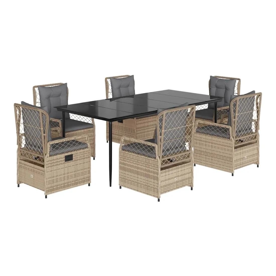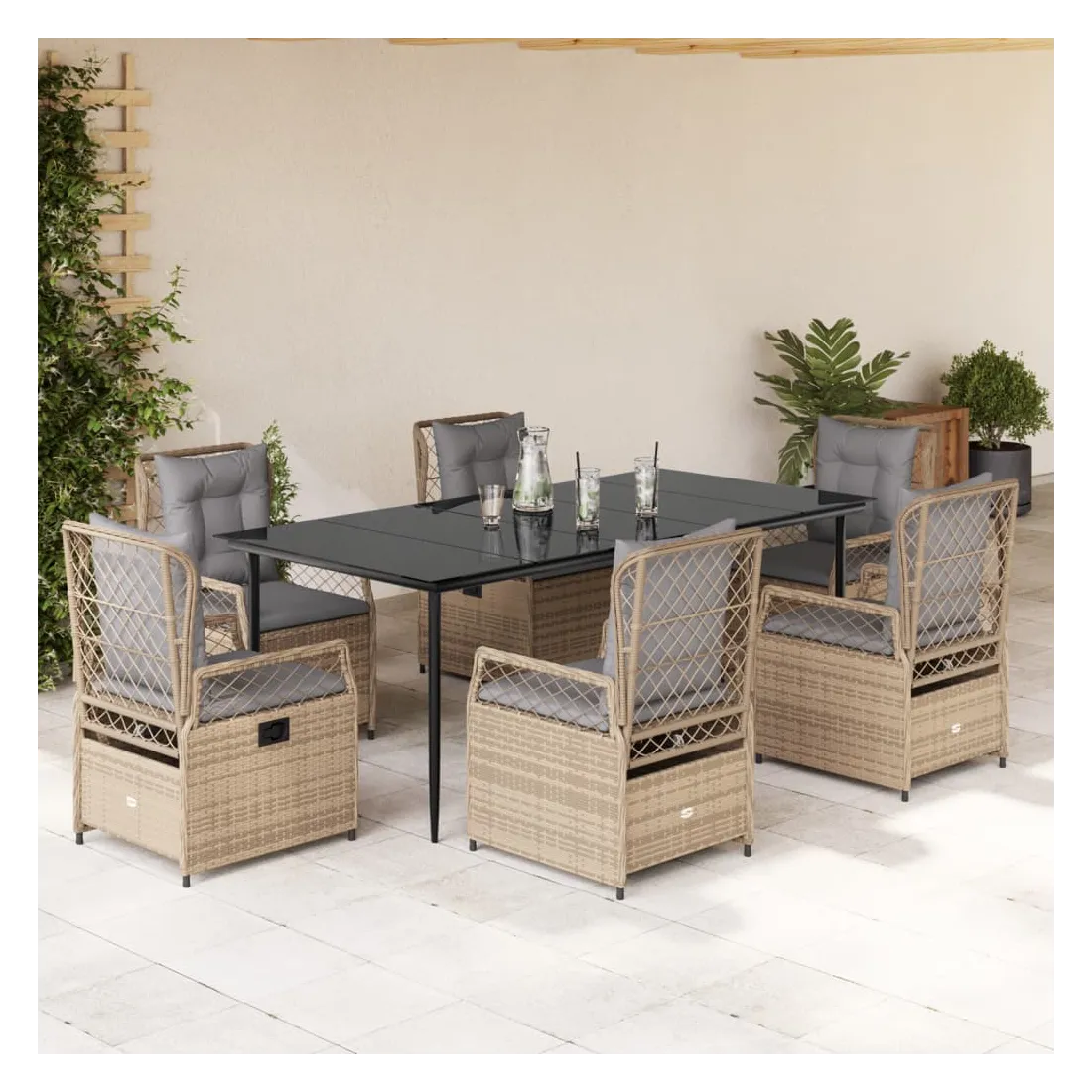 Cet ensemble de salle à manger de jardin est un excellent choix pour les repas en plein air ou pour vous détendre dans le jardin, dans l'arrière-cour ou sur la terrasse. Matériau durable : la résine tressée, également connue sous le nom de poly rotin, est un matériau synthétique solide et nécessitant peu d'entretien qui ressemble au rotin naturel. Il est léger, facile à nettoyer et couramment utilisé pour les meubles d'extérieur en raison de sa durabilité et de ses propriétés de résistance aux intempéries.Dossier réglable : ce siège de jardin est doté d'une poignée. Vous pouvez régler le dossier dans n'importe quelle position en tirant sur la poignée et le remettre rapidement dans sa position initiale.Expérience d'assise confortable : ce mobilier d'extérieur, doté de coussins épais, offre une expérience d'assise confortable.Housse amovible et lavable : le coussin de siège est doté d'une housse amovible pour un lavage et un entretien faciles.Dessus en verre : le dessus de la table d'extérieur est fabriqué en verre trempé solide et durable, ce qui le rend facile à nettoyer avec un chiffon humide et ajoute une touche d'élégance à votre espace extérieur. Bon à savoir :Pour que vos meubles d'extérieur restent beaux, nous vous recommandons de les protéger avec une housse imperméable.