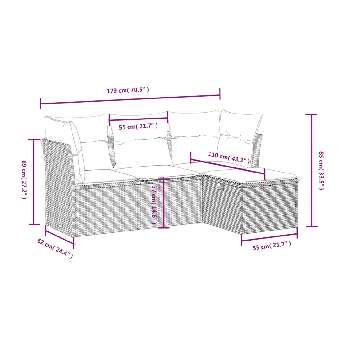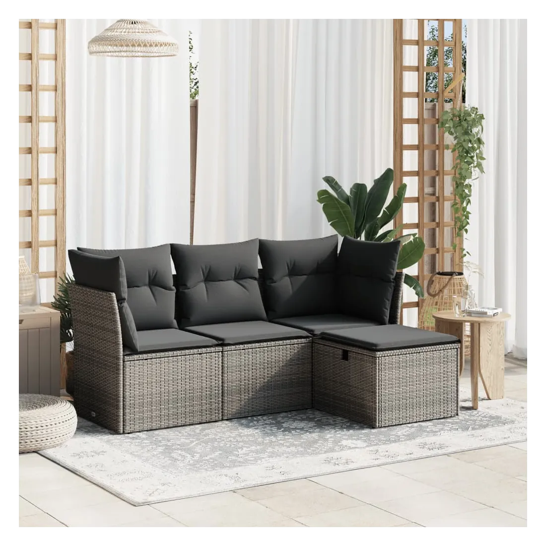 Cet ensemble de canapés de jardin est le complément parfait de votre arrière-cour, terrasse ou patio, offrant un espace confortable et accueillant pour discuter avec la famille et les amis ou simplement se détendre et profiter de l'extérieur. Matériau durable : la résine tressée, également connue sous le nom de poly rotin, est un matériau synthétique solide et nécessitant peu d'entretien qui ressemble au rotin naturel. Il est léger, facile à nettoyer et couramment utilisé pour les meubles d'extérieur en raison de sa durabilité et de ses propriétés de résistance aux intempéries.Expérience d'assise confortable : ce mobilier d'extérieur, doté de coussins épais, offre une expérience d'assise confortable.Housse amovible et lavable : ces coussins de siège sont dotés de housses amovibles pour un lavage et un entretien faciles.Cadre robuste et stable : le cadre en acier enduit de poudre assure la solidité et la stabilité du meuble de jardin pour une utilisation quotidienne à l'extérieur.Conception modulaire : cet ensemble de meubles d'extérieur a une conception modulaire, ce qui le rend complètement flexible et facile à déplacer, afin que vous puissiez créer un agencement de meubles d'extérieur personnalisé. Bon à savoir :Pour que vos meubles d'extérieur restent beaux, nous vous recommandons de les protéger avec une housse imperméable.