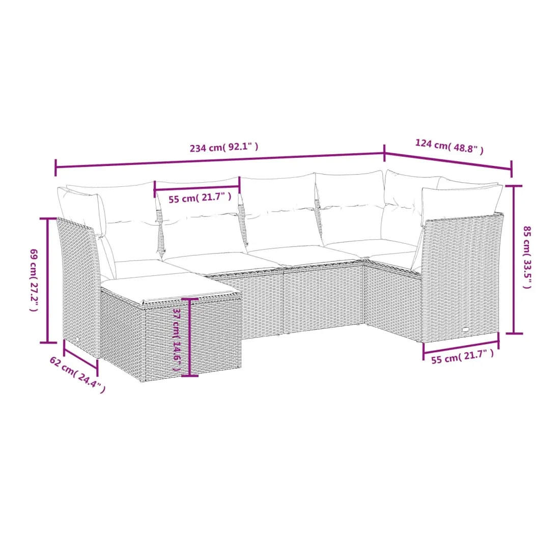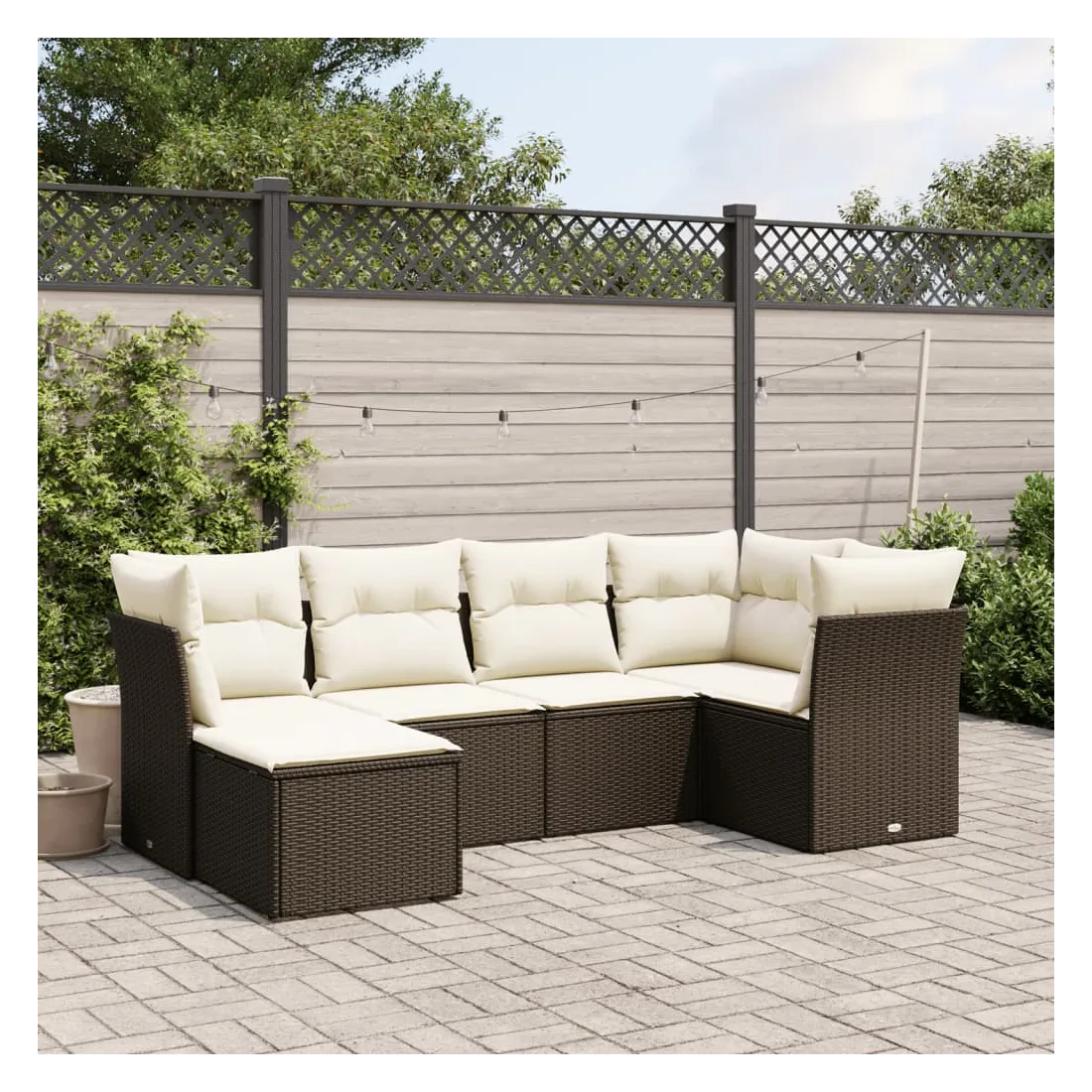 Cet ensemble de canapés de jardin est le complément parfait de votre arrière-cour, terrasse ou patio, offrant un espace confortable et accueillant pour discuter avec la famille et les amis ou simplement se détendre et profiter de l'extérieur. Matériau durable : la résine tressée, également connue sous le nom de poly rotin, est un matériau synthétique solide et nécessitant peu d'entretien qui ressemble au rotin naturel. Il est léger, facile à nettoyer et couramment utilisé pour les meubles d'extérieur en raison de sa durabilité et de ses propriétés de résistance aux intempéries.Expérience d'assise confortable : ce mobilier d'extérieur, doté de coussins épais, offre une expérience d'assise confortable.Housse amovible et lavable : ces coussins de siège sont dotés de housses amovibles pour un lavage et un entretien faciles.Cadre robuste et stable : le cadre en acier enduit de poudre assure la solidité et la stabilité du meuble de jardin pour une utilisation quotidienne à l'extérieur.Conception modulaire : cet ensemble de meubles d'extérieur a une conception modulaire, ce qui le rend complètement flexible et facile à déplacer, afin que vous puissiez créer un agencement de meubles d'extérieur personnalisé. Bon à savoir :Pour que vos meubles d'extérieur restent beaux, nous vous recommandons de les protéger avec une housse imperméable.