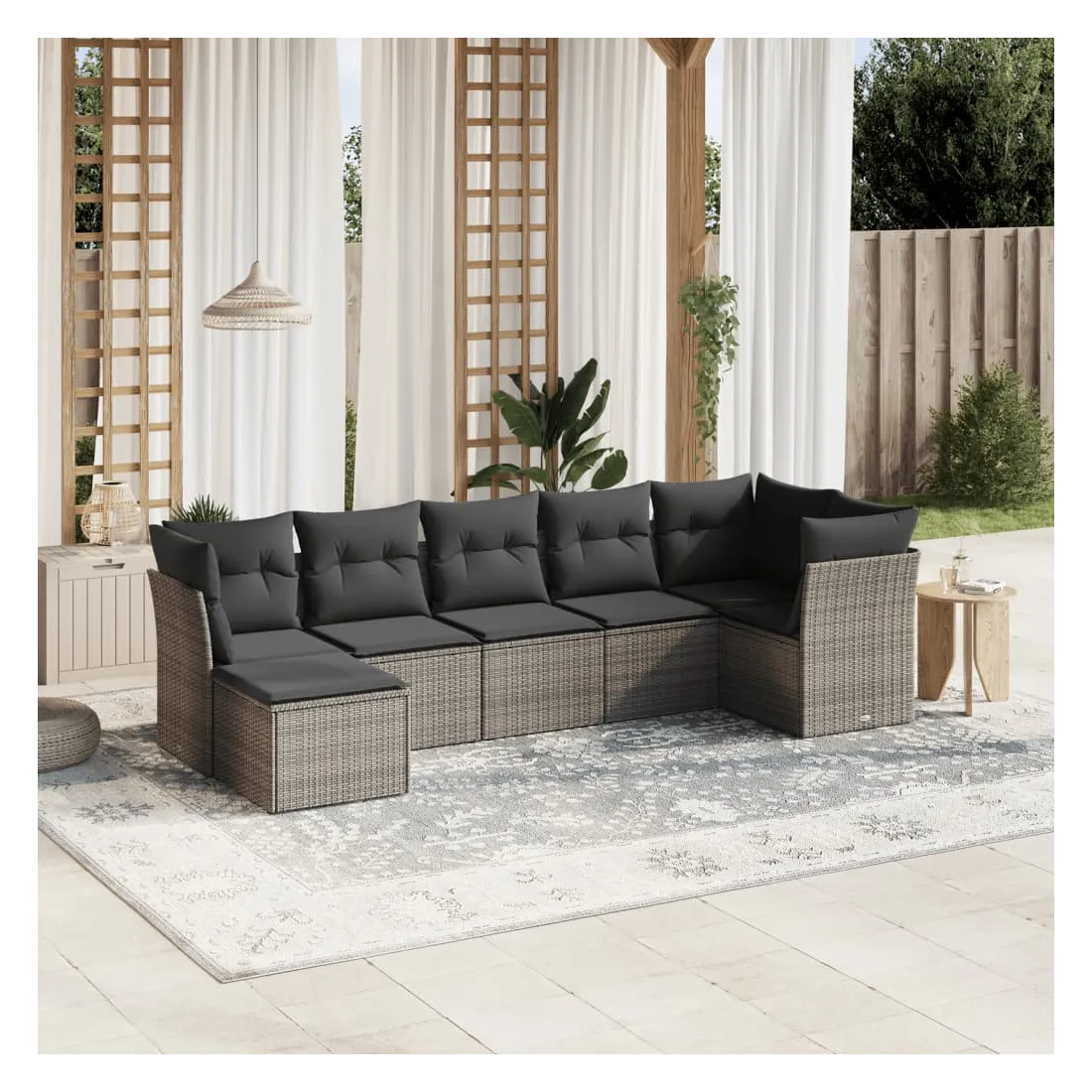 Cet ensemble de canapés de jardin est le complément parfait de votre arrière-cour, terrasse ou patio, offrant un espace confortable et accueillant pour discuter avec la famille et les amis ou simplement se détendre et profiter de l'extérieur. Matériau durable : la résine tressée, également connue sous le nom de poly rotin, est un matériau synthétique solide et nécessitant peu d'entretien qui ressemble au rotin naturel. Il est léger, facile à nettoyer et couramment utilisé pour les meubles d'extérieur en raison de sa durabilité et de ses propriétés de résistance aux intempéries.Expérience d'assise confortable : ce mobilier d'extérieur, doté de coussins épais, offre une expérience d'assise confortable.Housse amovible et lavable : ces coussins de siège sont dotés de housses amovibles pour un lavage et un entretien faciles.Cadre robuste et stable : le cadre en acier enduit de poudre assure la solidité et la stabilité du meuble de jardin pour une utilisation quotidienne à l'extérieur.Conception modulaire : cet ensemble de meubles d'extérieur a une conception modulaire, ce qui le rend complètement flexible et facile à déplacer, afin que vous puissiez créer un agencement de meubles d'extérieur personnalisé. Bon à savoir :Pour que vos meubles d'extérieur restent beaux, nous vous recommandons de les protéger avec une housse imperméable.