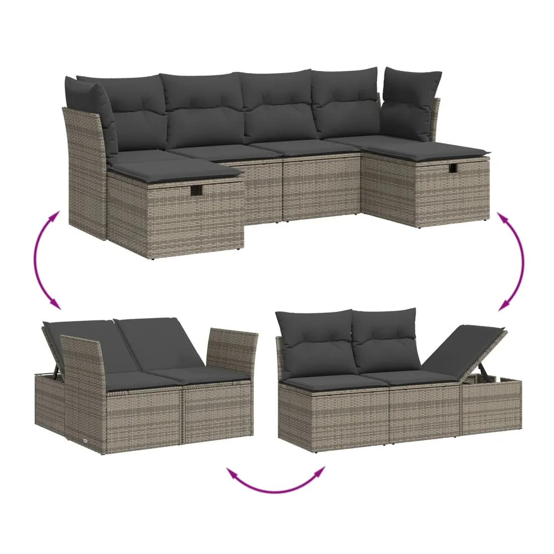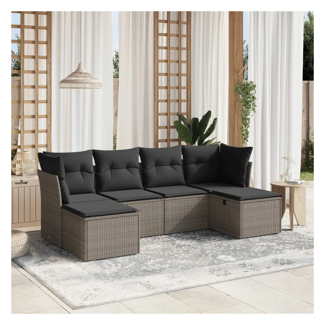 Cet ensemble de canapés de jardin est le complément parfait de votre arrière-cour, terrasse ou patio, offrant un espace confortable et accueillant pour discuter avec la famille et les amis ou simplement se détendre et profiter de l'extérieur. Matériau durable : la résine tressée, également connue sous le nom de poly rotin, est un matériau synthétique solide et nécessitant peu d'entretien qui ressemble au rotin naturel. Il est léger, facile à nettoyer et couramment utilisé pour les meubles d'extérieur en raison de sa durabilité et de ses propriétés de résistance aux intempéries.Expérience d'assise confortable : ce mobilier d'extérieur, doté de coussins épais, offre une expérience d'assise confortable.Housse amovible et lavable : ces coussins de siège sont dotés de housses amovibles pour un lavage et un entretien faciles.Cadre robuste et stable : le cadre en acier enduit de poudre assure la solidité et la stabilité du meuble de jardin pour une utilisation quotidienne à l'extérieur.Conception modulaire : cet ensemble de meubles d'extérieur a une conception modulaire, ce qui le rend complètement flexible et facile à déplacer, afin que vous puissiez créer un agencement de meubles d'extérieur personnalisé. Bon à savoir :Pour que vos meubles d'extérieur restent beaux, nous vous recommandons de les protéger avec une housse imperméable.