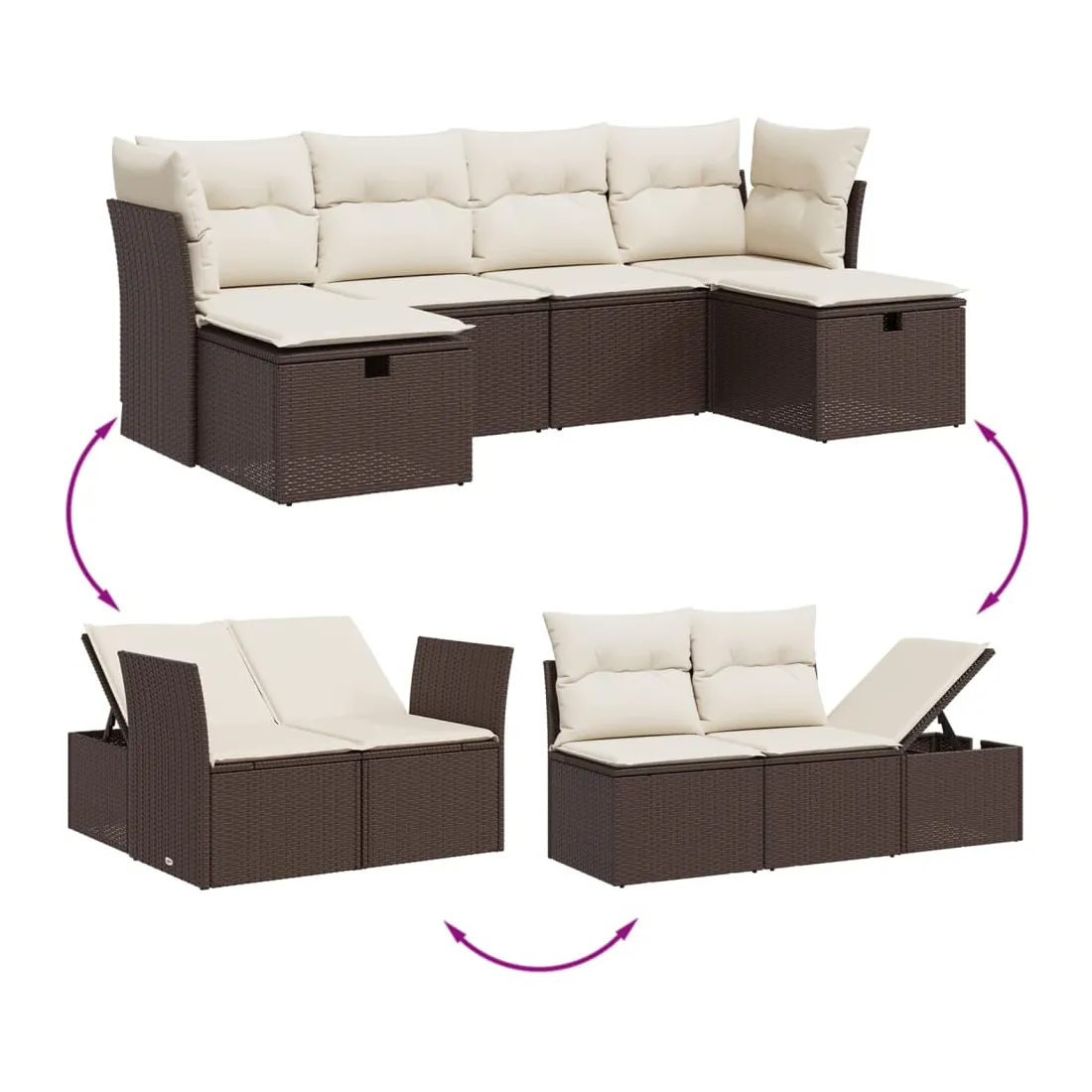 Cet ensemble de canapés de jardin est le complément parfait de votre arrière-cour, terrasse ou patio, offrant un espace confortable et accueillant pour discuter avec la famille et les amis ou simplement se détendre et profiter de l'extérieur. Matériau durable : la résine tressée, également connue sous le nom de poly rotin, est un matériau synthétique solide et nécessitant peu d'entretien qui ressemble au rotin naturel. Il est léger, facile à nettoyer et couramment utilisé pour les meubles d'extérieur en raison de sa durabilité et de ses propriétés de résistance aux intempéries.Expérience d'assise confortable : ce mobilier d'extérieur, doté de coussins épais, offre une expérience d'assise confortable.Housse amovible et lavable : ces coussins de siège sont dotés de housses amovibles pour un lavage et un entretien faciles.Cadre robuste et stable : le cadre en acier enduit de poudre assure la solidité et la stabilité du meuble de jardin pour une utilisation quotidienne à l'extérieur.Conception modulaire : cet ensemble de meubles d'extérieur a une conception modulaire, ce qui le rend complètement flexible et facile à déplacer, afin que vous puissiez créer un agencement de meubles d'extérieur personnalisé. Bon à savoir :Pour que vos meubles d'extérieur restent beaux, nous vous recommandons de les protéger avec une housse imperméable.