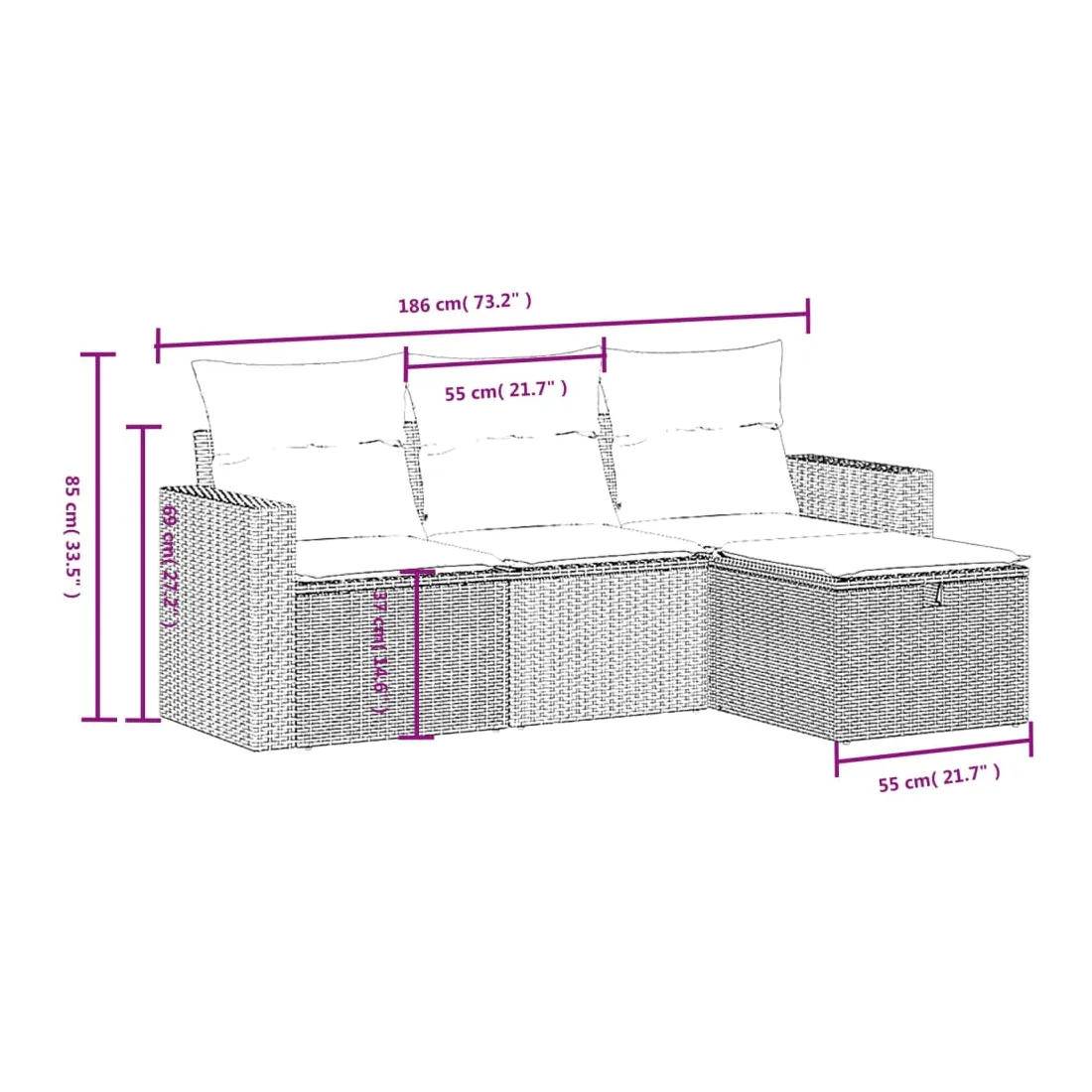 - Dimensions du coussin de dossier : 55 x 45 x 13 cm (L x l x é)
