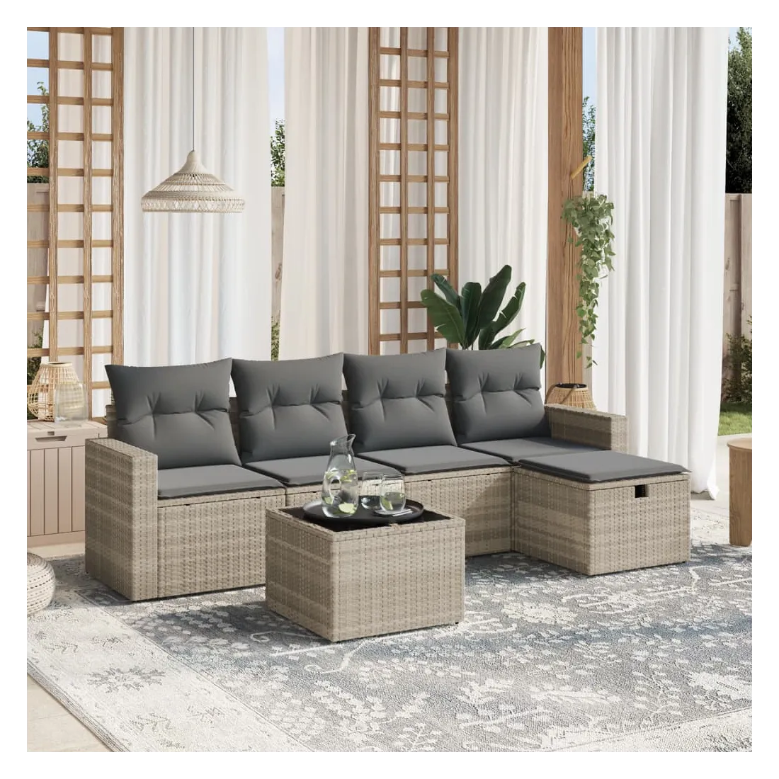 Cet ensemble de canapés de jardin est le complément parfait de votre arrière-cour, terrasse ou patio, offrant un espace confortable et accueillant pour discuter avec la famille et les amis ou simplement se détendre et profiter de l'extérieur. Matériau durable : la résine tressée, également connue sous le nom de poly rotin, est un matériau synthétique solide et nécessitant peu d'entretien qui ressemble au rotin naturel. Il est léger, facile à nettoyer et couramment utilisé pour les meubles d'extérieur en raison de sa durabilité et de ses propriétés de résistance aux intempéries.Dessus en verre : le dessus de la table d'extérieur est fabriqué en verre trempé solide et durable, ce qui le rend facile à nettoyer avec un chiffon humide et ajoute une touche d'élégance à votre espace extérieur.Housse amovible et lavable : ces coussins de siège sont dotés de housses amovibles pour un lavage et un entretien faciles.Cadre robuste et stable : le cadre en acier enduit de poudre assure la solidité et la stabilité du meuble de jardin pour une utilisation quotidienne à l'extérieur.Conception modulaire : cet ensemble de meubles d'extérieur a une conception modulaire, ce qui le rend complètement flexible et facile à déplacer, afin que vous puissiez créer un agencement de meubles d'extérieur personnalisé. Bon à savoir :Pour que vos meubles d'extérieur restent beaux, nous vous recommandons de les protéger avec une housse imperméable.