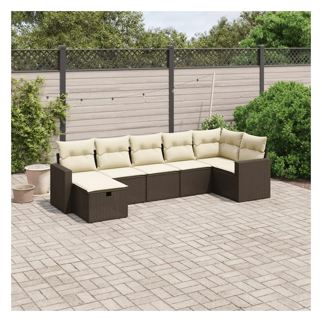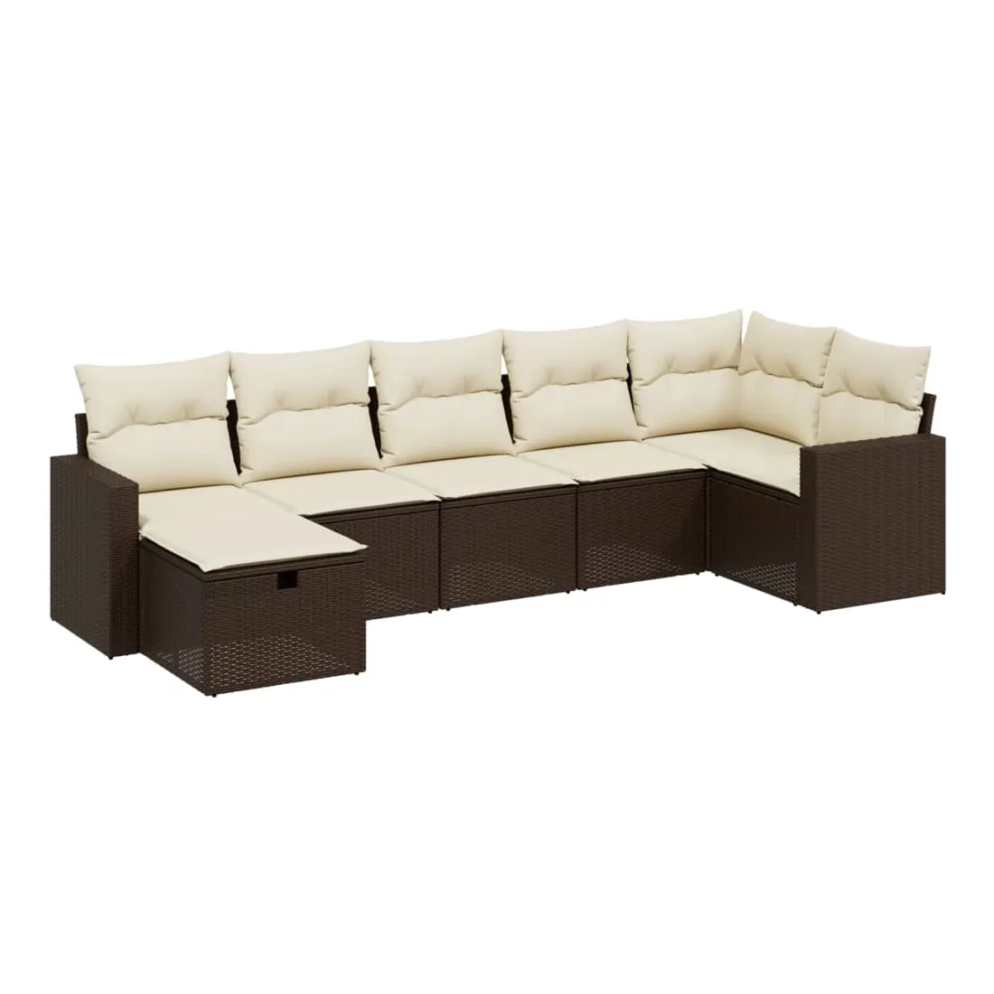 Salon de jardin avec coussins 7 pcs marron résine tressée
