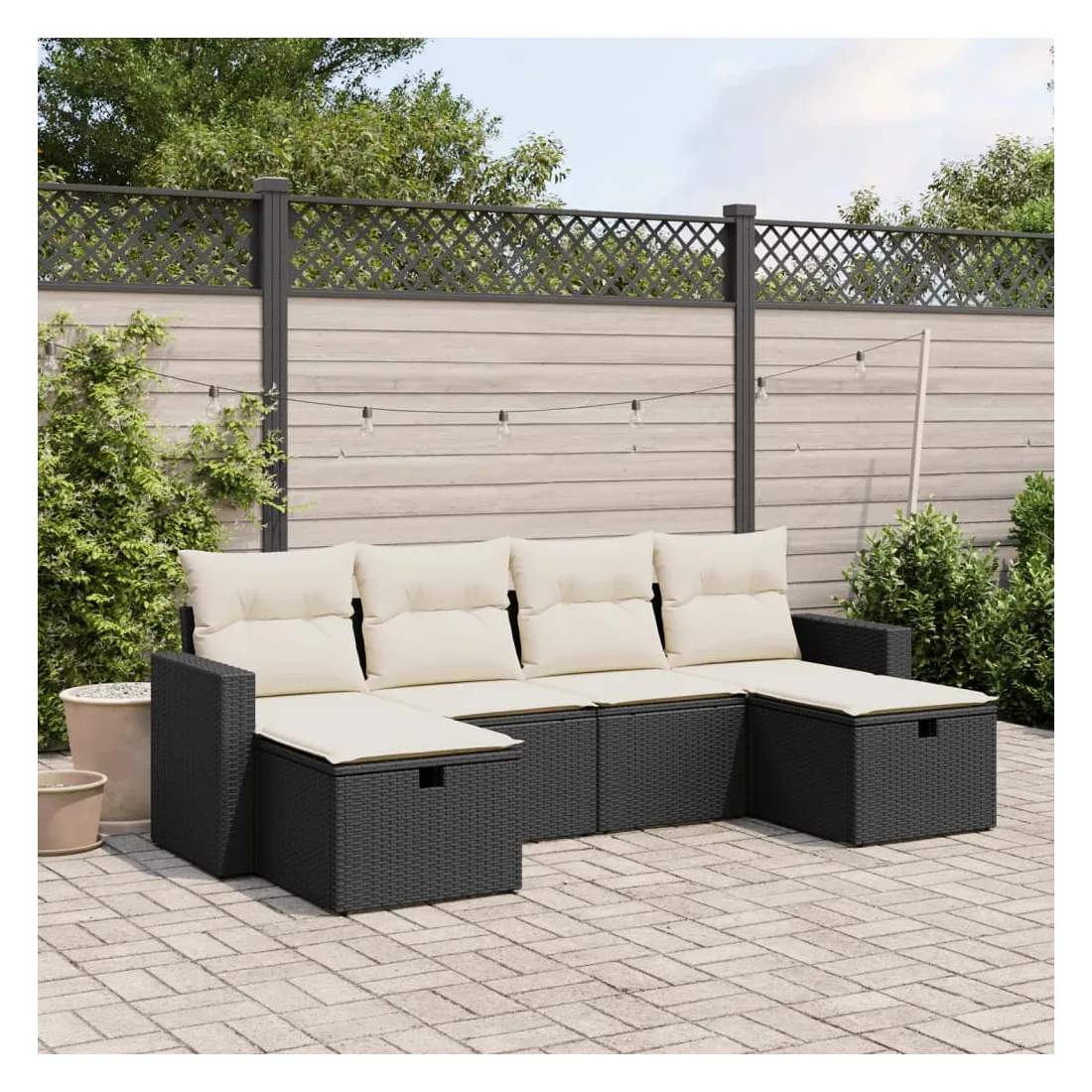 Cet ensemble de canapés de jardin est le complément parfait de votre arrière-cour, terrasse ou patio, offrant un espace confortable et accueillant pour discuter avec la famille et les amis ou simplement se détendre et profiter de l'extérieur. Matériau durable : la résine tressée, également connue sous le nom de poly rotin, est un matériau synthétique solide et nécessitant peu d'entretien qui ressemble au rotin naturel. Il est léger, facile à nettoyer et couramment utilisé pour les meubles d'extérieur en raison de sa durabilité et de ses propriétés de résistance aux intempéries.Expérience d'assise confortable : ce mobilier d'extérieur, doté de coussins épais, offre une expérience d'assise confortable.Housse amovible et lavable : ces coussins de siège sont dotés de housses amovibles pour un lavage et un entretien faciles.Cadre robuste et stable : le cadre en acier enduit de poudre assure la solidité et la stabilité du meuble de jardin pour une utilisation quotidienne à l'extérieur.Conception modulaire : cet ensemble de meubles d'extérieur a une conception modulaire, ce qui le rend complètement flexible et facile à déplacer, afin que vous puissiez créer un agencement de meubles d'extérieur personnalisé. Bon à savoir :Pour que vos meubles d'extérieur restent beaux, nous vous recommandons de les protéger avec une housse imperméable.