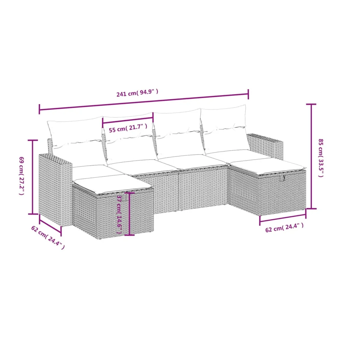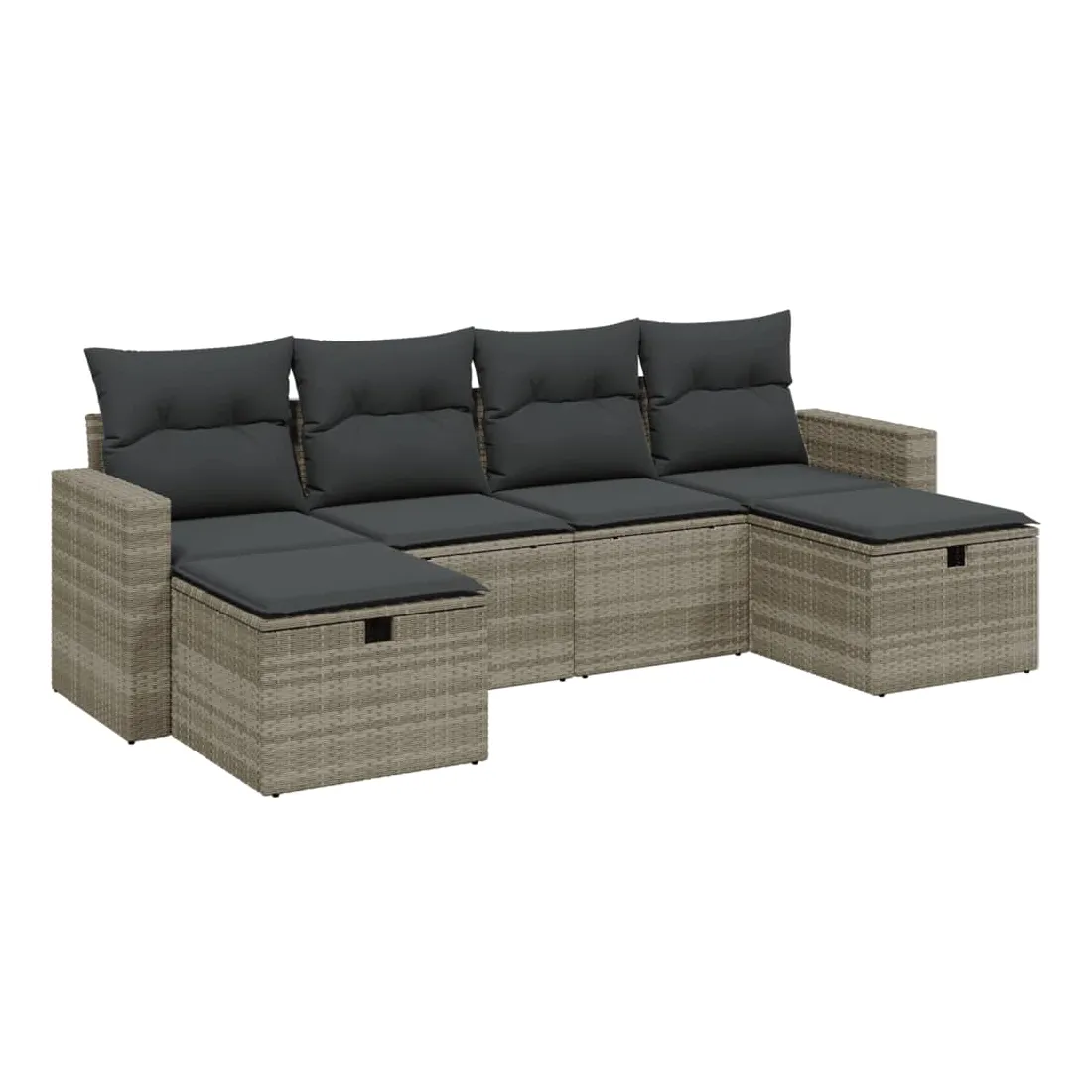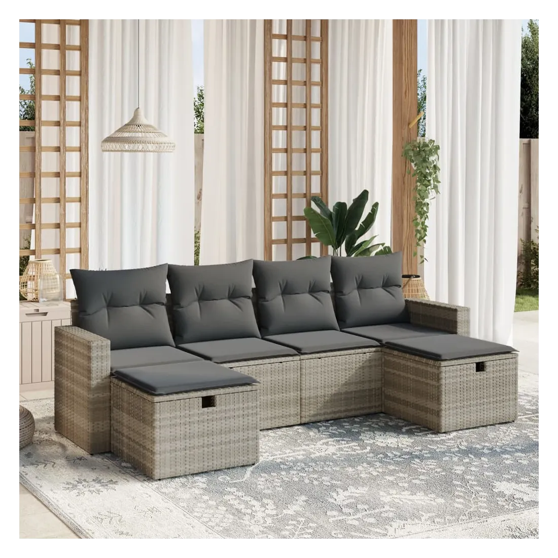 Cet ensemble de canapés de jardin est le complément parfait de votre arrière-cour, terrasse ou patio, offrant un espace confortable et accueillant pour discuter avec la famille et les amis ou simplement se détendre et profiter de l'extérieur. Matériau durable : la résine tressée, également connue sous le nom de poly rotin, est un matériau synthétique solide et nécessitant peu d'entretien qui ressemble au rotin naturel. Il est léger, facile à nettoyer et couramment utilisé pour les meubles d'extérieur en raison de sa durabilité et de ses propriétés de résistance aux intempéries.Expérience d'assise confortable : ce mobilier d'extérieur, doté de coussins épais, offre une expérience d'assise confortable.Housse amovible et lavable : ces coussins de siège sont dotés de housses amovibles pour un lavage et un entretien faciles.Cadre robuste et stable : le cadre en acier enduit de poudre assure la solidité et la stabilité du meuble de jardin pour une utilisation quotidienne à l'extérieur.Conception modulaire : cet ensemble de meubles d'extérieur a une conception modulaire, ce qui le rend complètement flexible et facile à déplacer, afin que vous puissiez créer un agencement de meubles d'extérieur personnalisé. Bon à savoir :Pour que vos meubles d'extérieur restent beaux, nous vous recommandons de les protéger avec une housse imperméable.
