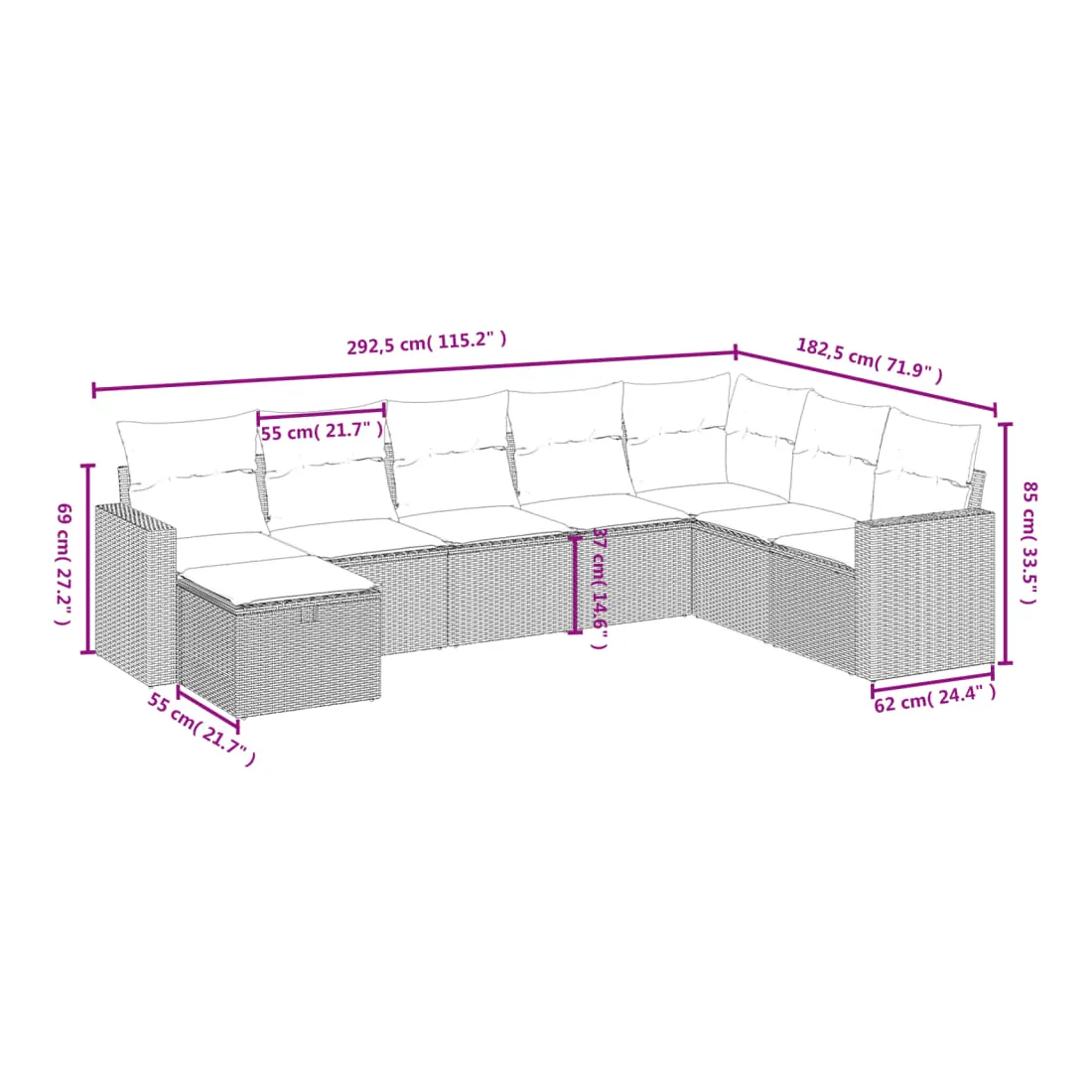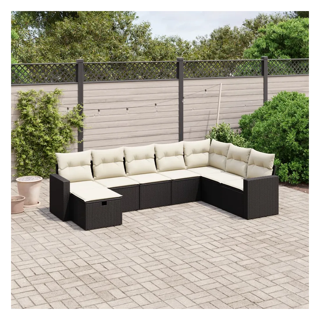 Cet ensemble de canapés de jardin est le complément parfait de votre arrière-cour, terrasse ou patio, offrant un espace confortable et accueillant pour discuter avec la famille et les amis ou simplement se détendre et profiter de l'extérieur. Matériau durable : la résine tressée, également connue sous le nom de poly rotin, est un matériau synthétique solide et nécessitant peu d'entretien qui ressemble au rotin naturel. Il est léger, facile à nettoyer et couramment utilisé pour les meubles d'extérieur en raison de sa durabilité et de ses propriétés de résistance aux intempéries.Expérience d'assise confortable : ce mobilier d'extérieur, doté de coussins épais, offre une expérience d'assise confortable.Housse amovible et lavable : ces coussins de siège sont dotés de housses amovibles pour un lavage et un entretien faciles.Cadre robuste et stable : le cadre en acier enduit de poudre assure la solidité et la stabilité du meuble de jardin pour une utilisation quotidienne à l'extérieur.Conception modulaire : cet ensemble de meubles d'extérieur a une conception modulaire, ce qui le rend complètement flexible et facile à déplacer, afin que vous puissiez créer un agencement de meubles d'extérieur personnalisé. Bon à savoir :Pour que vos meubles d'extérieur restent beaux, nous vous recommandons de les protéger avec une housse imperméable.