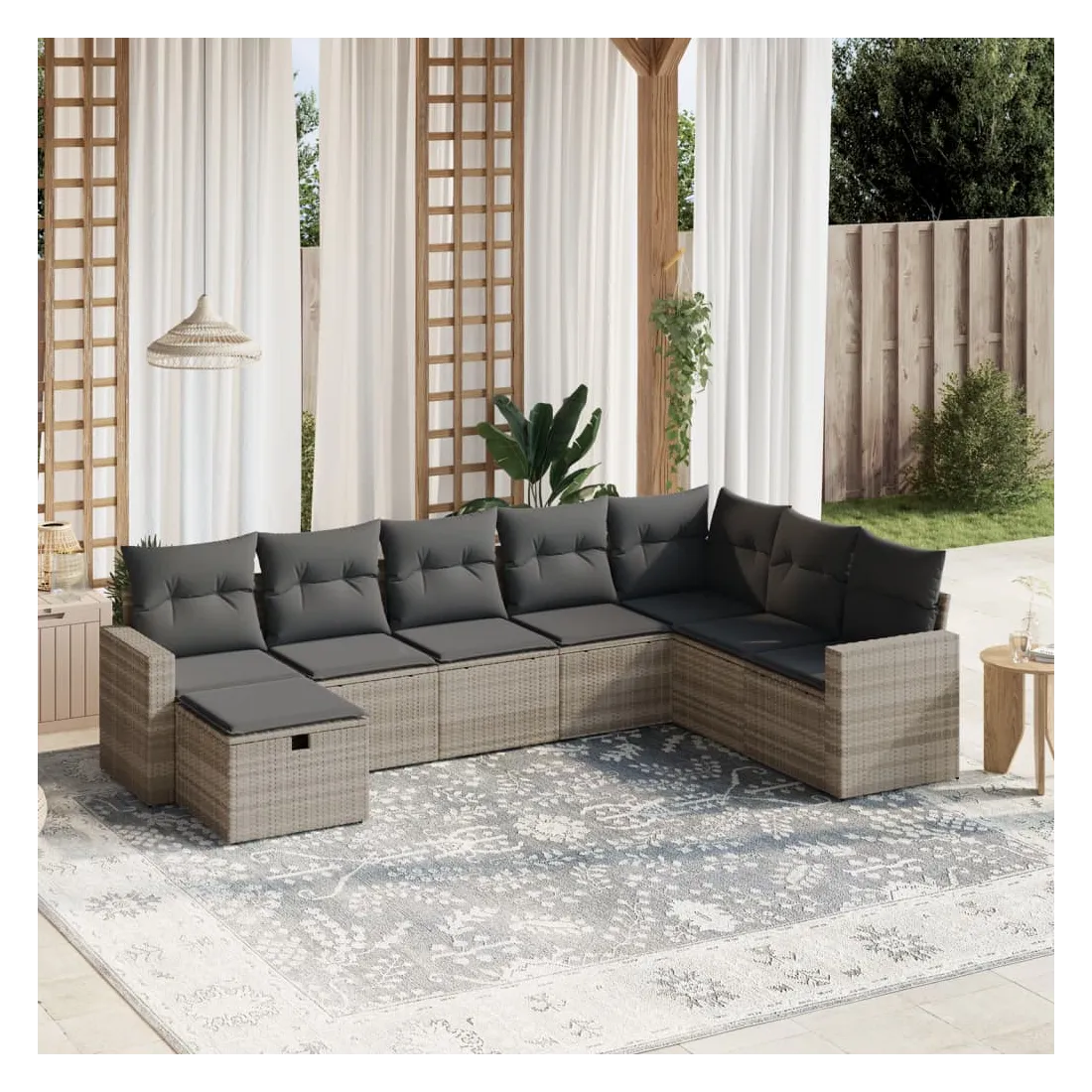 Cet ensemble de canapés de jardin est le complément parfait de votre arrière-cour, terrasse ou patio, offrant un espace confortable et accueillant pour discuter avec la famille et les amis ou simplement se détendre et profiter de l'extérieur. Matériau durable : la résine tressée, également connue sous le nom de poly rotin, est un matériau synthétique solide et nécessitant peu d'entretien qui ressemble au rotin naturel. Il est léger, facile à nettoyer et couramment utilisé pour les meubles d'extérieur en raison de sa durabilité et de ses propriétés de résistance aux intempéries.Expérience d'assise confortable : ce mobilier d'extérieur, doté de coussins épais, offre une expérience d'assise confortable.Housse amovible et lavable : ces coussins de siège sont dotés de housses amovibles pour un lavage et un entretien faciles.Cadre robuste et stable : le cadre en acier enduit de poudre assure la solidité et la stabilité du meuble de jardin pour une utilisation quotidienne à l'extérieur.Conception modulaire : cet ensemble de meubles d'extérieur a une conception modulaire, ce qui le rend complètement flexible et facile à déplacer, afin que vous puissiez créer un agencement de meubles d'extérieur personnalisé. Bon à savoir :Pour que vos meubles d'extérieur restent beaux, nous vous recommandons de les protéger avec une housse imperméable.