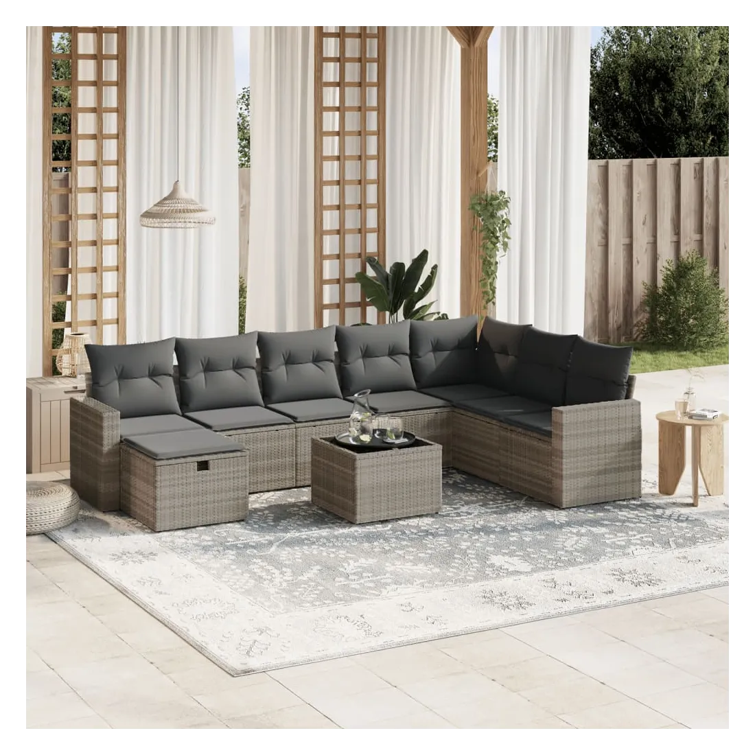 Cet ensemble de canapés de jardin est le complément parfait de votre arrière-cour, terrasse ou patio, offrant un espace confortable et accueillant pour discuter avec la famille et les amis ou simplement se détendre et profiter de l'extérieur. Matériau durable : la résine tressée, également connue sous le nom de poly rotin, est un matériau synthétique solide et nécessitant peu d'entretien qui ressemble au rotin naturel. Il est léger, facile à nettoyer et couramment utilisé pour les meubles d'extérieur en raison de sa durabilité et de ses propriétés de résistance aux intempéries.Dessus en verre : le dessus de la table d'extérieur est fabriqué en verre trempé solide et durable, ce qui le rend facile à nettoyer avec un chiffon humide et ajoute une touche d'élégance à votre espace extérieur.Housse amovible et lavable : ces coussins de siège sont dotés de housses amovibles pour un lavage et un entretien faciles.Cadre robuste et stable : le cadre en acier enduit de poudre assure la solidité et la stabilité du meuble de jardin pour une utilisation quotidienne à l'extérieur.Conception modulaire : cet ensemble de meubles d'extérieur a une conception modulaire, ce qui le rend complètement flexible et facile à déplacer, afin que vous puissiez créer un agencement de meubles d'extérieur personnalisé. Bon à savoir :Pour que vos meubles d'extérieur restent beaux, nous vous recommandons de les protéger avec une housse imperméable.