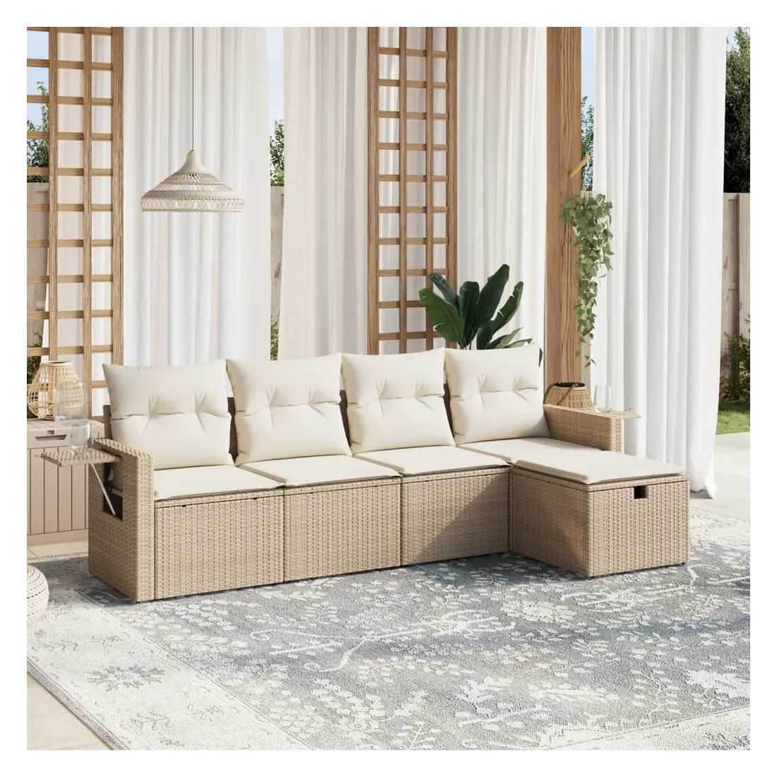 Salon de jardin avec coussins 5 pcs beige résine tressée