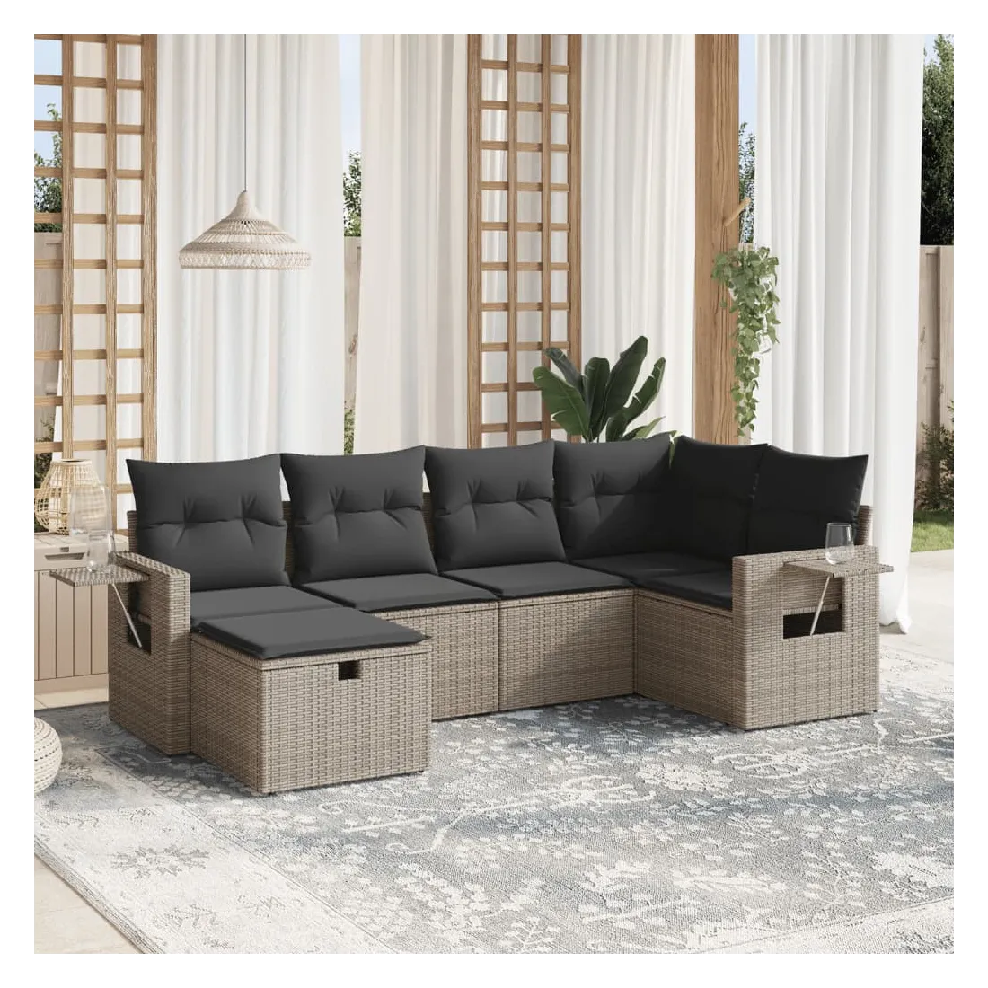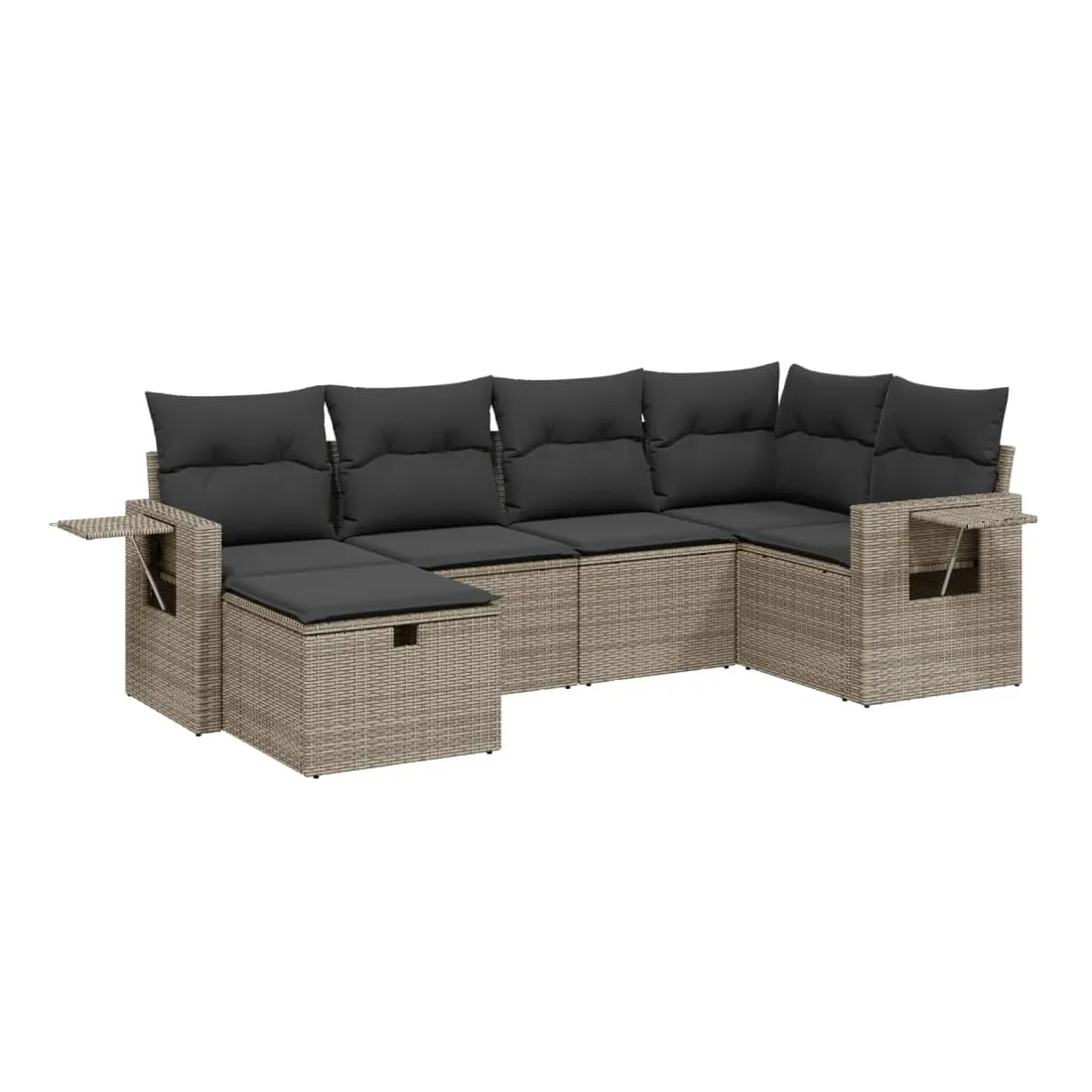 Salon de jardin 6 pcs avec coussins gris résine tressée