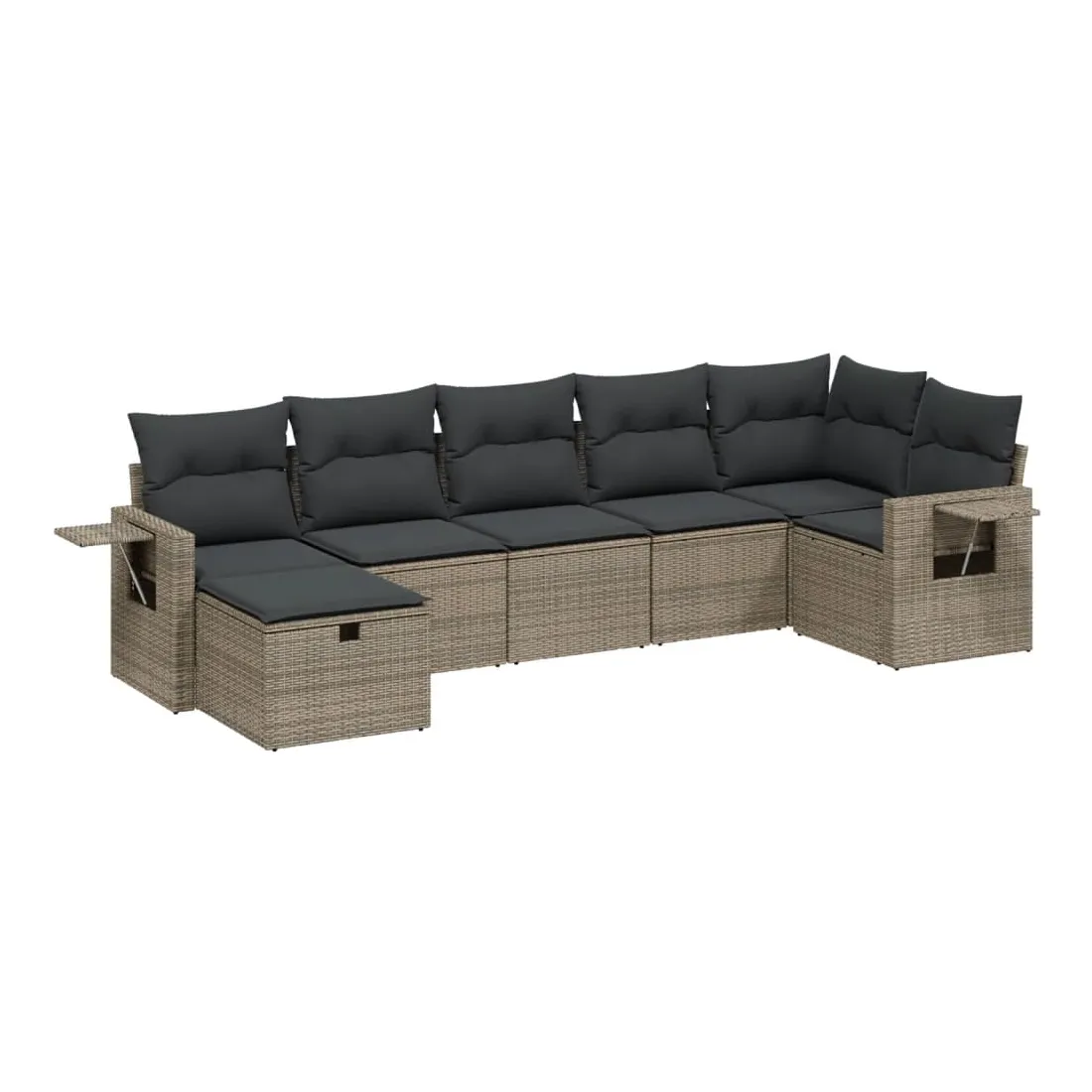 Salon de jardin avec coussins 7 pcs gris résine tressée